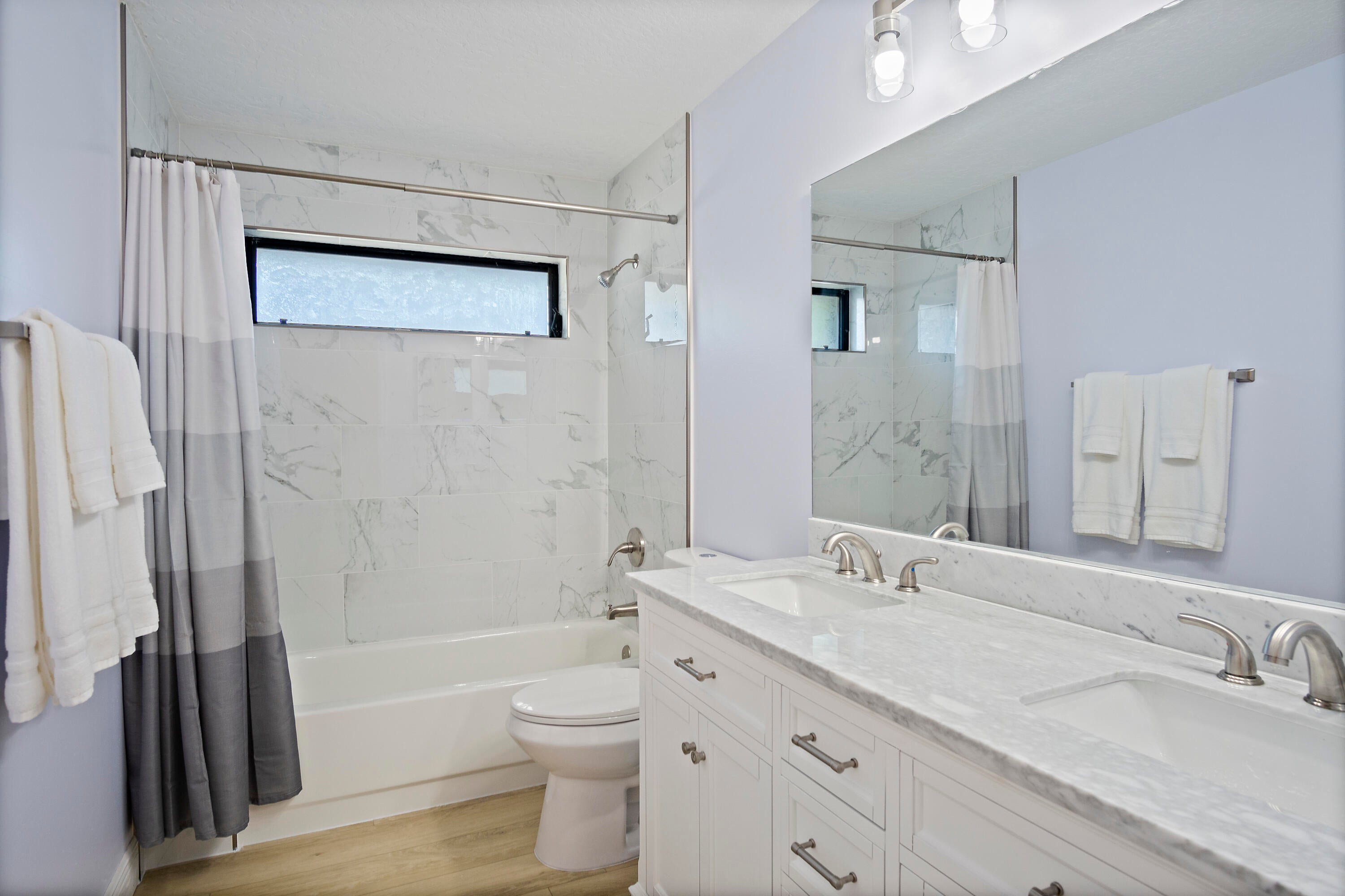 Exquisite 4 bedroom, 2.5 bath Palm City residence showcasing a fully renovated gourmet kitchen with an oversized island, double ovens, walk-in pantry, and impeccable designer finishes--every detail curated with intention. Elegant upgraded bathrooms, a brand-new roof, and a stunning screened-in pool complete with a cabana bath and outdoor shower create a seamless blend of comfort and sophistication. The beautifully landscaped backyard offers a private retreat ideal for refined family living. Located in Hunters Creek, a gated community with low HOA fees and minimal restrictions, this home delivers luxury and convenience in one.
