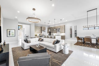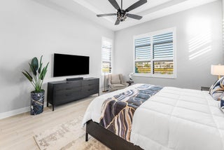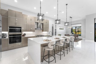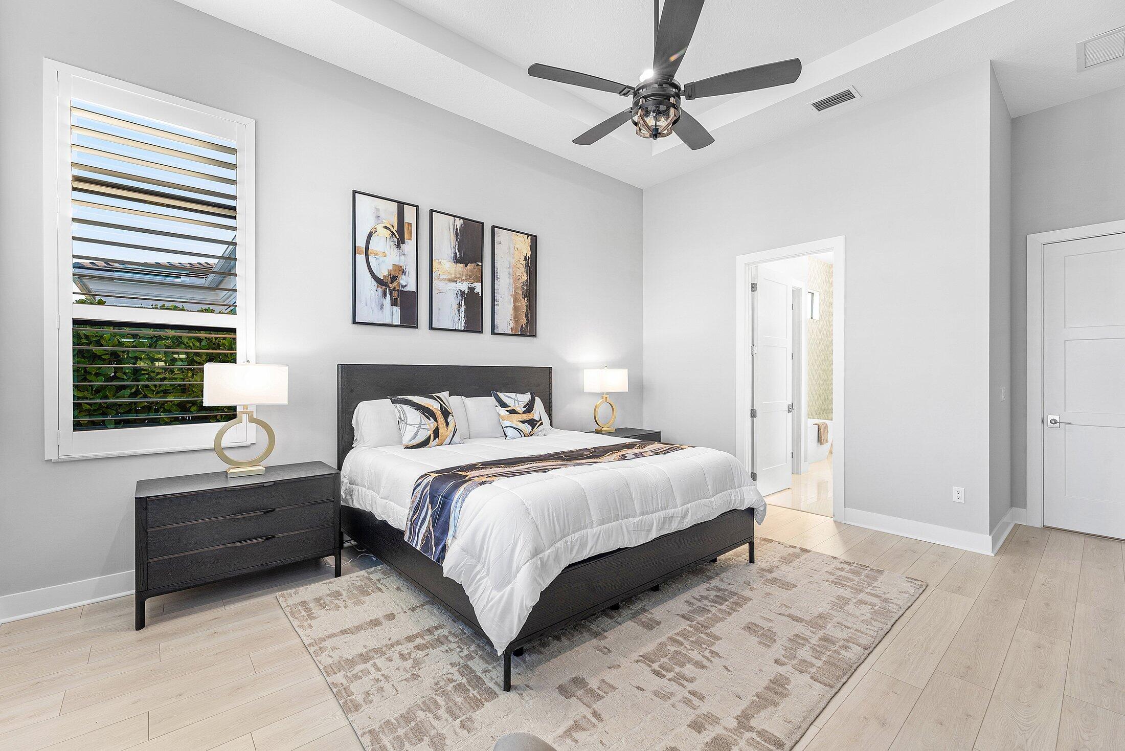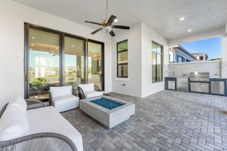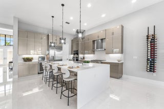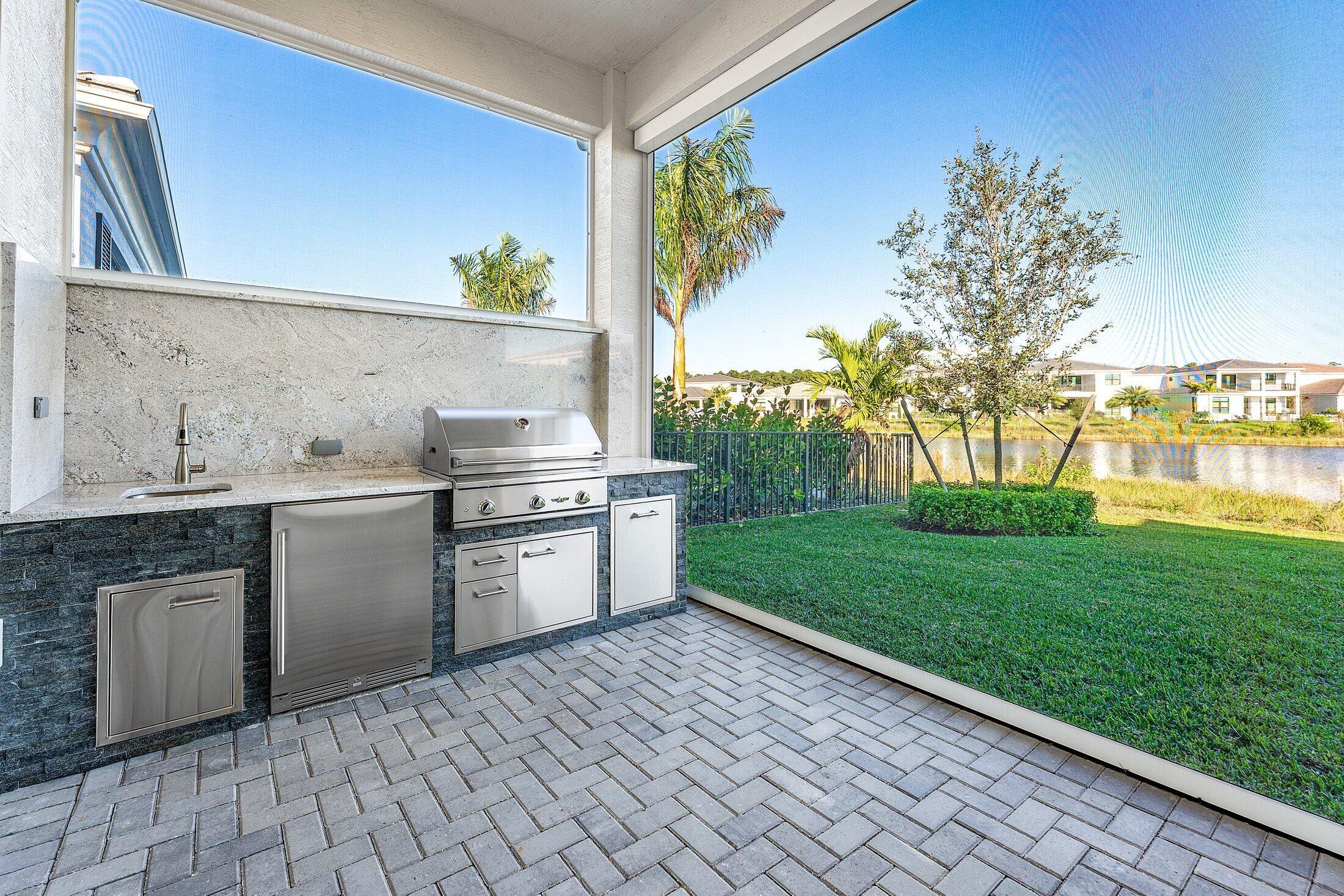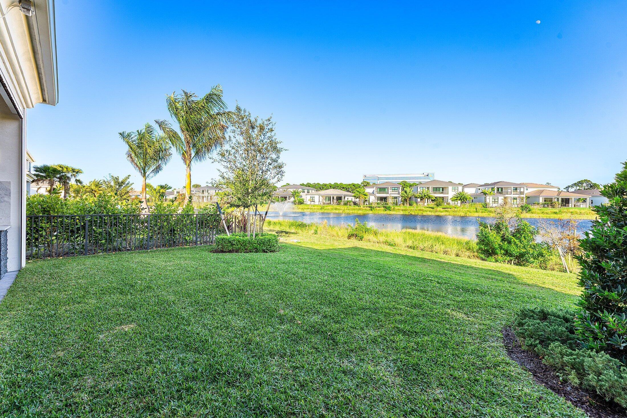 Live the outstanding Resort Lifestyle of Artistry Palm Beach in this turnkey, fully designer furnished Michelangelo model offering 2,984 sq ft of thoughtfully designed luxury! Paved driveway and double door entry leads to an impressive 10 ft wide entry foyer which opens to soaring 16 ft ceilings open concept home with split floorplan perfect for modern living. The flexible layout includes 3 bedrooms plus a den/office, all with custom built‑ins and closet space galore!Designer finishes throughout including custom panel feature wall in living room, expansive 4' x 2' ceramic tile "level 5" white flooring in the main areas and engineered hardwood in all bedrooms, designer lighting throughout, and custom window treatmentswith plantation shutters in the bedrooms and electric blinds in the living and dining areas. Light and bright with panoramic windows overlooking peaceful water views at every turn! The Owner's Suite is complete with tray ceilings, an expansive walk-in closet outfitted with custom built-ins, grand owner's bath with soaker tub, elongated double vanity, glass walk-in shower with bench seat, and designer upgraded tile from floor-to-ceiling along entire wall makes for an impactful spa like retreat! The second and third bedrooms each have en-suite bathrooms with floor to ceiling tile, quartz countertops and walk-in closets with shelving to the ceiling for maximum storage, perfectly appointed for guests or a growing family! The office and 3rd bedroom have built-in desks -ideal for working from home or office/bedroom combos! The chef's kitchen showcases Frameless Italian Euro Style Modern Cabinetry, a luxurious 12 ft waterfall quartz island, custom backsplash, top of the line Monogram stainless steel appliances, upgraded 48" sidebyside refrigerator, 36 inch 6 burner gas cooktop range with legacy gold knobs and convection oven, wall oven and convection microwave, beverage cooler, and a walkin pantry - quintessential for hosting large parties, intimate gatherings, and ideal for everyday living! A deluxe laundry room with sink and abundant storage adds everyday convenience. Enjoy seamless indooroutdoor living on the remotescreened patio, unwind with a glass of wine and enjoy sunsets around the glass stone fire table or sip your morning coffee overlooking a peaceful water view with ducks and pristine natural grasses. The exterior space is perfect for hosting friends and grilling out in your full summer kitchen equipped with stone counter/backsplash and cook-station, sink, and mini fridge! The 3car configuration (or 2car plus golf cart/hobby bay) includes a minisplit AC in the single garage and finished floorsideal for a gym, workshop, or climatecontrolled storage. The home is fully hurricane impact, energyefficient, automated, and has a whole home generator for comfort and peace of mind! Ideal for second home or all year-round residents! Artistry is a upscale gated community in the heart of Palm Beach Gardens with and active fun atmosphere and stunning clubhouse, resortstyle pool, fitness center, playground, basketball, bocce, sidewalks, and a perimeter walking pathjust minutes to top dining, shopping, A-rated schools, sports clubs, golf, tennis, boating, Palm Beach Gardens Mall, PBI airport, Juno Beach, Palm Beach Island, and downtown West Palm Beach!