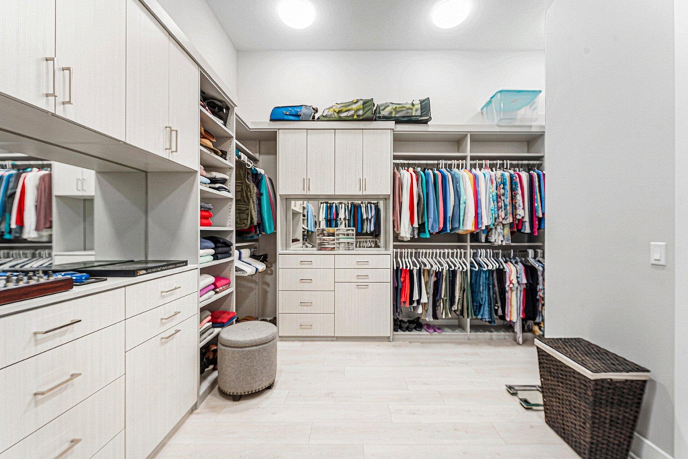 Built-in Shelves, Closet Cabinets, Foyer, Cook Island, Pantry, Split Bedroom, Volume Ceiling, Walk-in Closet