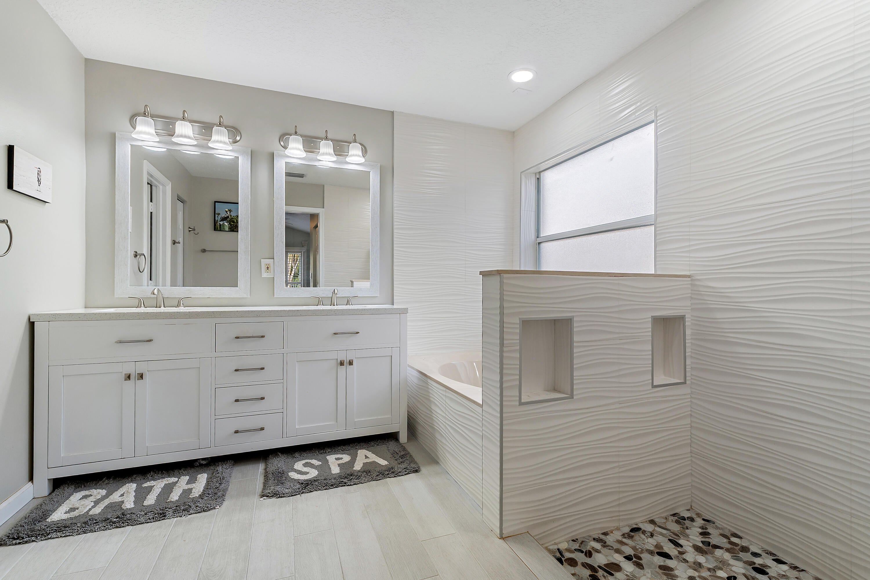 Located in the small gated community of Willoughby Glen, just minutes from I-95 and downtown Stuart, this completely renovated home is move-in ready. Updates include a new kitchen, bathrooms, flooring, and a 2024 metal roof. The primary bedroom is on the first floor, and a spacious loft offers the perfect space for a home office or kids' hangout area. The resort-style backyard features a heated pool, Jacuzzi, new pool pump, and peaceful preserve views--ideal for relaxing and enjoying nature.