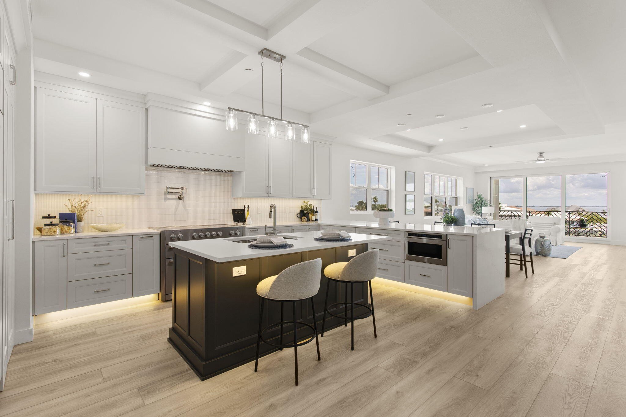 Located in the exclusive Quiet Cove enclave of Tierra Verde, this brand-new coastal residence was designed for buyers who value time on the water as much as time at home. Offering new construction, a private entrance, private garage, and the rare opportunity for deeded dockage accommodating up to a 50-foot vessel, this home delivers a true lock-and-leave boating lifestyle--without the maintenance demands of a single-family waterfront property. The on-site Carriage House features a fitness center, social lounge, wet bar, and private restrooms. Semi-Private Elevator, Two-car private garage, Boat dock available for purchase, and just minutes from Downtown St. Petersburg, St. Pete Beach, Ft. De Soto Park, and 30 minutes to Tampa International Airport.From your private entrance, the home opens to a light-filled, open-concept interior finished with wide-plank flooring, custom cabinetry, designer lighting, and thoughtful coastal detailing throughout. The chef's kitchen anchors the living space with quartz countertops, premium appliances, a hidden walk-in pantry, and an oversized island ideal for entertaining. The great room flows seamlessly to a deep, covered waterfront balcony overlooking the Intracoastal and resort-style poolperfect for relaxing after a day on the water. The primary suite offers a peaceful retreat with water views, a custom walk-in closet, and a spa-inspired bath featuring dual vanities, a free-standing soaking tub, and a multi-head rainfall shower. A second en-suite bedroom provides additional privacy, while two oversized guest bedrooms are connected by a well-appointed Jack-and-Jill bath. Even the laundry room is elevated with quartz counters, ample cabinetry, and a farmhouse sink. Residents of Quiet Cove enjoy access to a heated pool and spa, expansive sundeck, fitness center, social lounge, and private entertainment spacesall designed to enhance the waterfront lifestyle without added complexity. What truly sets this residence apart is its infrastructure: new construction, private garage, private entrance, protected waterfront location, and immediate access to the Gulfan increasingly rare combination in Tierra Verde. This home is ideal for buyers seeking a primary or second residence that offers direct boat access, ease of ownership, and refined coastal living in one of the area's most desirable waterfront settings.