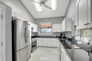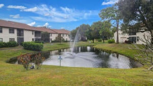 Experience comfortable living in this beautifully maintained 2/2 condo w/split floor plan, vaulted ceilings & serene lake view from screened balcony. Spacious primary suite offers a nook, 2 closets (including a walk-in), & en-suite bathroom w/skylight & walk-in shower. Kitchen equipped w/pantry, breakfast nook, SS appliances, granite countertops, backsplash & refaced cabinetry. 2nd bedroom with balcony. 2nd bathroom w/ skylight & bathtub. Other features: *Full-size washer & dryer *2024 A/C *4+ yr old water heater w/new electrical outlet *Accordion & roll-down shutters * 2023 Roof *Assigned parking in front of bldg. *1 pet under 25 lbs. allowed. Condo fees cover basic cable, water, sewer, trash, roof & exterior maintenance, bldg. insurance, reserves, & common areas.Located in Park Pointe with clubhouse, pool, tennis courts, gym, and more. It is conveniently located near shopping, restaurants, beaches, and the airport. Leasing permitted with restrictions. Don't miss this opportunity to enjoy Florida living in this beautifully maintained condo unit and in a vibrant, tree-lined adult community.
