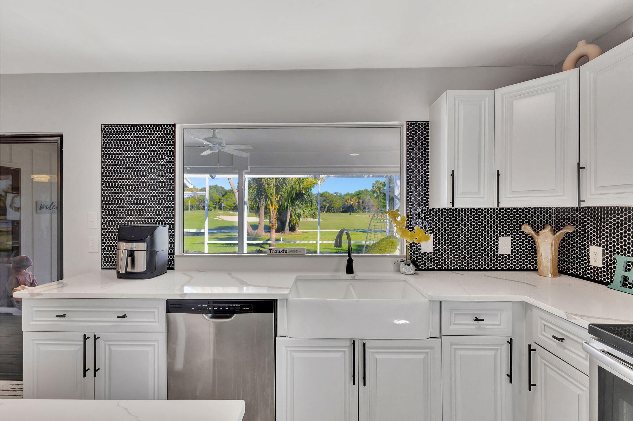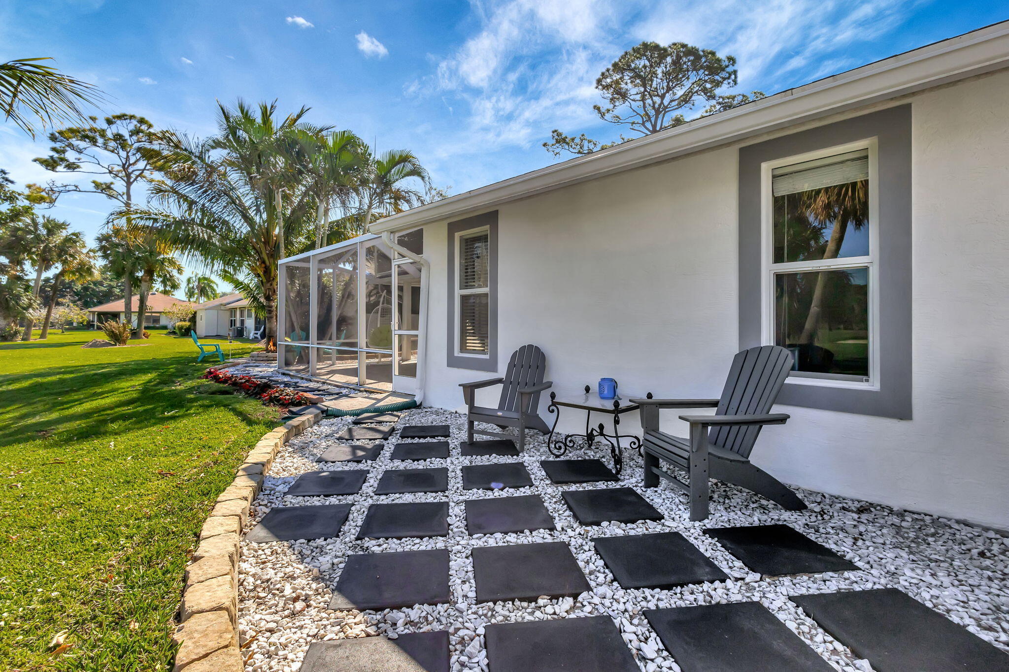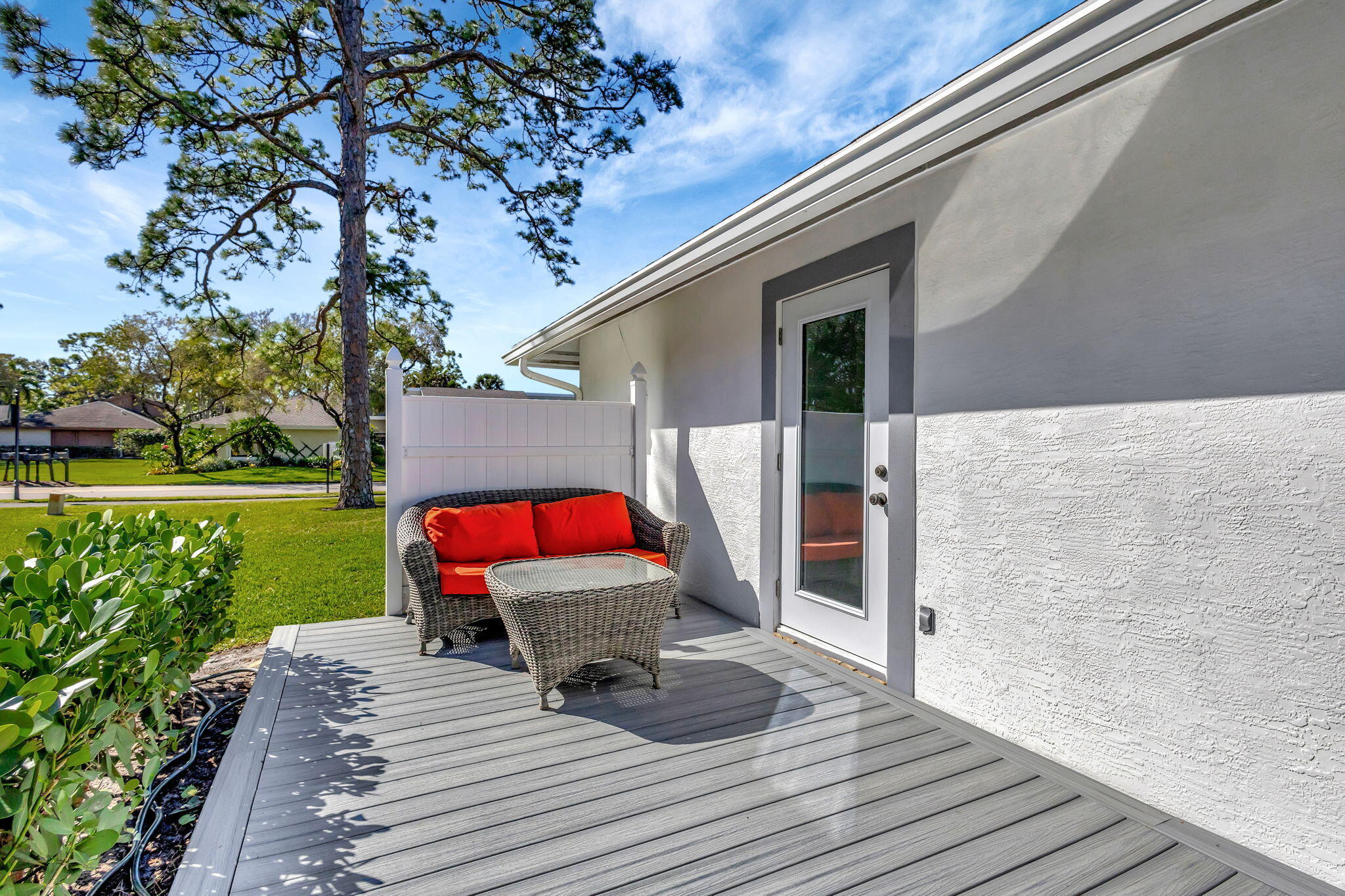 Make this your home! Beautifully renovated throughout with 2 spacious BR 2 modern bathrooms, impact windows with amazing view of the newly renovated 18-hole Fazio golf course. Porcelain tile throughout, oversize screen patio, fire pit with side deck to enjoy your morning coffee surrounding by lush greenery. Total Stucco exterior hurricane and new impact garage door. Eastpointe offers 24hrs security, and resort living lifestyle.
