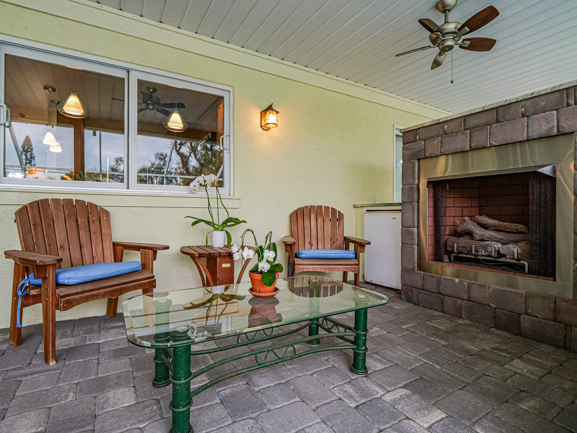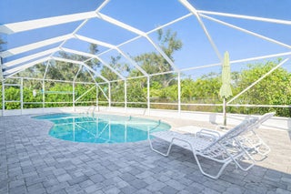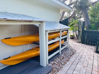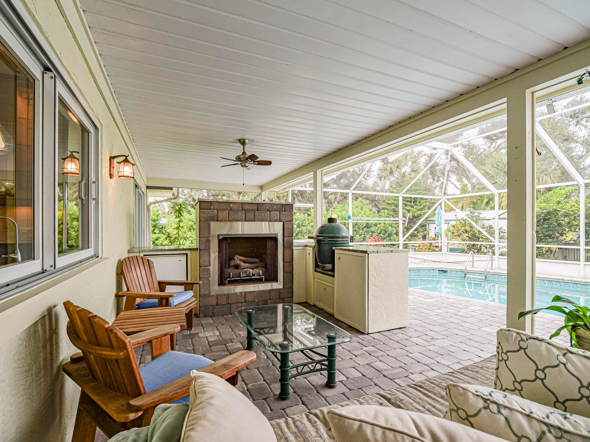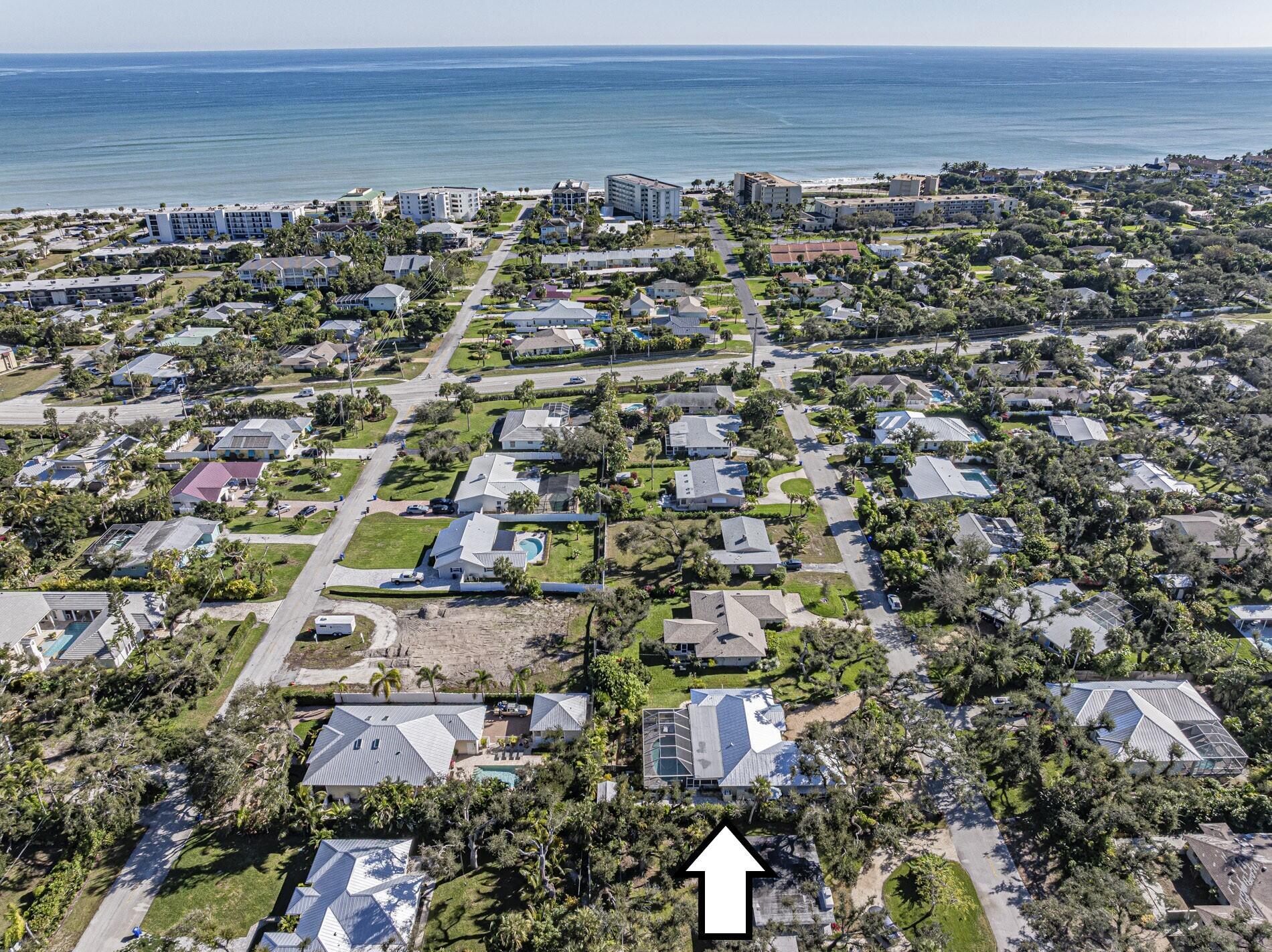 Central Beach Beauty, w/saltwater pool. NO HOA -- only 2 owners have owned this CBS masterpiece. Impact windows & 2025 metal roof & newer, 5 year old central air in this completely remodeled classic. Located on a quiet, tree lined street, short walk to beach, and near to shops and stores. Set on 90X132 lot. All tile, split BR plan, Solid white oak cabinetry and stone counters with upgraded light fixtures in the kitchen, formal dining area, large living area, and bonus --enclosed porch with slated wood ceiling looks out front with gardeners oasis of botanical delights. Side garden and shed with kayak storage, outdoor shower. Best of all --a gas stone hearth fireplace takes center stage in 44X35 lanai with outside dining and living area! 2 newer custom baths
