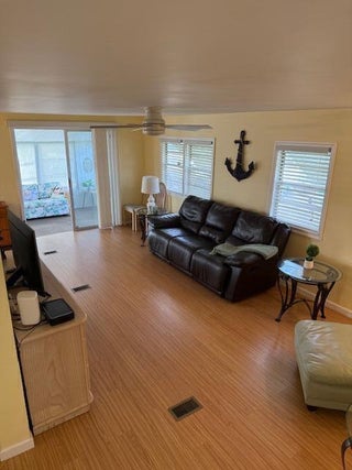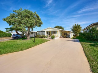 Updated & well-loved 2 Bedroom/ 2 Bath Doublewide in Ridgeway, all ages, community in Hobe Sound. Sheetrocked walls, Laminate & ceramic tile flooring thruout over plywood sub-floors. The soft pastel colors & abundant windows make this home so light & bright & SO FLORIDA! The sunny front porch will be your hang-out spot which flows into a screened & glassed in Lanai. The LR is large & flows beautifully into the Kitchen & Dining area. Newer Kitchen appliances & Lighting. The light filled Master Bedrm is a good size w updated Master Bath. The 2nd Bedrm is inviting, as well, w an updated 2nd full bath on the hall. Other notable touches are the addition of custom trim work & 6 panel doors. The private backyard is an oasis of ever-blooming shrubs. 2022 A/C. Large shed. Mins to ocean beaches.