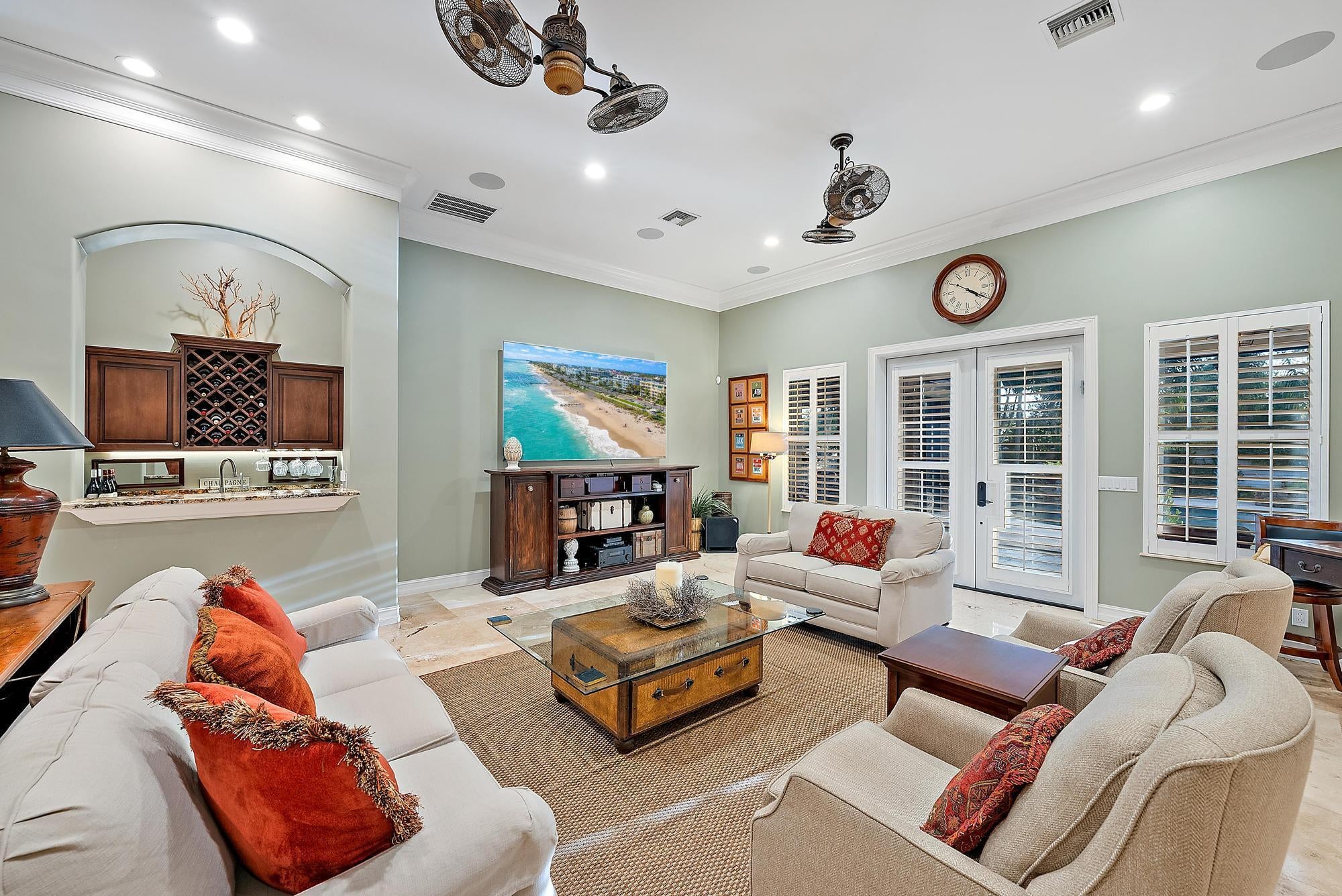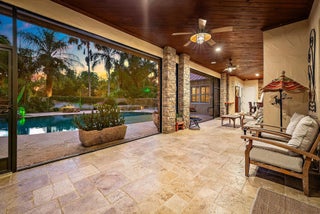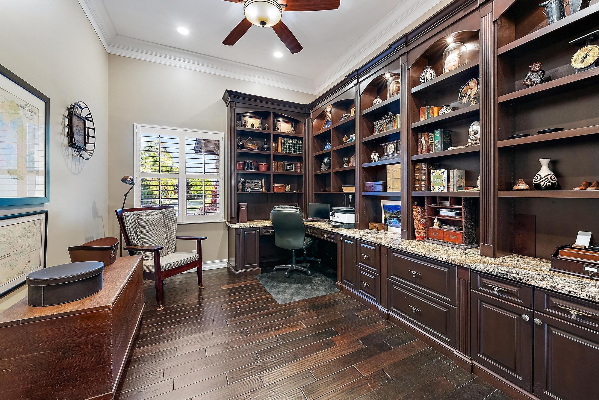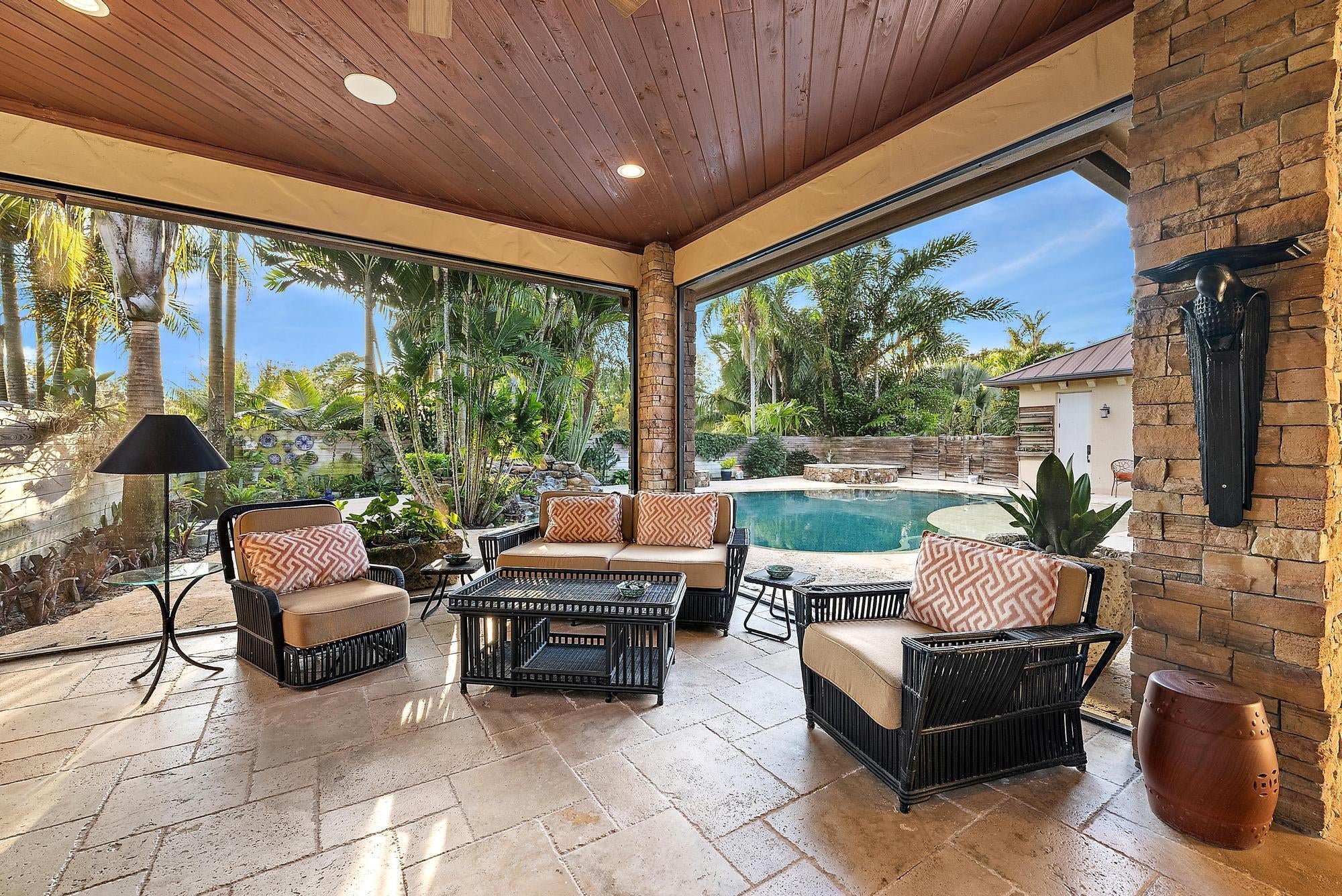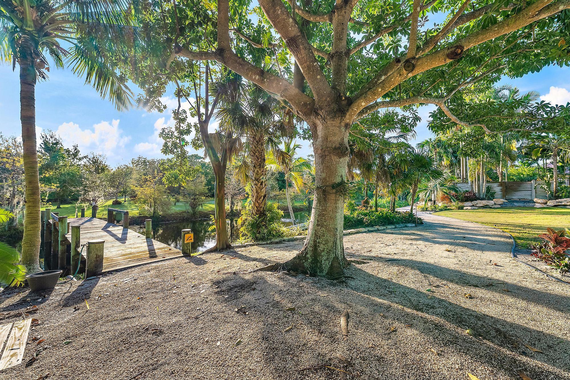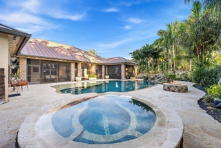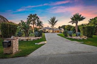Welcome to ''Elephant Walk'', a private Palm City estate of rare distinction, on 5.8 pristine acres in the exclusive Stuart West equestrian community of Martin County. Designed in 2012 with CBS construction, this Southwestern-inspired residence blends architectural character with refined Florida luxury. Offering 3,667 sq ft under air and 6,277 sq ft total, the estate includes a 3BR, 3.5 BA Main Home plus a private 1BR/1BA Guest Cottage ideal for guests or extended stays. Rich African mahogany flooring, travertine tile, soaring 10-14 foot ceilings, impact glass, crown moldings, and Electrolux Icon appliances showcase exceptional craftsmanship throughout. Car collectors will appreciate the 6-8 car garages: attached 3-car garage plus air conditioned 1,710-sq-ft detached 5-car garage/workshop.Detached garage has room for interior RV/Boat Parking. The owner's suite is a tranquil retreat featuring dual walk-in closets and a spa-style bath with jacuzzi tub and whole-body spray shower. A dedicated office, wine and coffee bar, and expansive great room enhance the interiors. Designed for entertaining, the 1,200-square-foot screened lanai features a custom horseshoe bar, gas fireplace, surround sound, and space for gatherings of 25 or more. Outdoors, enjoy a resort-style freeform pool with raised spa, firepit, and summer kitchen. The grounds unfold as a botanical sanctuary with winding stone paths, specialty palms, and a 3/4-acre lake. The Cape Club Golf Membership is available separately. Minutes from I-95, Turnpike, quaint downtown Stuart, golf, boating, dining, and beaches, Elephant Walk is more than a residence, it is a lifestyle retreat. Call Today for Your Private Showing!