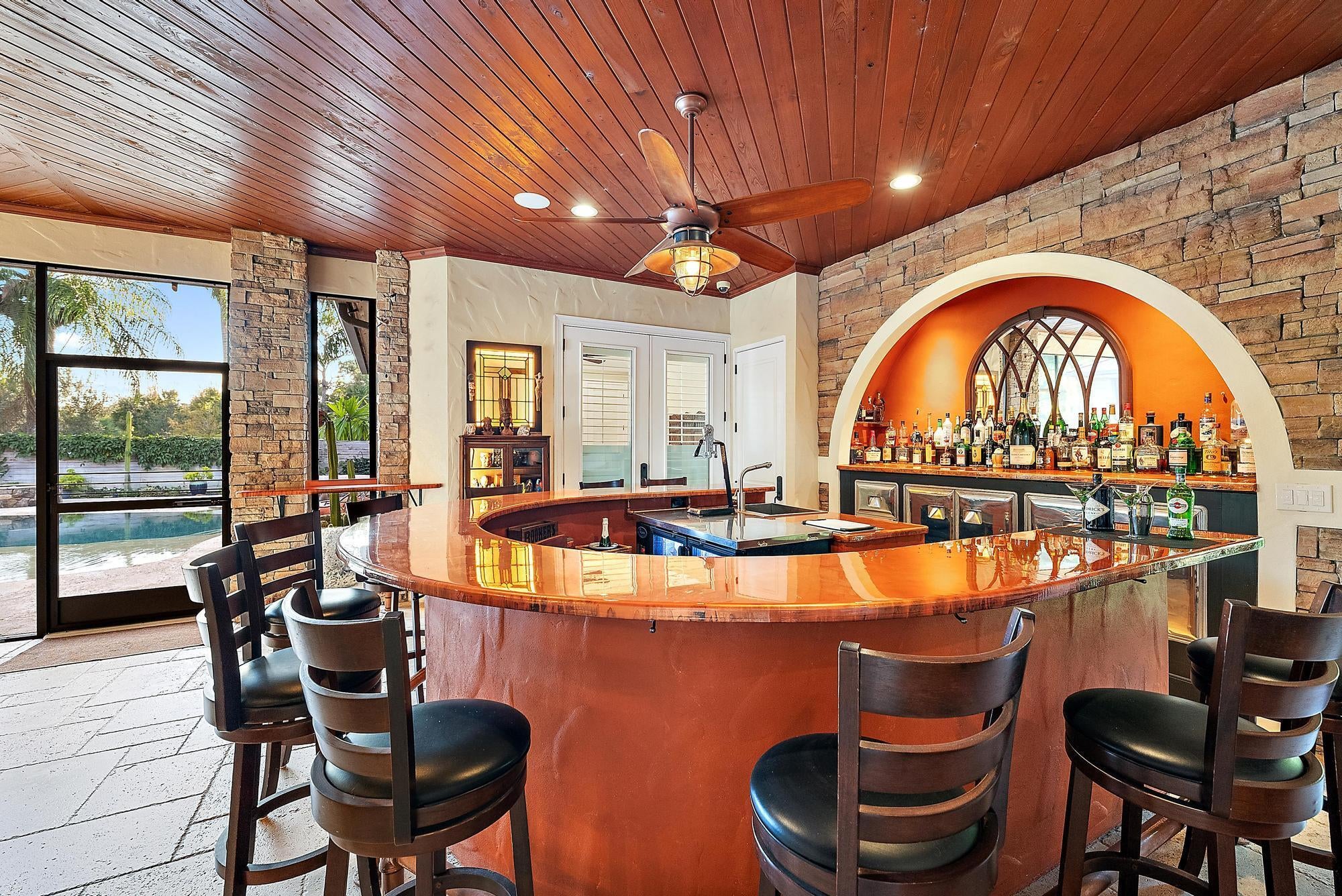 Bar, Built-in Shelves, Entry Lvl Lvng Area, Fireplace(s), Foyer, French Door, Cook Island, Laundry Tub, Pantry, Pull Down Stairs, Roman Tub, Split Bedroom, Volume Ceiling, Walk-in Closet, Wet Bar