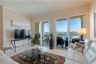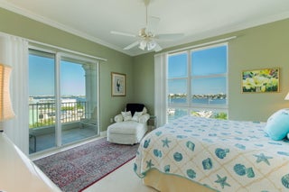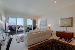 Rare 3BR/2BA PENTHOUSE CORNER UNIT at The Moorings with DIRECT EAST FACING VIEWS and a peek of the ocean. Enjoy a DOUBLE BALCONY overlooking the marina and Ocean Ave bridge. Features include 10' ceilings, crown molding, custom closets, plantation shutters, silhouette blinds, granite counters, European cabinetry, pantry, and impact glass throughout. The Moorings offers resort-style amenities including two pools, newly updated clubhouse, fitness center, conference room, valet, 24-hour security, and on-site cafe.