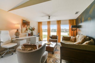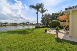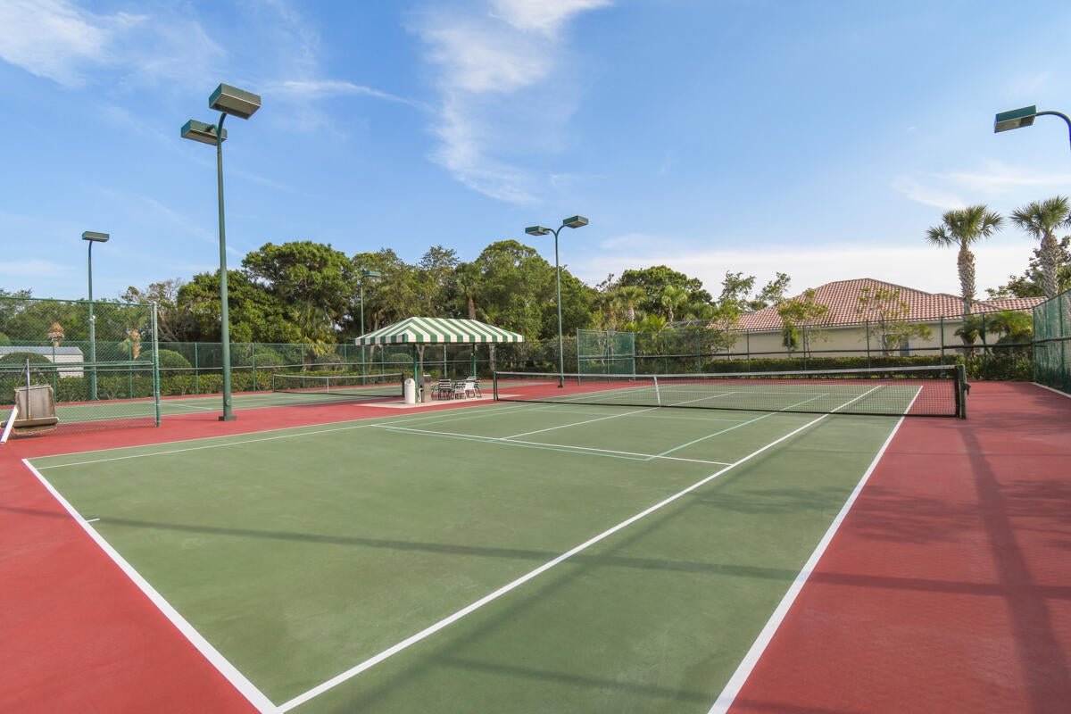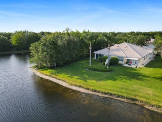 A Retreat in Hobe Sound! extended Capri III floor plan. Home away from home fully turnkey while you are building your dream home. 2 bedrooms, 2 bathrooms, large open den, 2-car garage. Open floor plan offers formal living room and open family/dining room, perfect for entertainment. Desk and filing cabinet easily allows for work from home. Overlooks beautiful preserve area and lake for peace and serenity. Split floor plan offering walk-in closets, large laundry room storage pantry, washer, dryer and SS laundry tub. Total renovation, all porcelain tile. Bosch, GE Cafe , 24 bottle wine cooler, 2 walk in showers, 86'' tv . Club House and amenities heated swimming pool, community room, exercise room, bocce, tennis and pickleball
