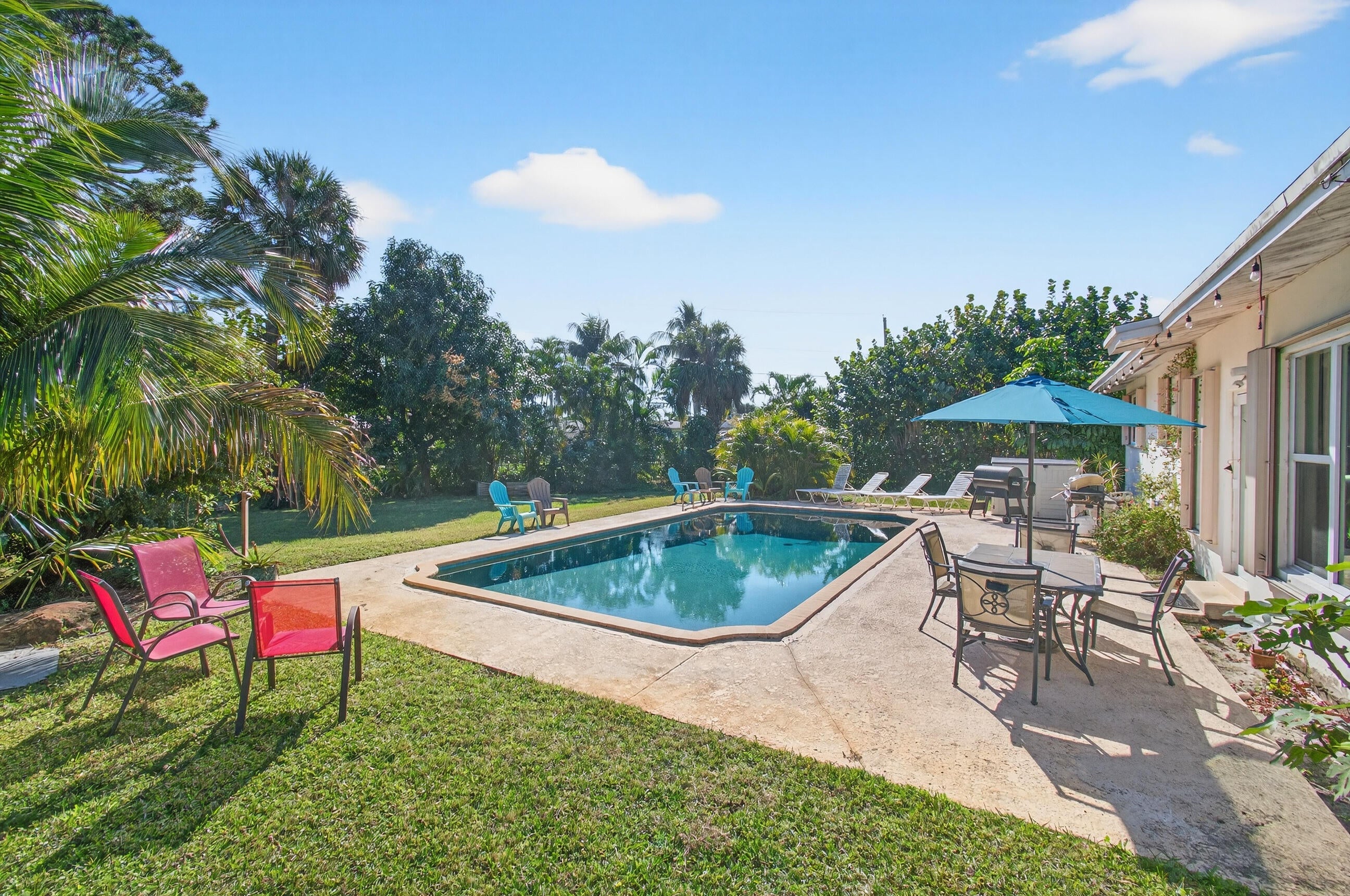 3 bedroom-2 1/2 bathroom Concrete Block home on a Gigantic Over-Sized Lot spanning 19,166 SF. Plenty of room for your boat, RV, trailers, & any toys! All Impact Windows add peace of mind and tranquility, as well as extra sunshine & a gracious open view of the backyard. Exceptionally high ceilings with tongue & groove in the main living area add to the open airy feel. Hardwood Pine Floors in the bedrooms. A bonus room with a full bathroom & exterior access that could be the perfect office, workshop, mother-in-law suite. A large saltwater pool, fruit trees, shed, & a fenced backyard. Located on a quiet cul-de-sac in Lake Osborne, walking distance to the lake with shaded sidewalks & benches to take in the gorgeous South Florida sunsets! OFFERING A $5,000 CREDIT TOWARDS DOWNPAYMENT!Close to the public boat ramps, fitness trail, tennis courts, park and dog park. Centrally located to Downtown, Lake Worth Beach, Bryant Park, and the many festivals and parades Lake Worth Beach has to offer. Don't let this One-Of-A-Kind property slip by!