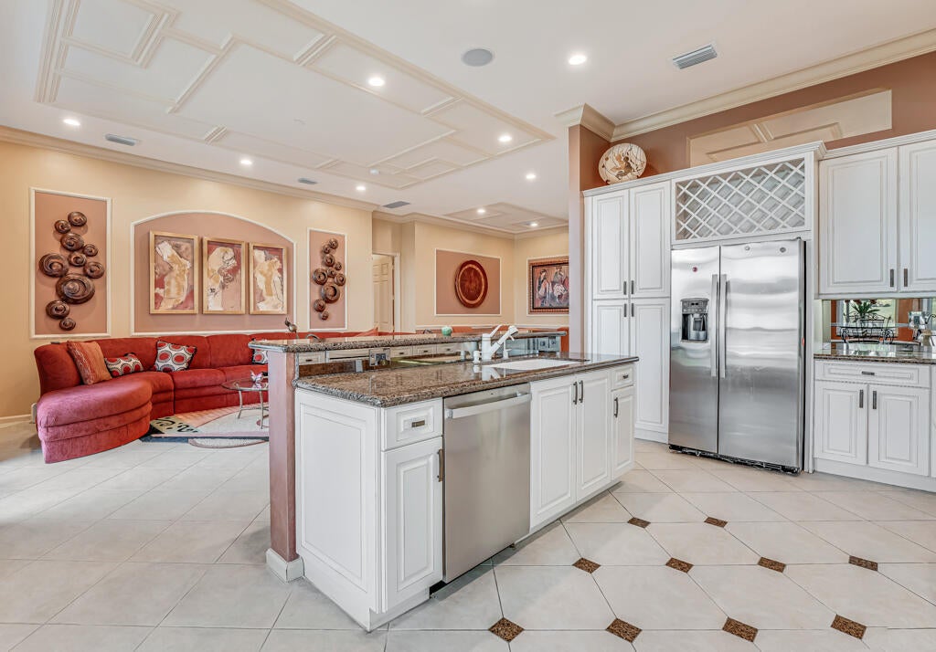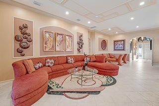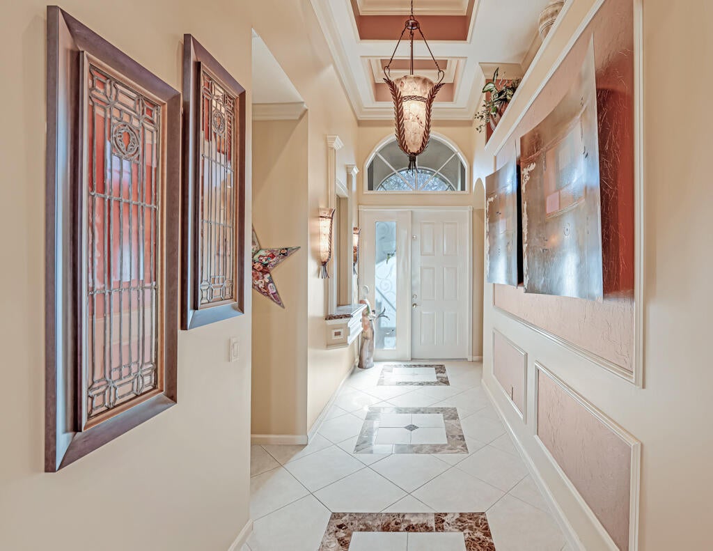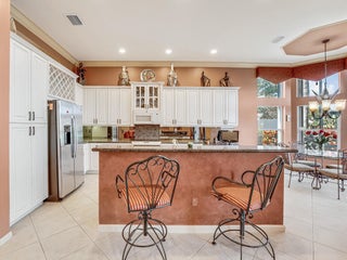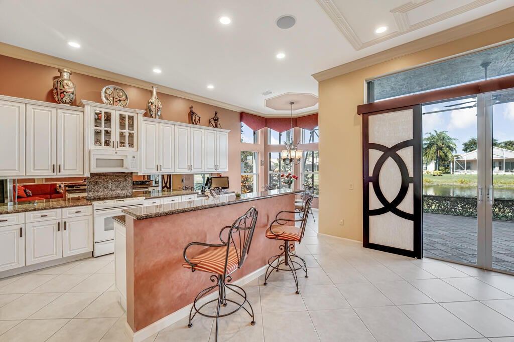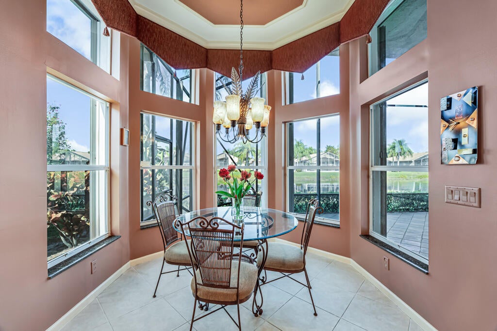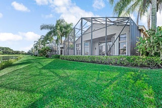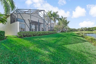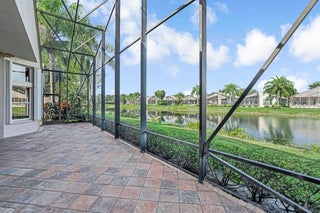 AMAZING LAKE VIEWS greet you from the moment you enter the front doors to the custom open & airy floorplan with wall down! Peace & serenity surround you! Step out to the extended screened in lanai with water,water everywhere! A light kitchen, granite, chef's island & eat in cafe along with neutral tile on a diagonal, high detailed ceilings, high end moldings & beautiful lighting are just a few of the extras! 3 Bedrms plus a bonus theatre rm or bedrm 4, 2 1/2 bths is the perfect size!Accordion shutters&auto generator provide storm readiness!.Location is key! Walk to social club! Full Service Restaurant,6 pickleball,10 tennis crts,Bocce Crts,fabulous tropical pool,2 indoor racquetball crts,indoor whirlpool,beauty salon,full fitness center, resistance&lap pool,amenities galore,LOVE!HOA includes $400 credit on the Bistro card towards dining, outside painting of the home, lawn & shrub maintenance, in home monitored security system, his speed wi-fi, internet, Cable TV, Roof cleaning, 24 hr manned gate, a separate athletic center with state of the art equipment, massage and spa salon, lap pool, indoor whirlpool and outside hot tub, Resistance pool, & so much more!