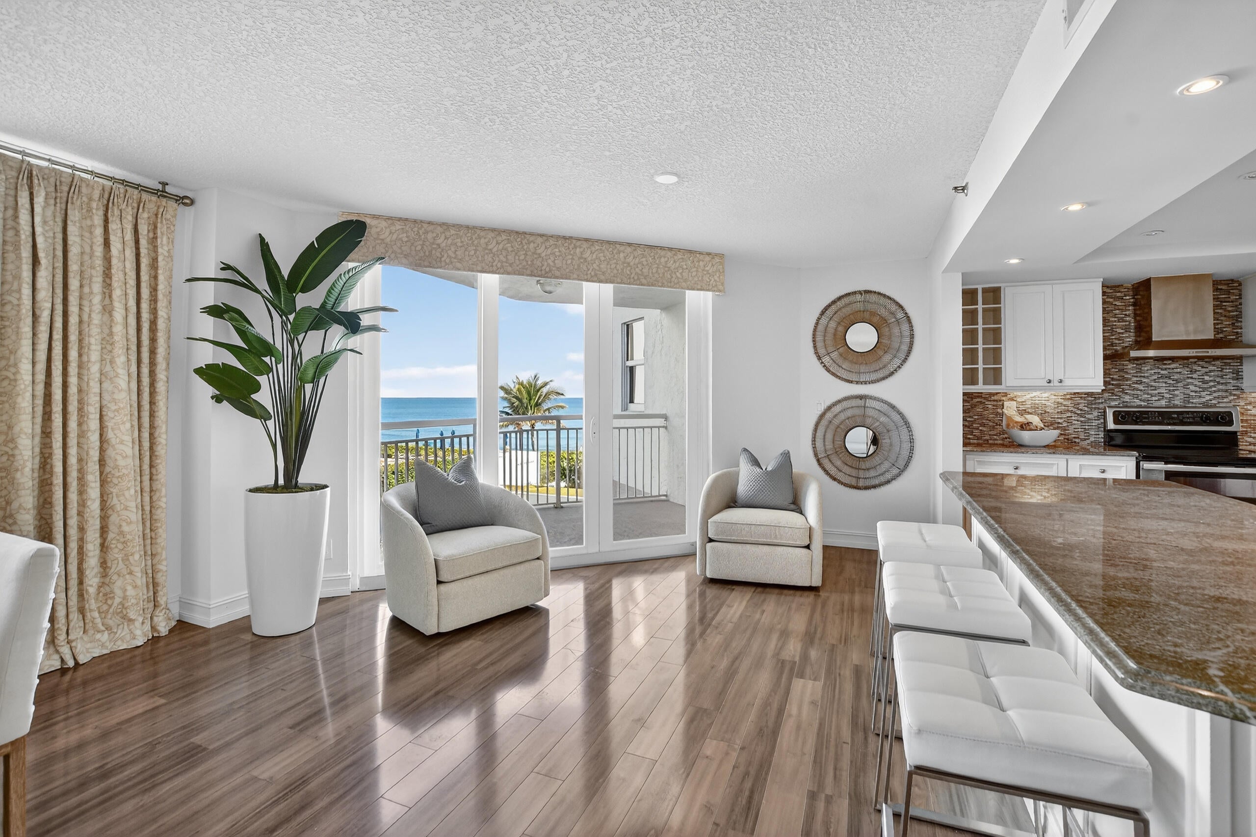 Welcome to your beachfront oasis ''on the sand''! This stunning 3 bedroom condo in Ocean Dunes boasts breathtaking Atlantic views, a modern open floor plan, warm laminate flooring, sleek white kitchen, stainless steel appliances, gorgeous granite counters. Freshly painted, new luxury carpet in all bedrooms, impact glass throughout- it's move-in ready. Enjoy the spacious great room flooded with natural light and ocean views, and a private balcony perfect for morning coffee or dining al fresco. This exclusive 48 unit boutique building offers direct beach access-just step outside-renovated common areas, manned security, pool, fitness room, and social room. Park in the garage and take the elevator to your private foyer entry. Milestone inspection done, SIRS done-your coastal dream home awaits