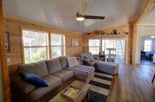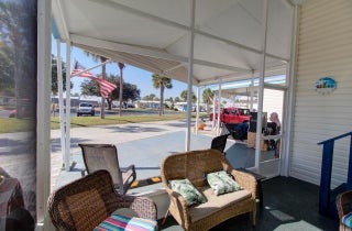 Are you looking for an incredible home in a 55+ community? This beautifully updated 2-bedroom, 1.5-bath park model home features charming cedar interior walls, an expanded kitchen, a full-size laundry room with workspace, updated appliances, a durable metal roof, and more. Enjoy peaceful water views from the screened back porch, or relax and entertain friends and neighbors on the front screened patio. This home is truly a must-see.