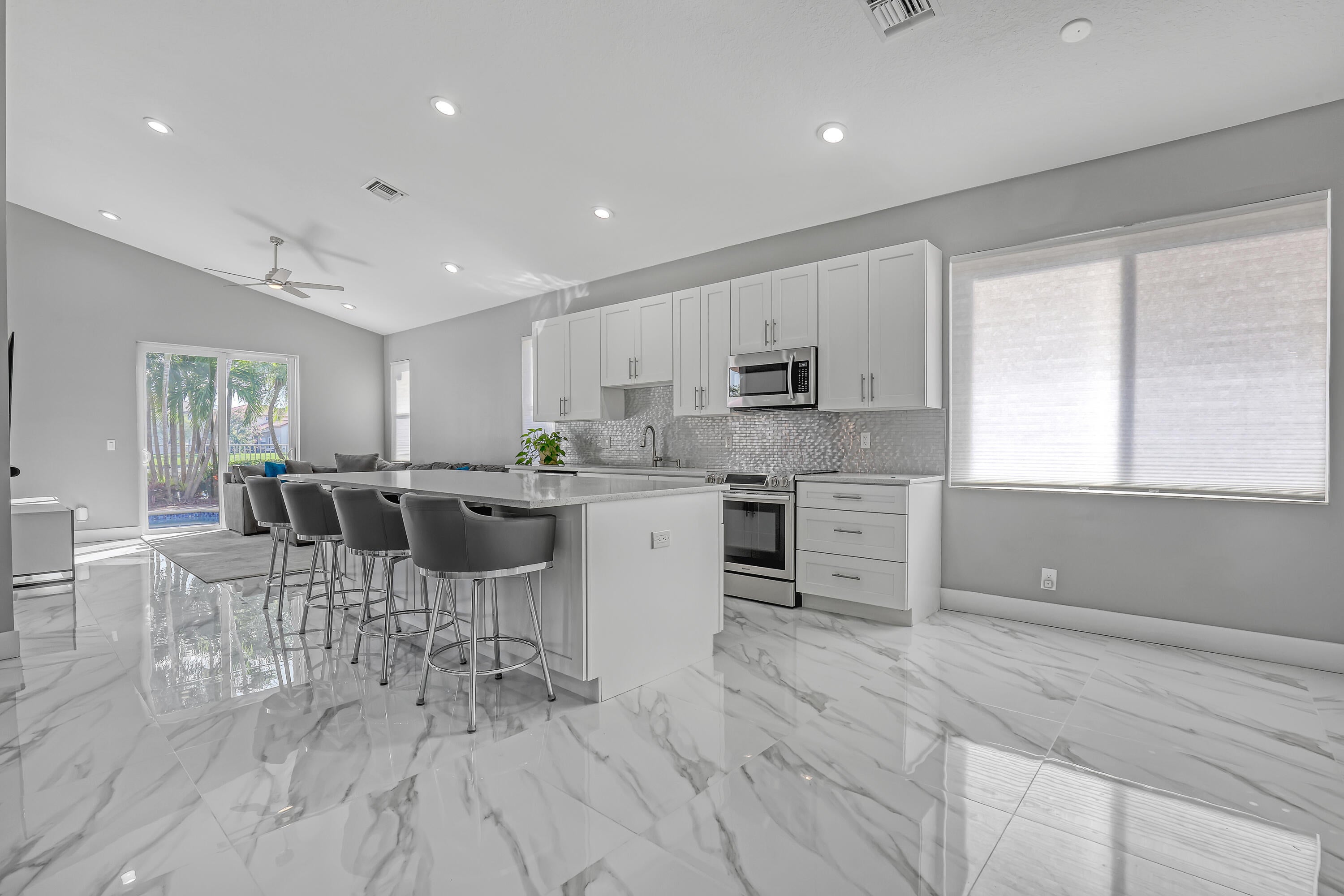 Welcome to resort style living in highly sought after Isola Bella community! This beautifully modernized 3-bedroom, 2- bathroom home with a 2-car garage offers the perfect blend of luxury, comfort, and location. Step inside to discover a fully upgraded interior, highlighted by a stunning contemporary kitchen featuring quartz countertops, sleek cabinetry, and modern finishes Ideal for both everyday living and entertaining. All bathrooms have been completely remodeled, offering spa inspired design and high end finishes throughout. Hurricane impact windows throughout provide Peace of Mind and energy efficiency. Enjoy the Florida lifestyle with your private pool overlooking a serene lake perfect for relaxing or hosting guests, All within a desirable, well-maintained community!
