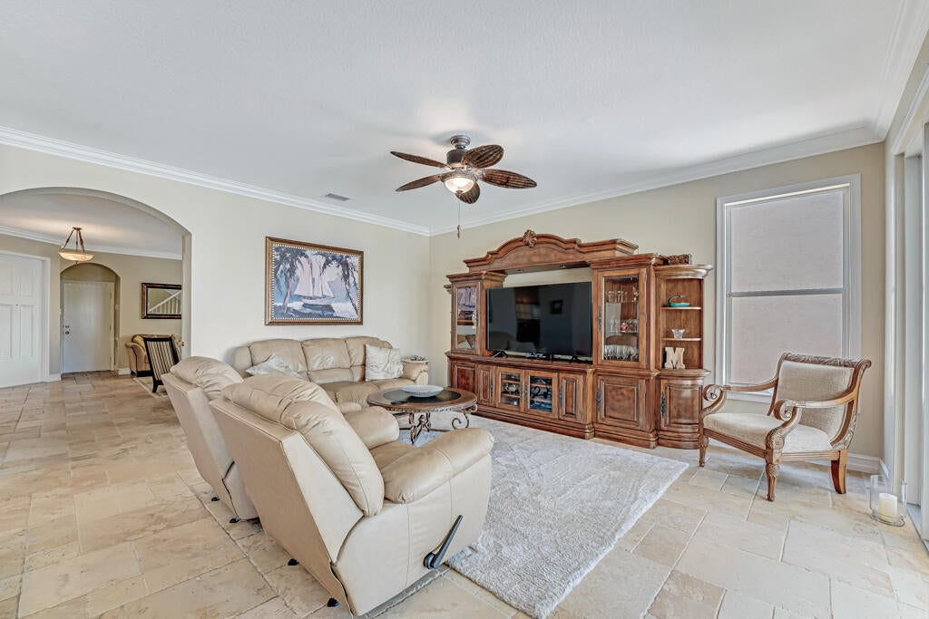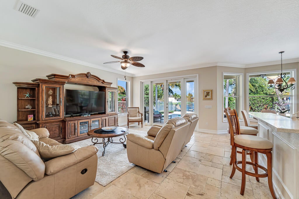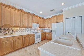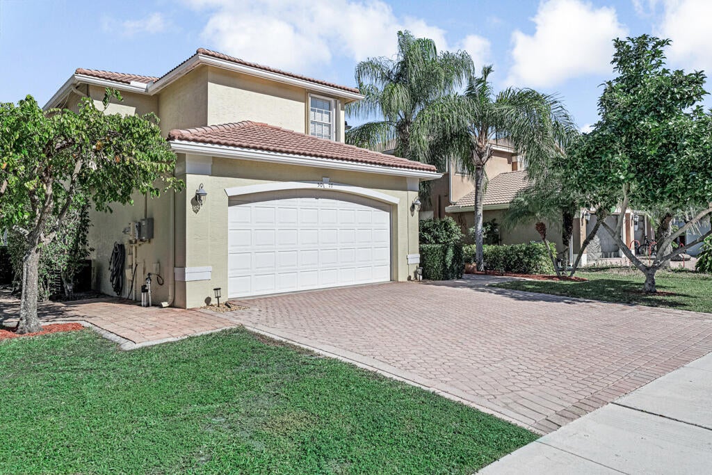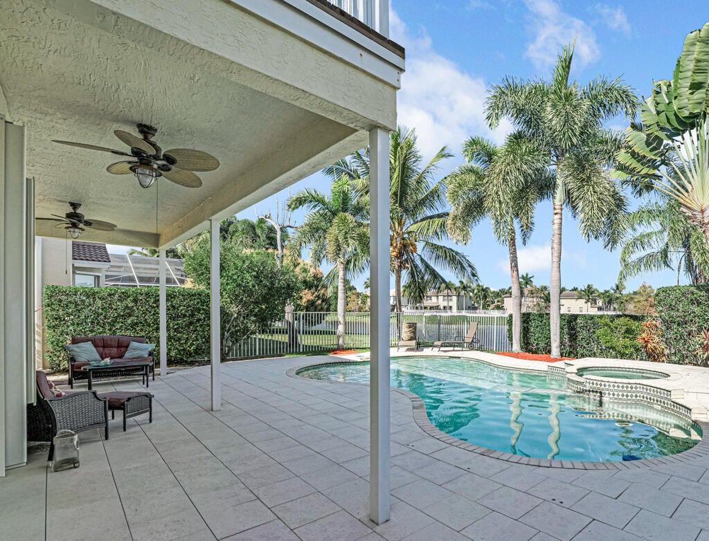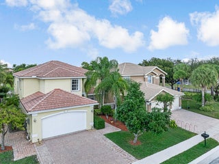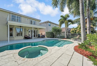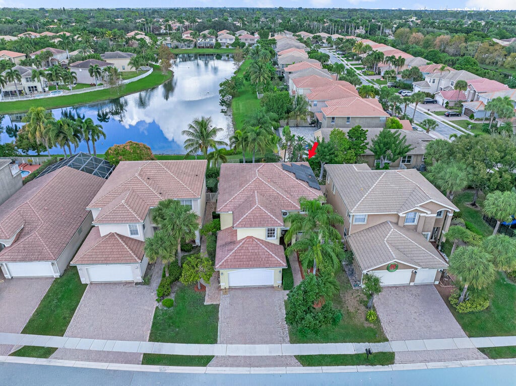 Spectacular, gently used, furnished and well-kept lakefront home. This impressive 4500 sq ft residence features, a two-car garage, 6 bedrooms, 4 full baths. The spacious primary bedroom includes, private balcony, a sitting area and a his-and-hers bathroom and walk-in closets.Notable highlights include energy saving solar panels, living area Saturnia Marple flooring and plantation blinds.Tropical backyard offers lake views, heated pool, and spa, covered balcony area and several fruit trees. Perfect for entertaining. Nautica Isles is gated well maintained community with resort-style amenities including resort style pool, tennis, soccer, fitness, basketball, volleyball, playground etc.Easy access to the airport, major highways, dining, Equestrian facilities and shopping. Additional notes: Beautiful open-concept kitchen and living room overlooking the tropical yard, pool, and lake. Two bedrooms and an updated bath on the first floor; laundry room with tub on the second floor. Yard fruit trees: Avocado, Carambola, Miracle berry and Barbados Cherry