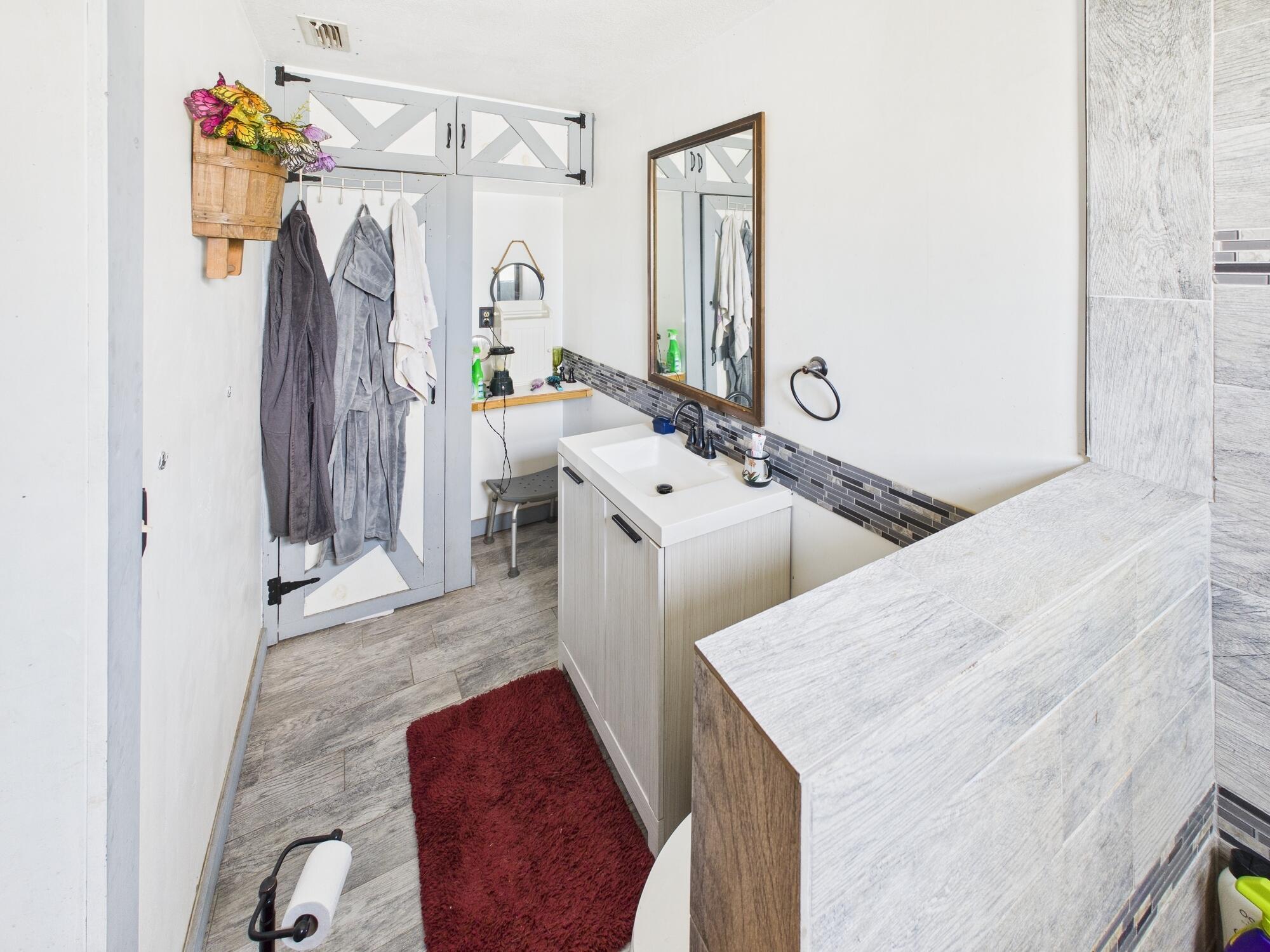 Charming and thoughtfully maintained 2-bedroom, 2-bath home offering a rare three-lot property that creates an expansive L-shaped yard, providing exceptional space, privacy, and flexibility. The enclosed garage adds valuable living space and functions perfectly as a large home office or potential third bedroom. Inside, enjoy a bright, open living concept with abundant natural light, large windows, and a comfortable, inviting flow ideal for everyday living and entertaining. Updated bathrooms add a modern touch, while the covered porch and mature trees enhance the peaceful country feel. Generous outdoor space offers room to relax, garden, or expand. Conveniently located near town, shopping, lakes, and parks. Move-in ready and truly one of a kind.