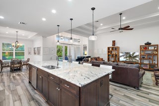 Located within the prestigious gates of Jupiter Country Club, this Extended Saranac model single family residence features 3 bedrooms plus an office, 3.5 bathrooms, and 2,716 square feet of thoughtfully designed living space, all situated on an expansive .35 acre private lot. This highly desirable home includes an extended guest bedroom ensuite, an extended two car garage with an additional 4 feet, soaring volume ceilings, elegant crown molding throughout, tray ceilings in the living room and primary suite, and timeless white plantation shutters, creating a refined yet welcoming atmosphere from the moment you arrive.Upon entering, you are greeted by a bright and open floor plan designed for both everyday living and entertaining. The spacious living areas flow seamlessly into a hugefamily room and dining area just off the kitchen, all enhanced by abundant natural light. The heart of the home is the large open kitchen, complete with granite countertops, a massive center island, gas range, decorative tile backsplash, and two pantries, including a custom built in pantry, perfect for hosting and culinary enthusiasts alike. The split bedroom floor plan provides privacy and functionality, with the primary suite thoughtfully positioned on its own wing of the home. This oversized retreat is filled with natural light and offers serene views of the lush backyard landscaping. The primary suite features dual walk in closets and a spa like bathroom with double vanities, a separate soaking tub, and a generously sized walk in shower with floor to ceiling tile. On the opposite side of the home, you will find two guest bedrooms, both with ensuite bathrooms and built in closets. The front guest bedroom has been extended, creating an expansive guest suite with three extra length windows and a beautifully finished ensuite bath with a floor to ceiling tiled shower. The third bedroom has been customized with its own private bath with a tub shower combination and modern floor to ceiling tile. An office, half bath, laundry room with washer, dryer and mop sink, and access to the extended two car garage complete the home's functional and well designed layout. Step outside to enjoy the rare luxury of a massive private .35 acre lot, surrounded by lush landscaping and offering ample room to add a pool or create your dream outdoor entertaining space, perfect for enjoying Florida's year round sunshine and indoor outdoor lifestyle. Additional highlights include a brand new AC, new gas dryer, two EV chargers in the garage, abundant storage, quality finishes throughout, and a move-in-ready condition that allows you to enjoy the home from day one. As a resident of Jupiter Country Club, you will enjoy access to world class amenities including an 18 hole Greg Norman Signature Golf Course, six Har Tru tennis courts, pickleball and bocce, two resort style pools, a brand new state of the art fitness center, and on site dining, all within a beautifully maintained gated community. Ideally located near top rated schools, pristine beaches, shopping, dining, and with easy access to I 95 and the Florida Turnpike, this home offers the perfect balance of convenience and tranquility, set in a premium location with no highway noise. Homes of this caliber are rare. Schedule your private showing today before this exceptional opportunity is gone.