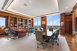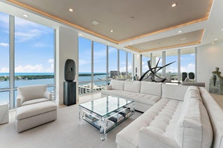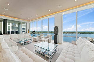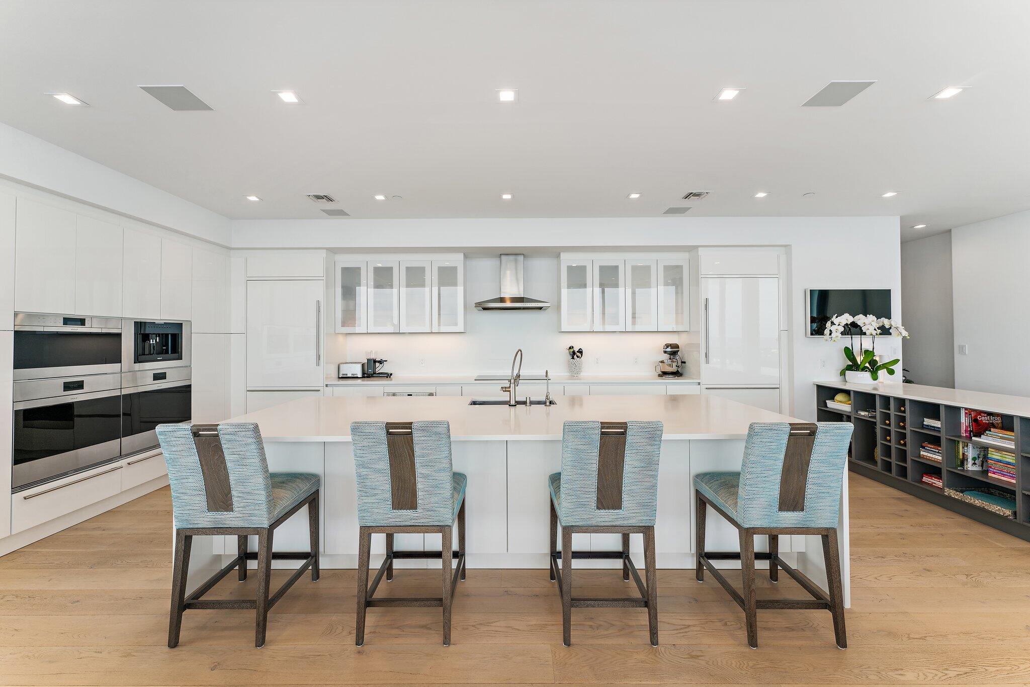 This amazing penthouse suite occupies the entire top floor of Building # 3 at Water Club in North Palm Beach. Enjoy breathtaking views from the Great Room where the East wall is a 42-foot-long by 11-foot-tall wall of glass overlooking the Atlantic Ocean and Lost Tree Village like a postcard. Designed by the owner with the developer prior to construction, this signature property is 1 of 1 with 360-degree views and next level finishes not seen at Water Club. Reading more like an ultra-luxury home in the sky than a condominium, this suite has a great room/kitchen area that would rival the finest area single-family homes. The wood paneled library is a dream workspace with room for a conference table, desk area, reading area, and expansive bookshelves, plus a full private bath.A private gym with half bath, den, guest suite, her office with walk-in closet and bath, powder room, laundry, and two elevator foyers round out the space. Best of all, this penthouse has four assigned parking spaces under the building. Water Club has world class amenities like 24/7 manned and gated security, private elevator lobbies, underground parking, two private clubhouses with bar and billiards table, resort style pools, day dock, lap pool, two fitness centers, with yoga/pilates studio, spa, fire pits, pickleball court, guest suites, and more.
