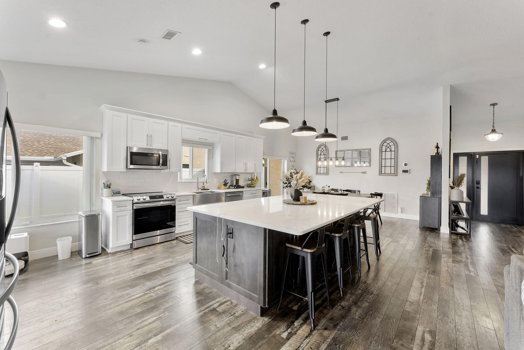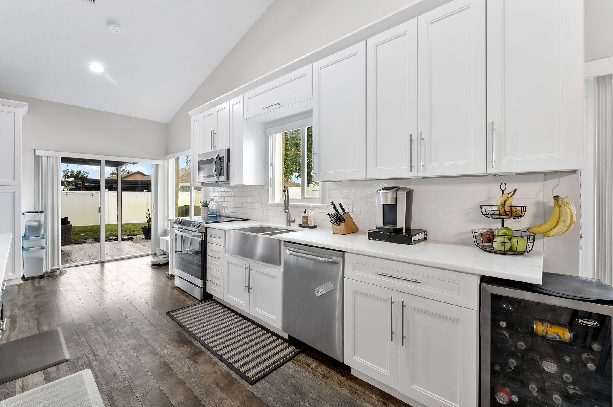 Welcome home to the Lakes of Sherbrooke. This single family home is truly move in ready. Offering a completely remodeled open floor plan kitchen with large center quartz island, newer SS appliances, dining area, and great room. contemporary upgrades include wood look flooring throughout the home, new lighting, Vaulted ceilings, Roof is 2024. COMPLETE Hurricane Impact Windows & Sliders, Brand new impact front door. New Class A Garage Door. All new gutters and added insulation in the attic. Completely fenced private and spacious backyard that is well maintained, choice of two community clubhouses, activities, and swimming pools. Zoned for Lake Worth's newest school, Dr Joaquin Garcia High School and Woodlands Middle School, Low HoA includes Fiber Optic WiFi & Cable.