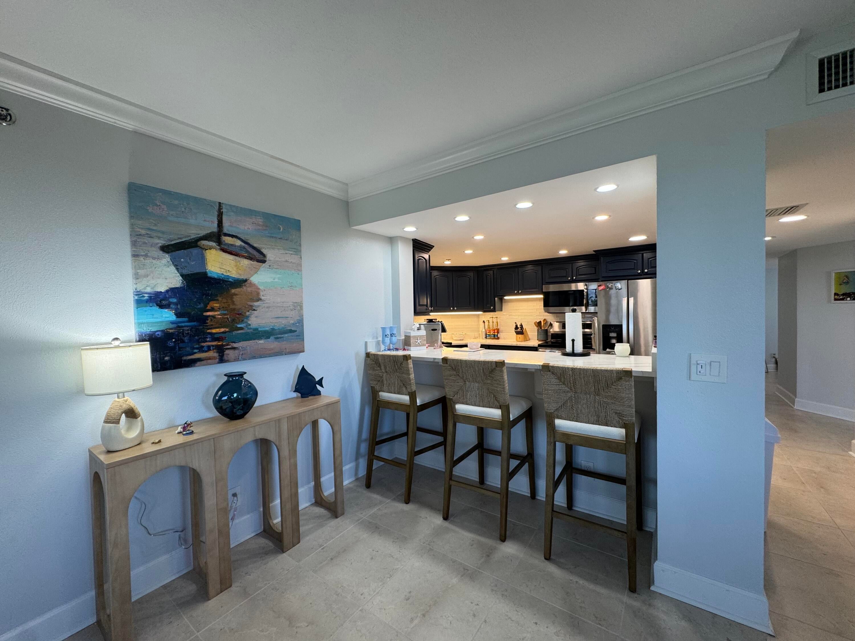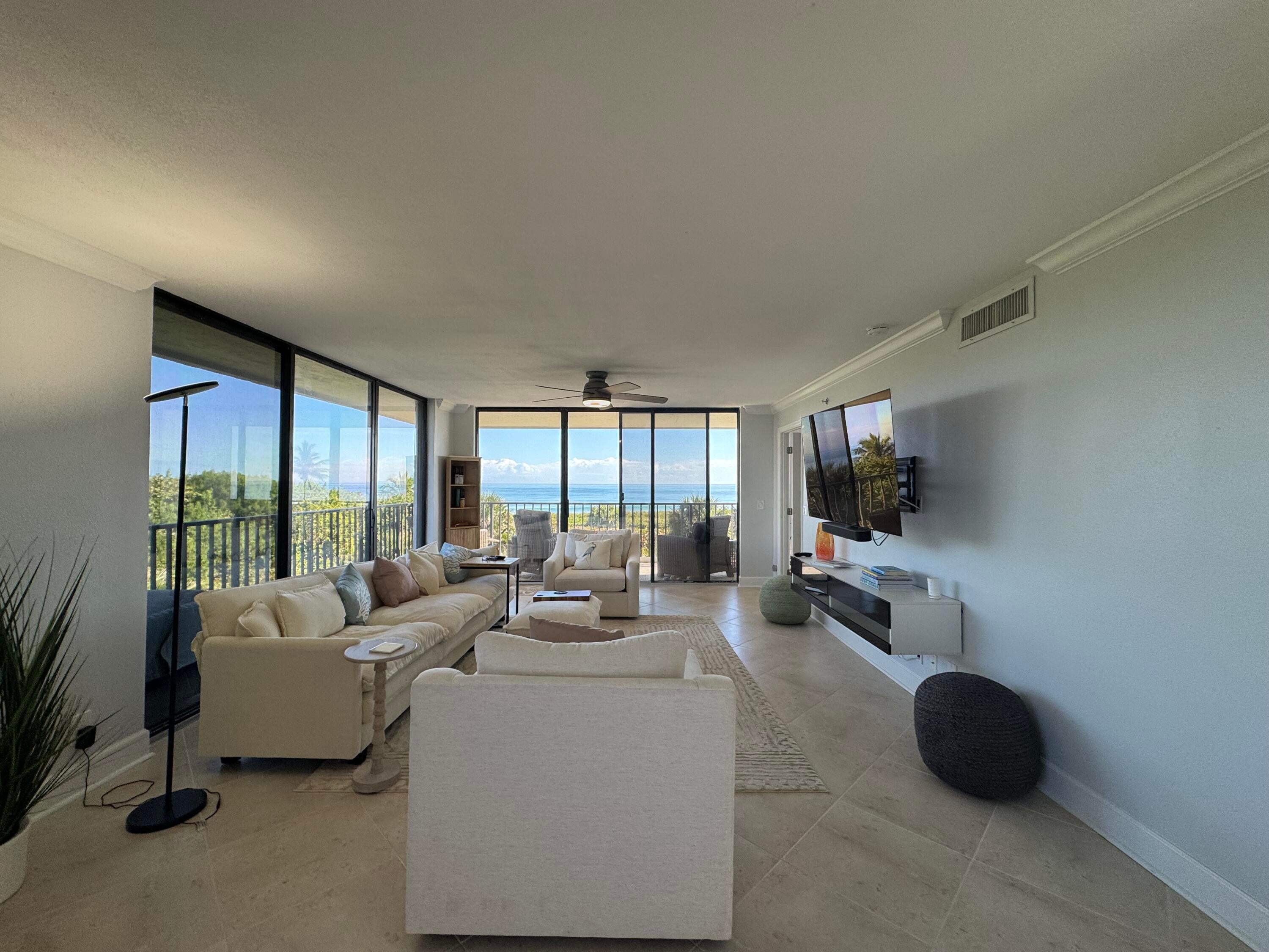 New Year, New Life Experiences and Luxury is here! Oceanfront living at its finest! Corner end unit with ocean views and privacy. Spacious living area , Garage and Carport included. Beautifully updated and fully furnished with comfort and serenity. Guests can enjoy privacy as bedrooms are split from Master. Laundry room, entry hall for a relaxing walk into this lovely 3 Bedroom. 3rd guest bedroom office and murphy bed for the occasional guest. Large balcony for entertaining. King in Master, queen in bedroom 2, queen murphy bed in office/bedroom 3. All new furniture, Bathrooms new with marble tile, office has barn doors that open to view ocean while working from home. Seasonal or Annual rental. Large laundry room for added convenience. Kitchen all new fully equipped.Very well equipped with towels, beach chairs, Shibumi beach shade. Silverware, clad pots/pans, hencles knives, new dishware, glasses etc.. Just move right in and relax.... Call me today for a private showing.