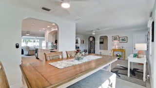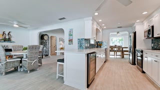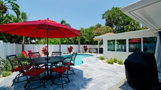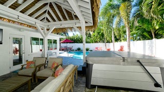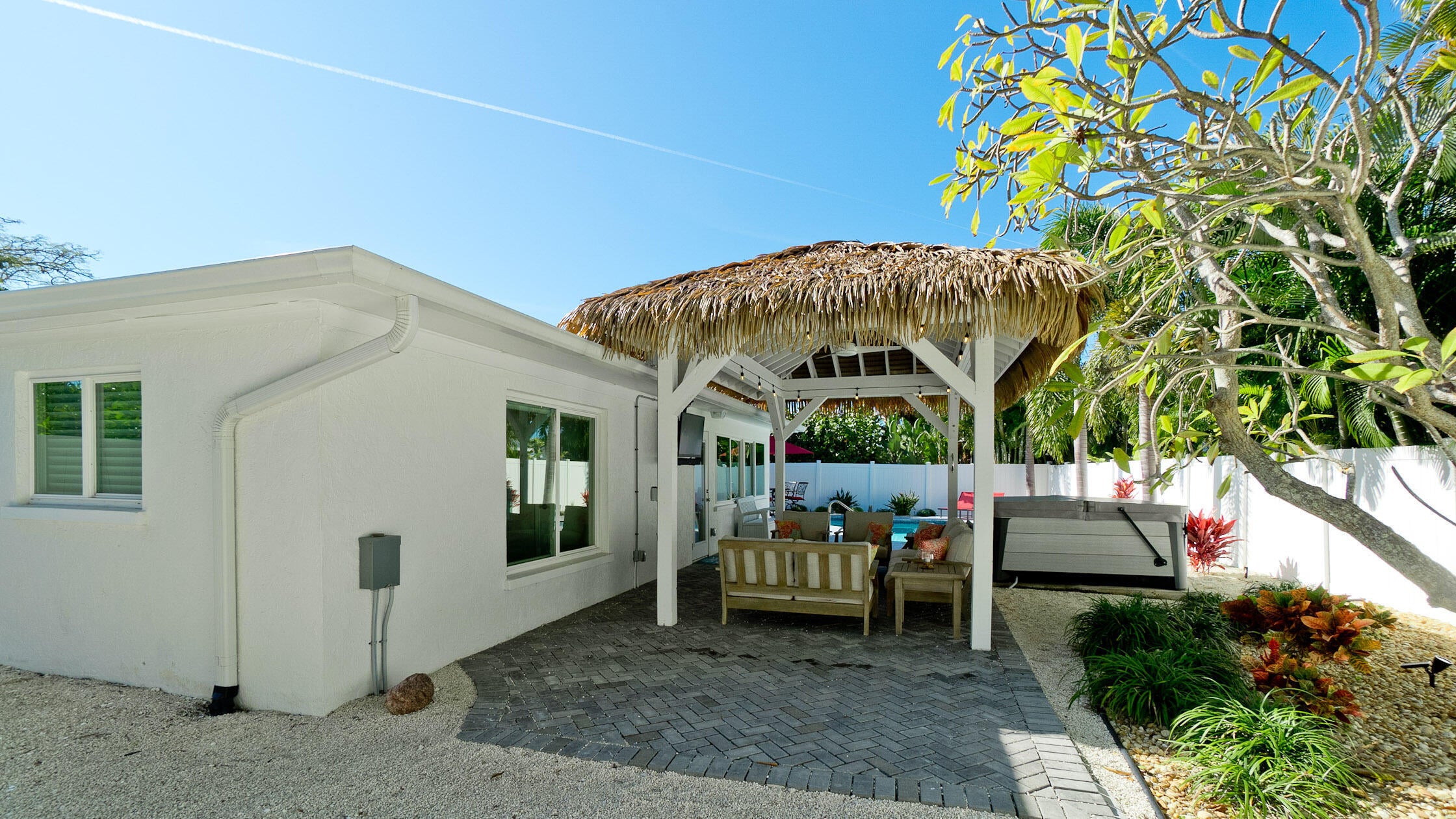 This newly and fully remodeled open floor plan 3-bedroom, 2-bathroom Holmes Beach, FL home is now offered WITH DEEDED BOAT SLIP AND BOAT LIFT as a move-in ready dream come true. Here you will enjoy the ''old Florida'' feel of the quiet neighborhood along with the benefit of the totally private back yard and a gorgeous marina water view across from the front of the home. The DEEDED boat slip is only 50 yards from front of the home in the canal marina directly across the street and has a updated dock, 13,000 lb lift, water, electric, and can support a boat with up to 9.5 ft beam and 30 ft length overall. This home has hurricane-rated windows (2023) with Levolor Custom Sheer Shade window coverings, new ceramic tile flooring, a beautifully revamped kitchen with new GE stainless steelappliances (2025), new GE large capacity front load washer/dryer (2025), and newly tiled spa-like bathrooms. Comfort is assured at all times with a brand-new Carrier A/C with heat pump and smarthome thermostat (12/2025) and a tankless water heater (2023) for never-ending hot showers. The backyard is a private tropical oasis featuring a heated saltwater pool with a new pool pump (11/2024), pool heater (12/2025), a top of the line 2022 HotSprings Vanguard saltwater hot tub with all new (2025) heaters, pumps and controllers, lush irrigated landscaping, a 6ft privacy fence, and a massive fan cooled and lighted tiki-covered paver patio for entertaining. The home exterior has updated HardiePlank siding, fresh paint and gutters, a 2019 roof, and beautifully landscaped yard along with the marina canal views right across the street. Just steps from the Gulf beach and close to everything that makes Anna Maria Island great: top restaurants, bars, boutiques, and all the beach and cart-riding fun you can handle to provide the ultimate island living experience. Finally, and very importantly, this home has no HOA, no Master Association, no CDD, and can be (is currently) Homesteaded.