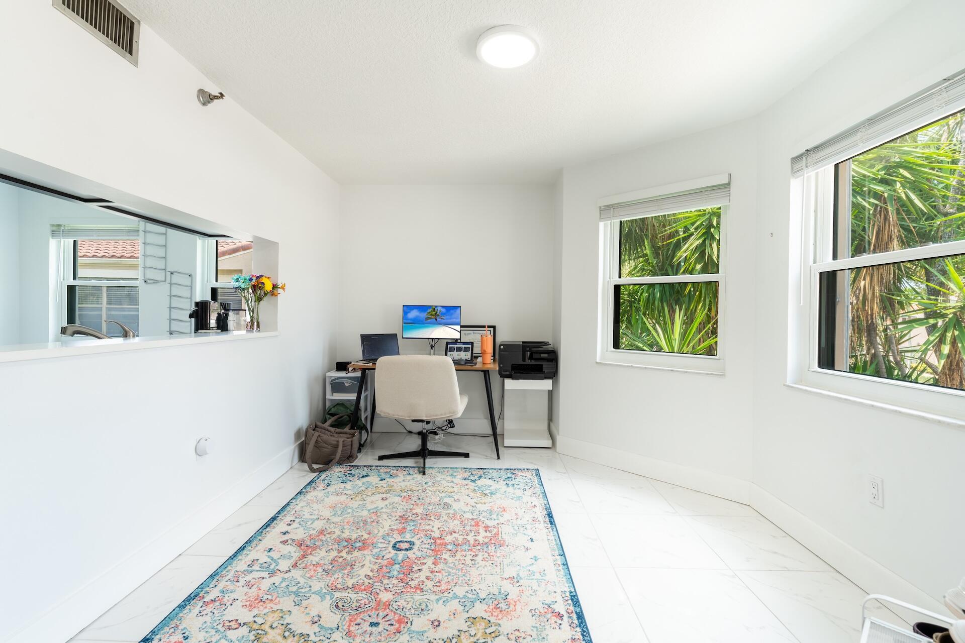 Pristine 2 bedroom / 2 bathroom + Plus office/flex space in sought-after Villa Sonrisa at Boca Pointe. End unit with detached 1-car garage and private driveway parking. Enjoy outdoor living on a spacious 24' x 24' 2nd-floor patio. Sleek eat-in kitchen with stainless appliances. Spacious sunlit living room with large neutral tile throughout. Primary suite featuring a walk-in closet and private balcony. New impact windows, newer AC (2021), recessed lighting. In-unit full-size washer/dryer. HOA includes exterior insurance, roof, cable, & internet. Heated community pool just steps away, optional Boca Pointe golf & club memberships available. Central Boca location near beaches, shops, Town Center Mall, Excellent schools, Sugar Sand Park and more.