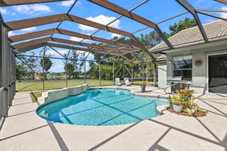 Luxurious, lakefront, pool home on 0.62 acres, offering 4-Bedrooms, 3 Baths & 2.5 Oversized Garage in Exclusive Legend Lake Estates! Come inside and enjoy the breathtaking long lake views, soaring volume ceilings and spacious living areas along with a kitchen which opens to the family room-ideal for entertaining! The inviting kitchen offers white cabinetry, stainless steel appliances, quartz counters a great island and breakfast bar. All bedrooms are generously sized and provide ample closet space.The master suite is a true sanctuary, featuring 2 walk-in closets, a sitting area and a spa-like en-suite bath with walk in shower and double vanity. Outside, enjoy the screened-in patio and resort style pool overlooking the serene lake. Love water activities? Bring your fishing boats, canoes, paddleboards and kayaks to enjoy from your own backyard! Located within an A-rated school zone, Legend Lake Estates offers low HOA fees and exclusive amenities, including pickleball, tennis, and basketball courts. This residence offers the perfect blend of luxury, comfort, and South Florida living at its finest.