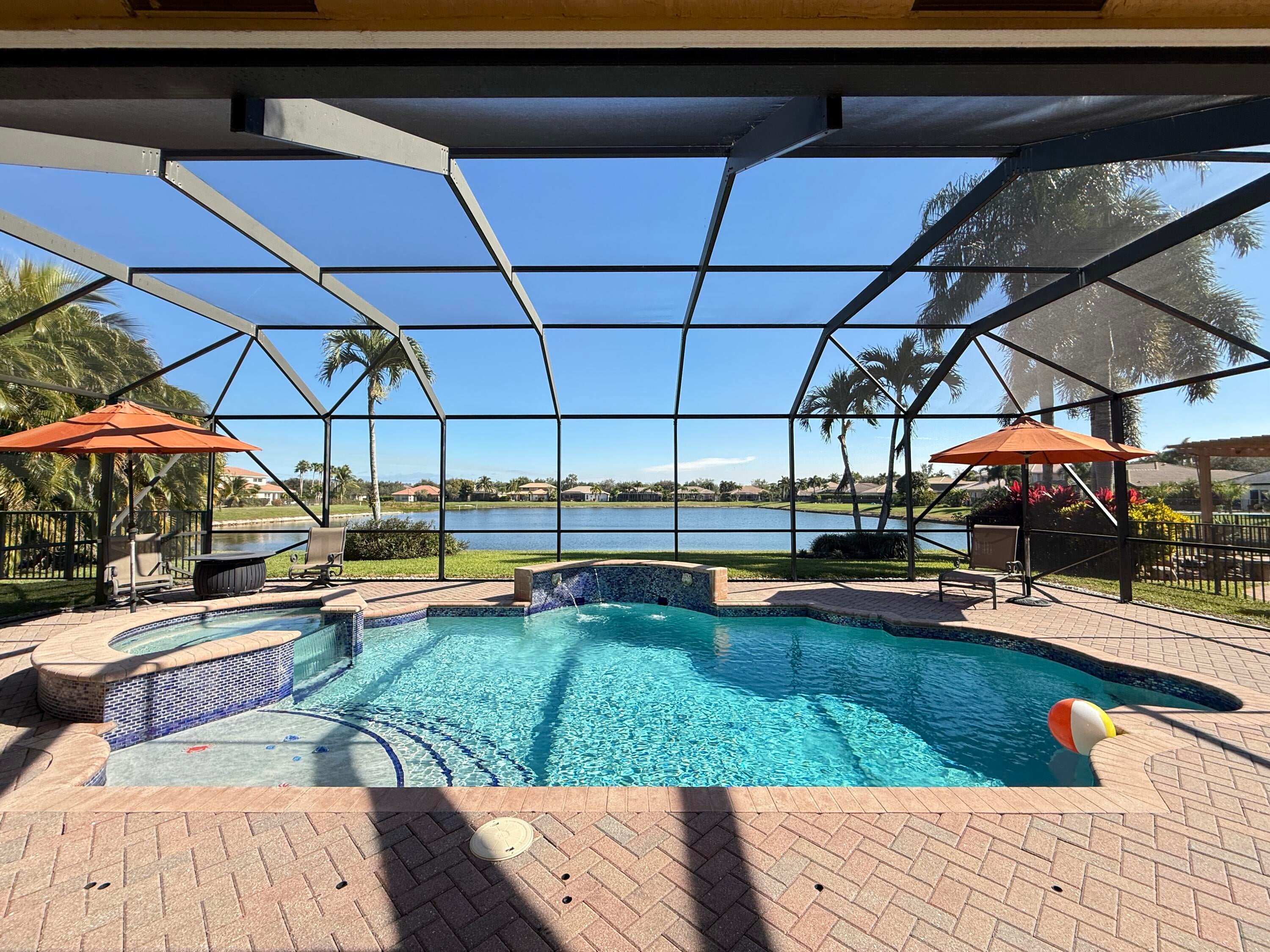 Waterfront home with spectacular views! New roof Nov. '25, impact windows and doors, screened/heated salt water pool/spa. Kitchen with new quartz counters, tiled backsplash & bar front, over and under cabinet lighting. Stainless steel appls. 10ft ceilings + lots of natural light throughout. Wooden staircase & 2nd floor landing. 4 full baths with added ensuite at BR 4. 1st floor BR & bath. New interior paint at walls & ceilings. Natural gas range, oven, water heater, dryer, pool heater & whole house generator. Fenced dog run w/small area of artificial grass to wipe paws. Electric vehicle 2020/50 amp available. Interior laundry room. HOA fee includes: Unmanned gate, security system monitoring, basic cable/internet, common areas, Tennis/pickleball, basketball, playground.Cedar Creek Ranch is a quiet enclave of homes located just west of Florida's turnpike for easy commute throughout South Florida and only a short distance from the The Mall at Wellington Green with shopping, movie theaters & dining. Near the Village of Wellington, FL known as "The Winter Equestrian Capital of the World".