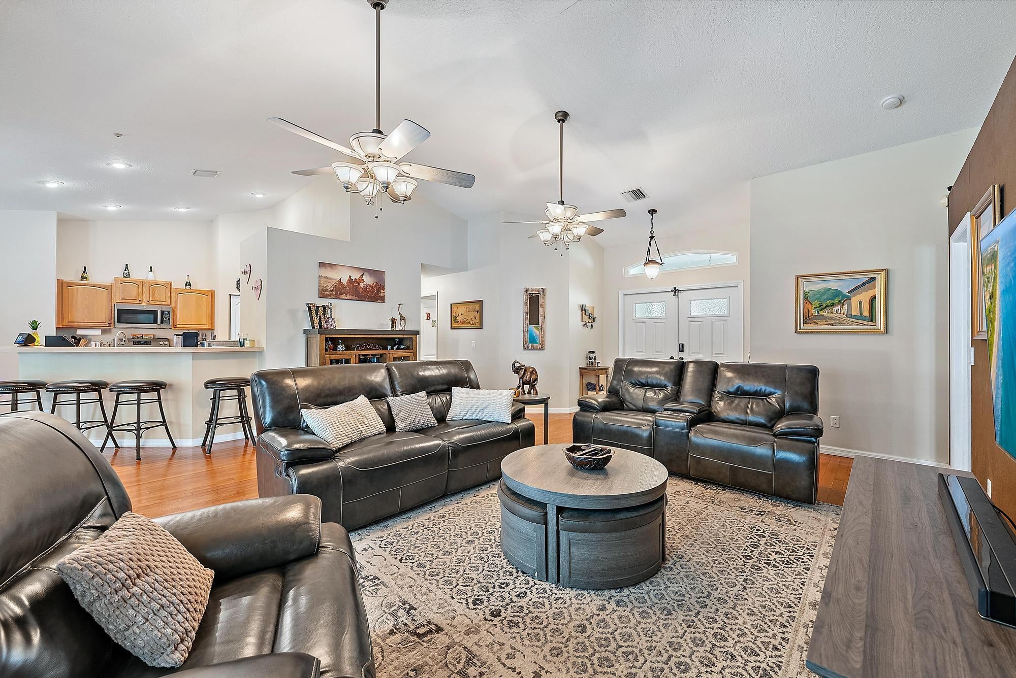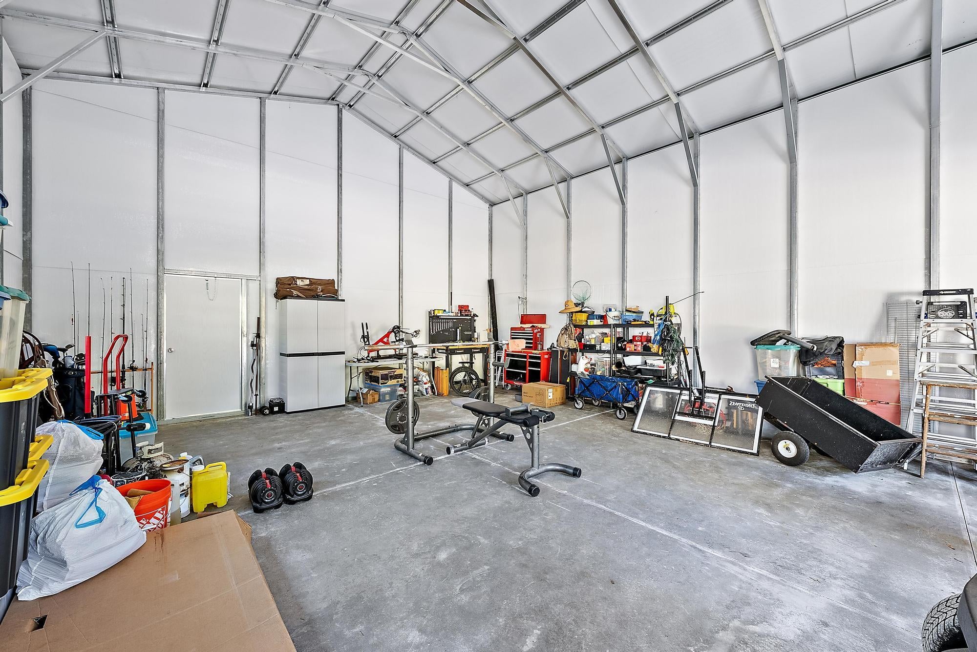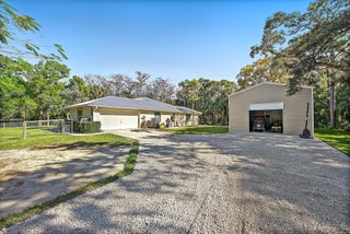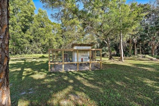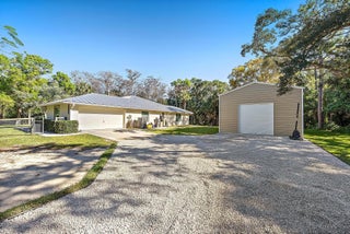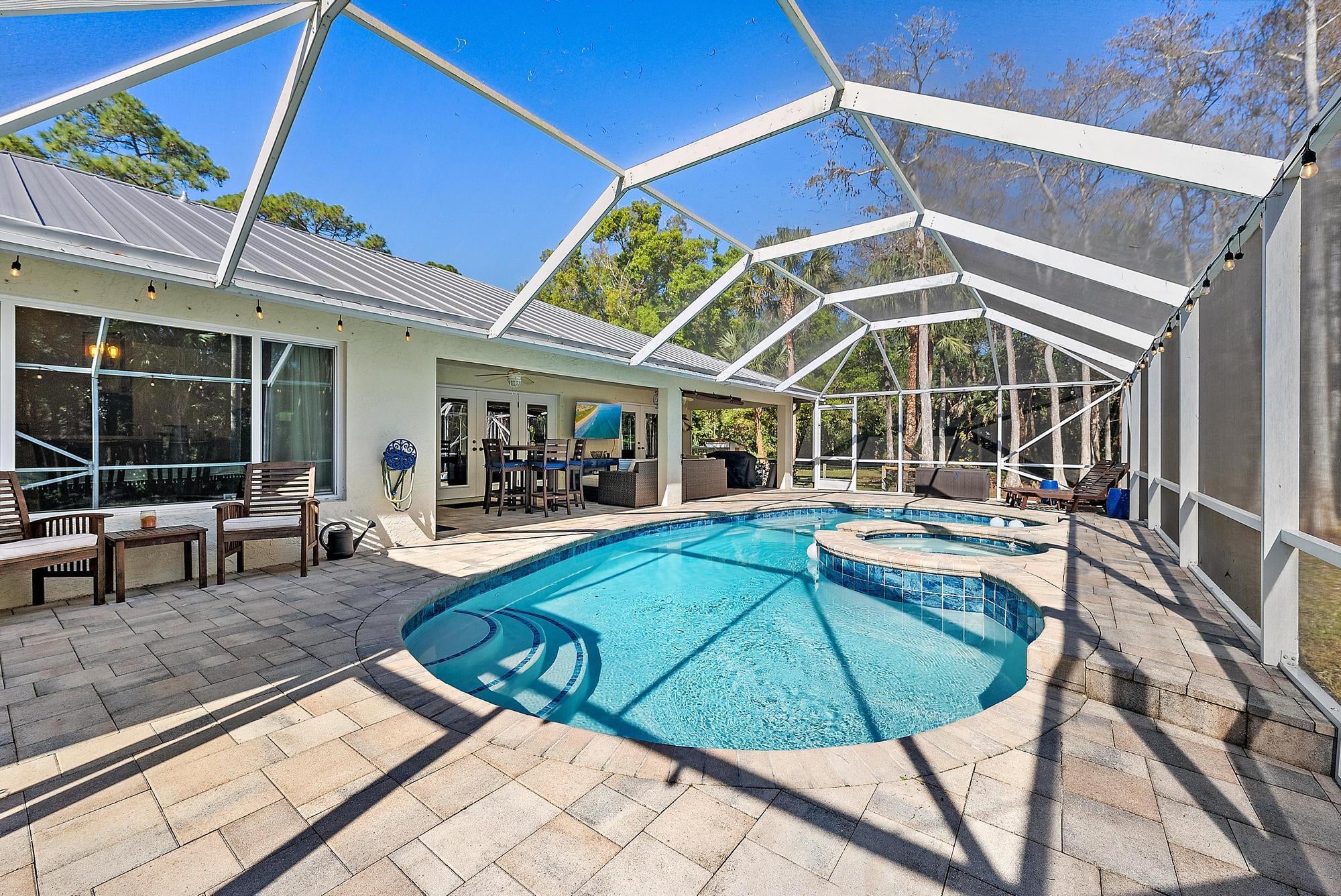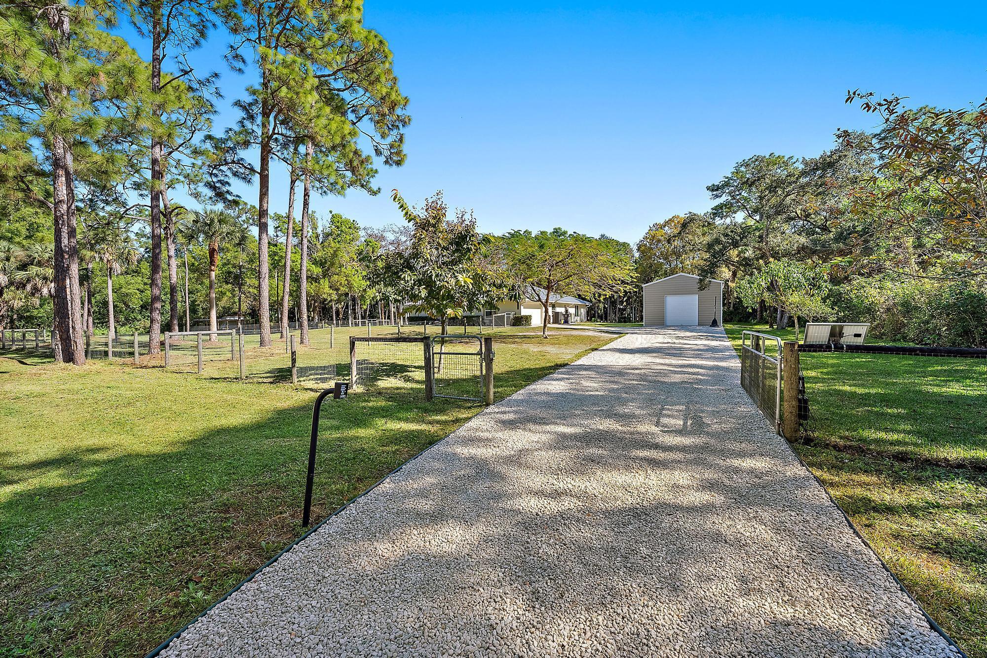 Well-maintained single-family home located in desirable Jupiter Farms. This 4-bedroom, 2.5-bath CBS home built in 2001 sits on 2.5 fully fenced acres with an electronic gated entrance. Features include a 2-car garage, currently used as an office with the garage door still in place and easily convertible back to garage use.Property offers a newer metal roof approximately 3 years old, full impact windows and doors (2020), and a pool with screened-in patio and partially covered patio. Additional improvements include a brand-new 24 x 35 metal garage/workshop completed in 2025. Large chicken coop on property will remain for new owner, 10 Hens and 1 Rooster can remain if buyer desires.Spacious lot provides ample room for parking, storage, animals, and outdoor activities. No HOA.