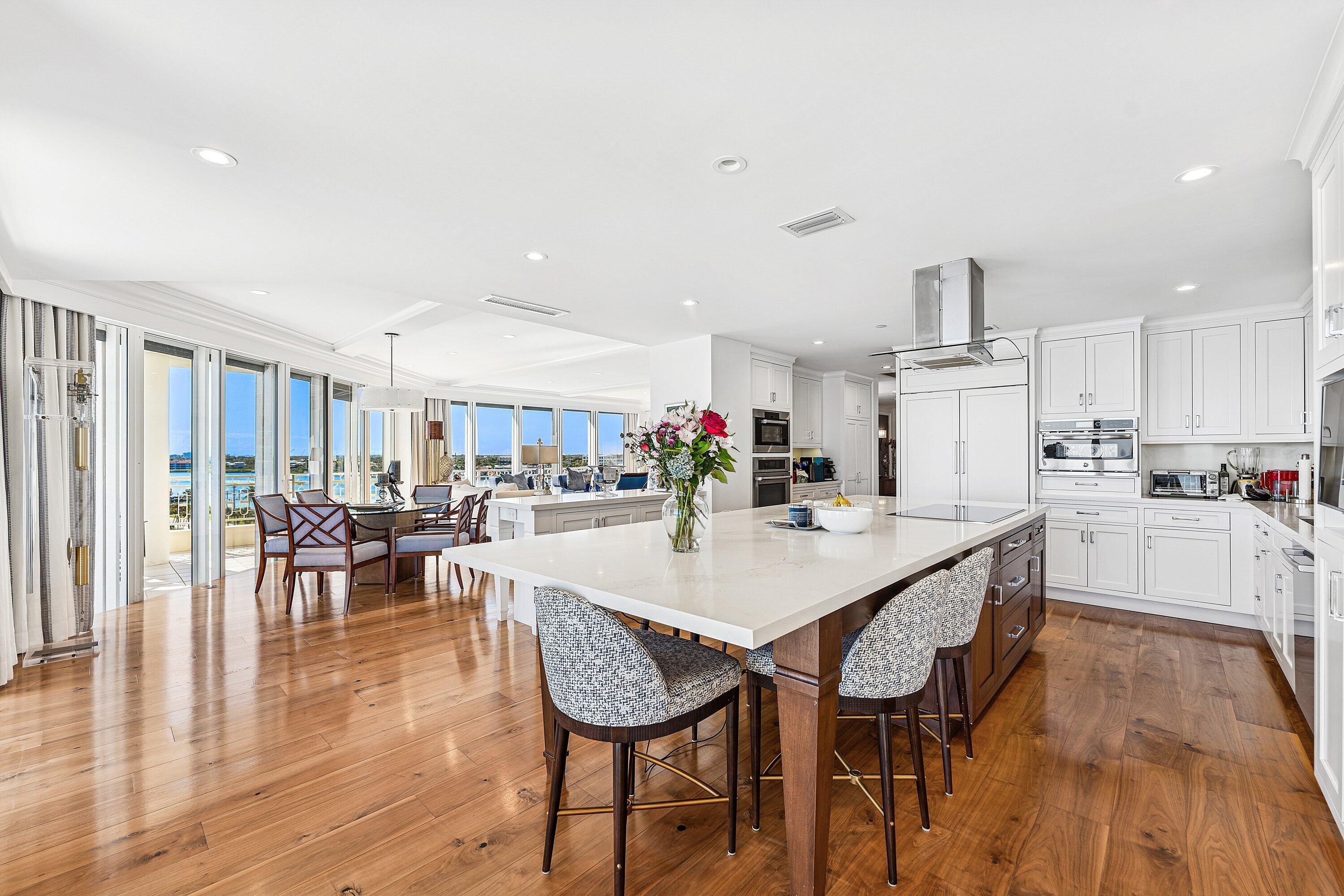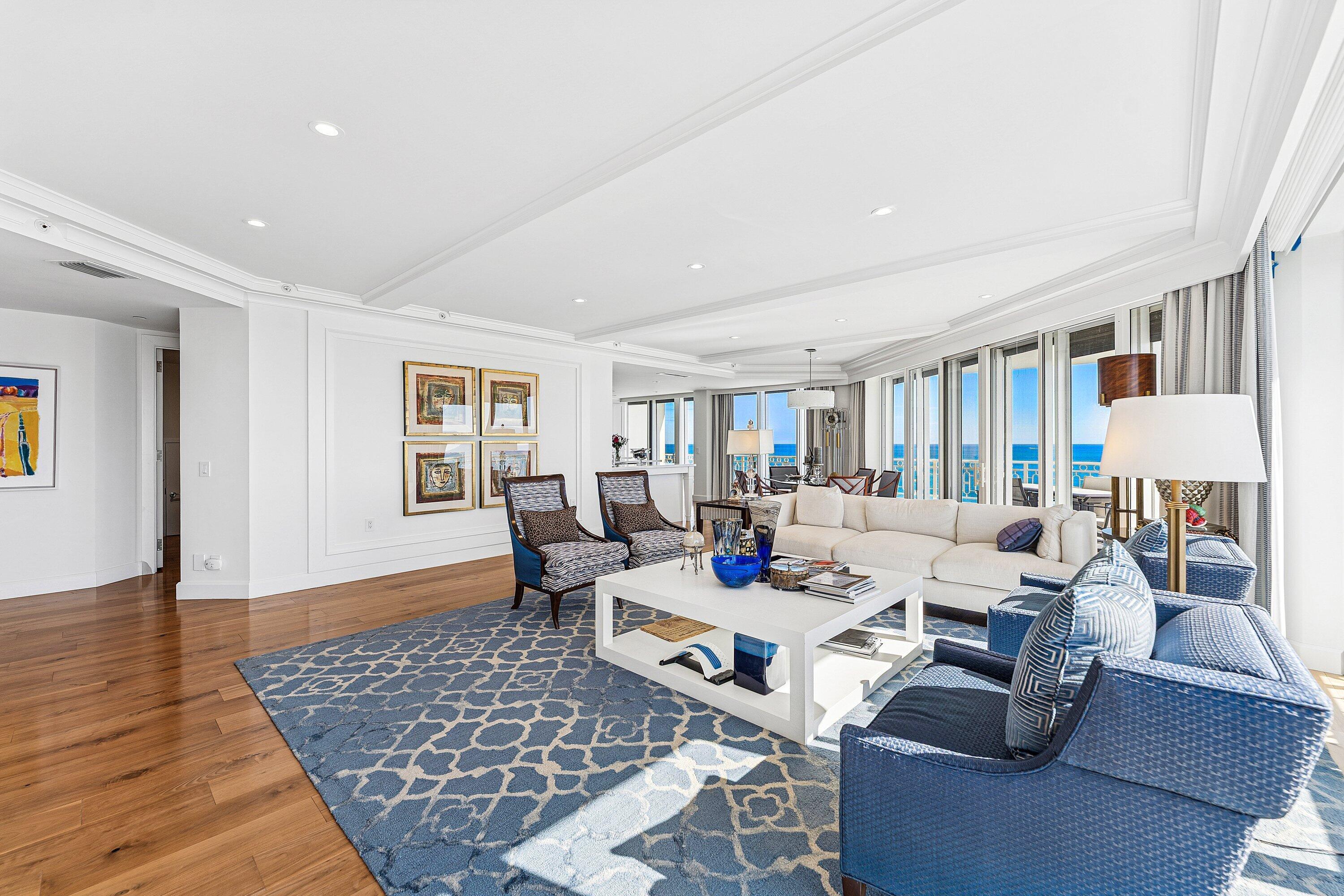 Welcome to 7 South in The Claridge, the most northern condominium building on Jupiter Island. The units run east to west giving views of the ocean and intracoastal with 7S having views south to Jupiter Lighthouse. The condominium was significantly renovated by the owner who opened up the kitchen to provide more light and better views of the beach/ocean. There are three bedrooms all with en-suite bathrooms and views of the water. The elevators are fob controlled and privately open to the owners condo. Other features are central vacuum, a sizable laundry room, trash chute and a two car air conditioned garage closest to the entry from inside. Building amenities include the pool/spa, meeting space, gym, generator, 24 hour onsite GM and manned front desk. This unit has endless views,amenities, security, and a common dock. It is perfect for seasonal or annual living that provides a relaxing environment with the space to entertain guests.