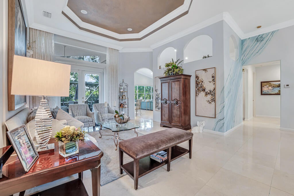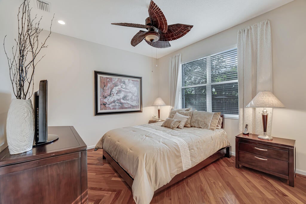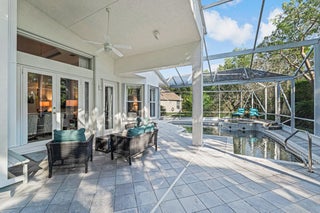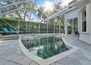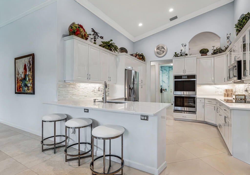 Ideally situated on a cul de sac. The lush landscaping and attention to detail throughout suggests a must see. Enjoy the serenity and luxury in your private resort -style, screened patio with a heated pool, hot tub and ample space for dining and lounging This well-maintained, sun-filled house has 3br, 2.5 Ba and a large bonus area. The recently upgraded kitchen has quartz countertops and newer appliances. There are custom, fitted closets, loads of storage, newer water heater, accordion shutters and many desirable features. Amenities galore - card rooms, billiards, pools, a full service restaurant, tennis, pickleball, bocce, & indoor racquetball,courts. A beauty salon, state of the art fitness ctr., clubs, lectures, games and entertainment enhance every day at The Shores! Welcome!