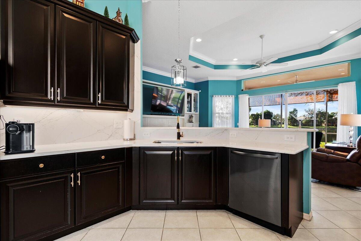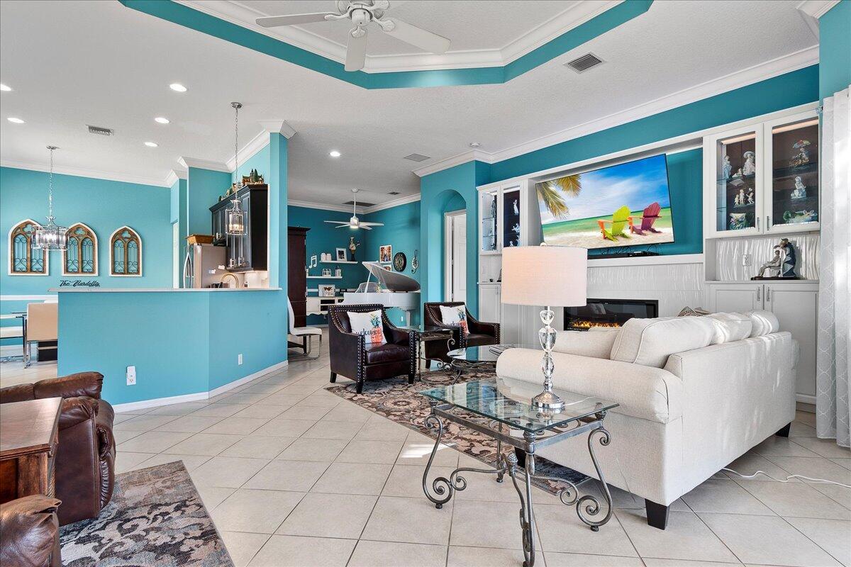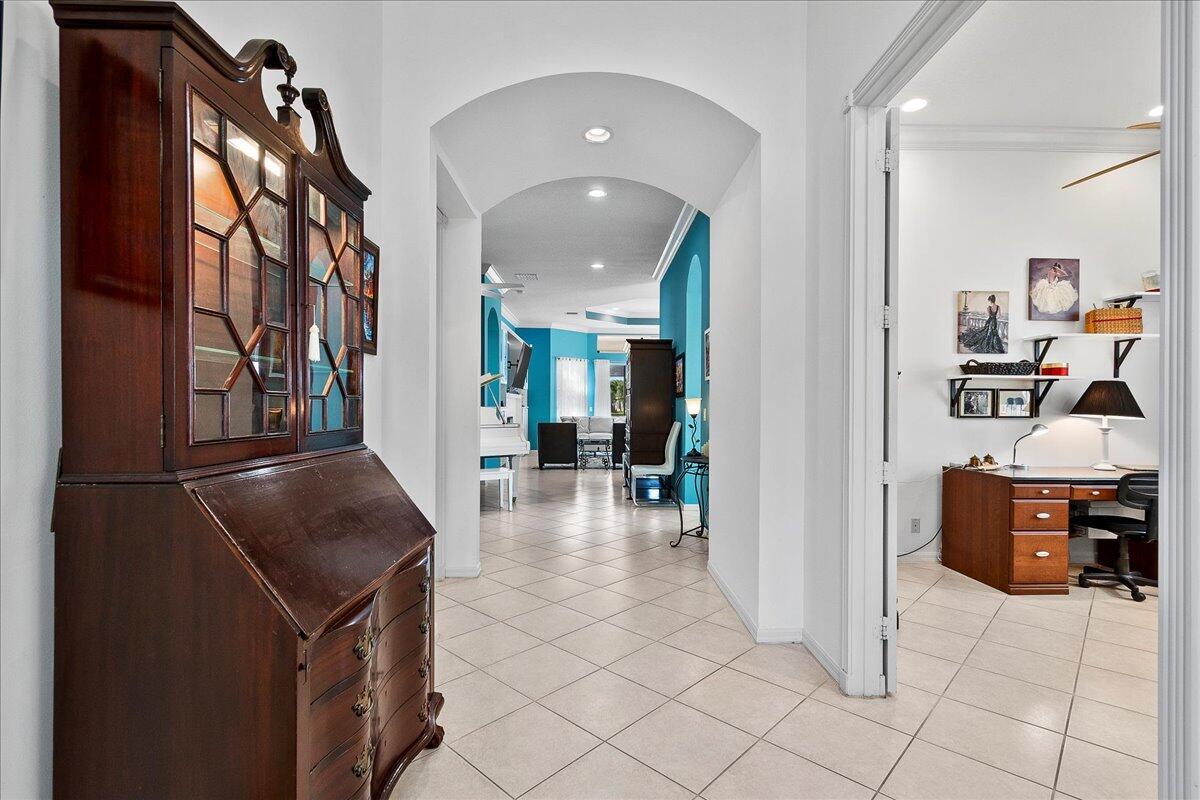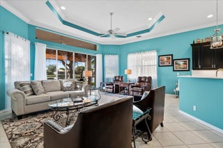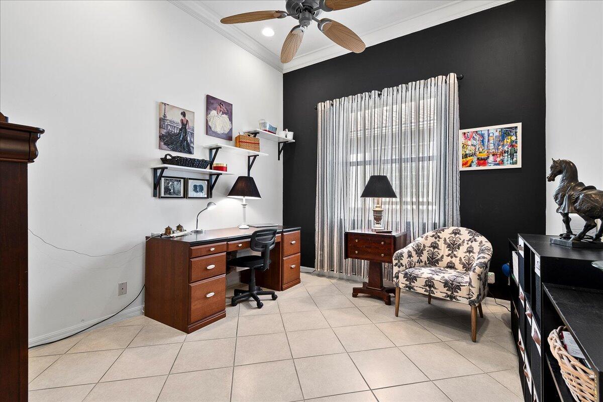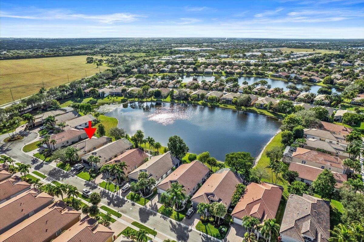 Welcome to an exceptional one-story single-family home nestled on a quiet cul-de-sac in the highly sought-after, gated 55+ community of Villaggio in the Villages of Windsor in Lake Worth, Florida. This lovely Capri model showcases a magnificent lake view and offers a seamless blend of comfort, style, and resort-inspired living. The thoughtfully designed floor plan includes a third bedroom configured as an office (no closet), ideal for working from home or pursuing personal interests. Inside, you will find custom valances and window treatments, upgraded kitchen cabinetry complemented by elegant quartz countertops, and ceiling fans throughout the home. Tile flooring enhances the main living areas, while laminate wood flooring adds warmth to the bedrooms.Custom closets provide great storage and accordion shutters provide effortless, full-home hurricane protection with the convenience of quick, secure closure and peace of mind during storm season. The spa-like primary bathroom is a true retreat, featuring dual sinks and a stunning free-standing tub. Modern upgrades include a brand-new refrigerator in 2025, a newer air-conditioning system, and a tankless water heater for instant hot water. The exterior of the home was freshly painted in December 2025, with the painting assessment already paid. Residents of Villaggio enjoy an unparalleled lifestyle with two expansive clubhouses offering indoor and outdoor cafés, resort-style indoor and outdoor pools, billiards, racquetball, tennis, bocce, pickleball, saunas, steam rooms, a beauty salon, and an impressive fitness center. Creative pursuits are welcomed in the large crafts room with ceramics and more, while card rooms and a vibrant social calendar with an on-site social director complete the experience. The community also features on-site management and a 24-hour manned security gate for peace of mind. A capital contribution is required at closing. Call now to schedule your private showing and experience South Florida living at its finest.