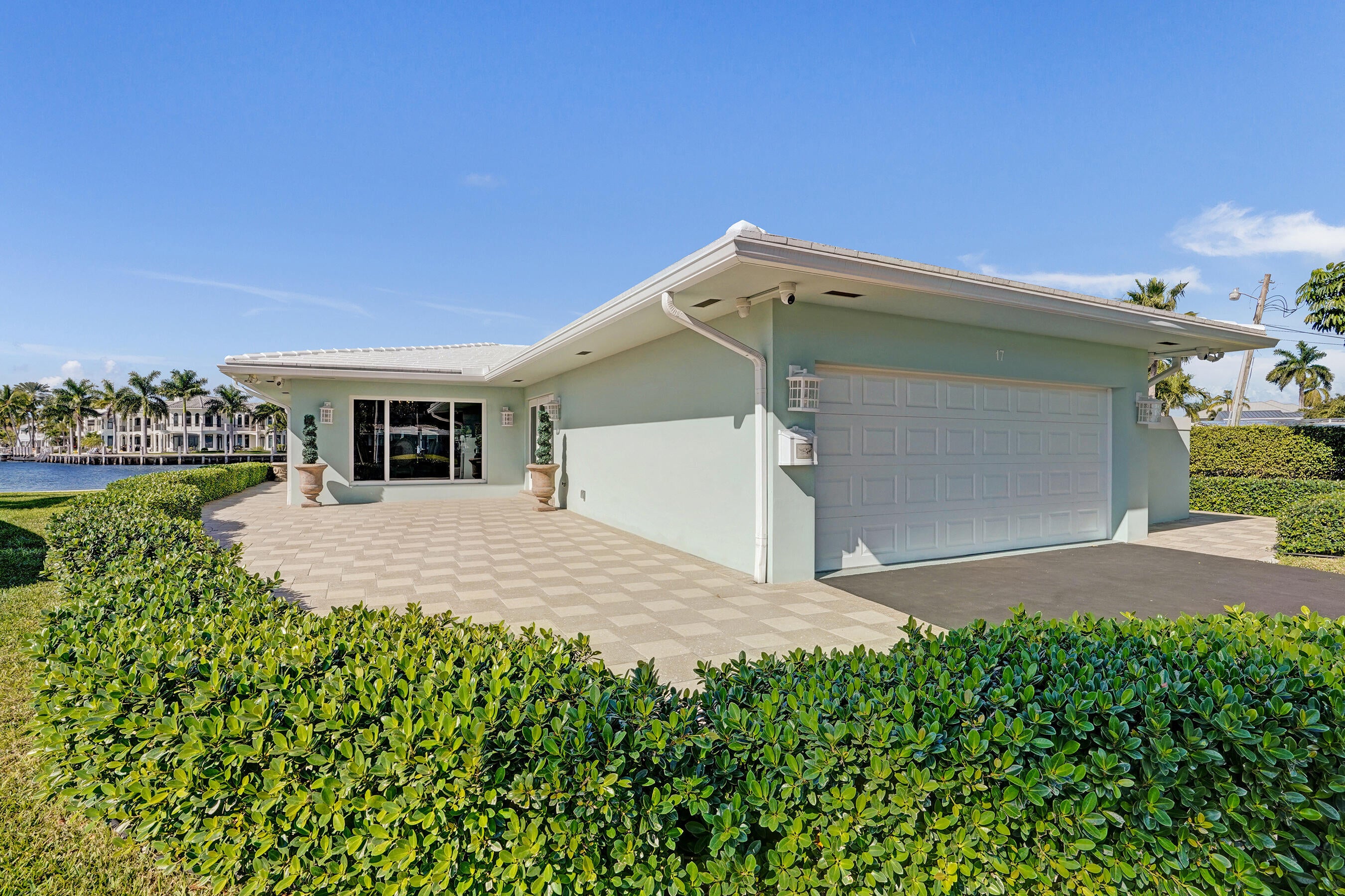 The best of both worlds: A boater's and beach lovers dream! Beautiful Intracoastal home with sweeping water views in the prestigious Palm Yacht & Beach Club, a hidden gem in desirable Lauderdale-by-the-Sea. Enjoy watching yachts parading by and stunning sunsets through floor-to-ceiling impact windows and double sliding doors with 80 foot of direct Intracoastal water frontage. This bright, open-concept residence offers 2,101 sq ft under air and features elegant marble flooring, crown molding, custom built-ins, walk-in closets, and abundant storage.The chef's kitchen is equipped with premium Miele stainless steel appliances, including a gas range, double/steam ovens, built-in coffee maker, and marble countertops. Additional highlights include a butler's pantry/home office, a full-housegenerator and tankless hot water heater. The home is impeccably kept and offers a central vacuum, Honeywell security and infrared camera system, impact windows throughout, and a newer A/C unit. The Air-conditioned 2-car garage with custom epoxy flooring and split A/C unit provides ample space for cars and toys. Incredibly, Palm Yacht & Beach club offers free dockage in it's own private marina for boats with a minimum of 15 feet and a maximum of 50 feet, a gorgeous oceanfront clubhouse with resort style pool and kitchen for entertaining as well as private beach access. Restaurants and Shopping in popular Lauderdale-by-the-Sea and Pompano Beach are just a few minutes away. This is truly South Florida living at its best with both ocean and Intracoastal access in a beautiful and tranquil 55+ community.