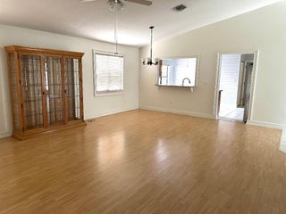 :Welcome home to your single-story home with double garage on a large corner lot in Atlantic National @ Lacuna. Live in a golf community with no membership fees, all aged community and a 24-hour manned security gate. The open floor plan features split bedrooms and a third bedroom that serves as a den/office. Light laminate flooring flows throughout, with tile in the kitchen and baths. The updated kitchen has stainless steel cabinetry and granite countertops, plus recessed lighting. Relax on the fully screened, covered patio overlooking a serene garden view.