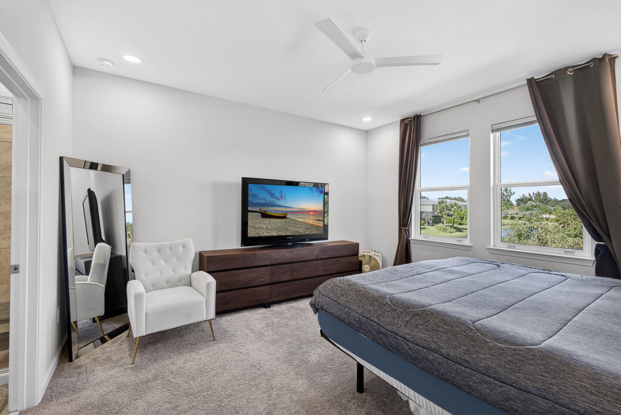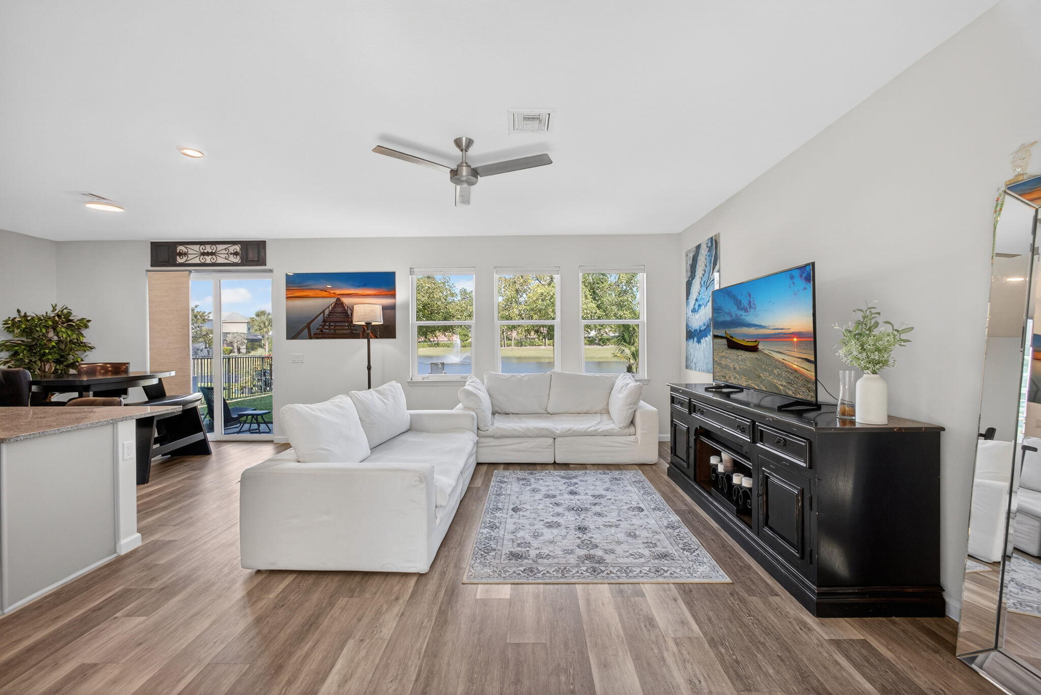 This beautifully maintained 3-bedroom, 2.5-bath home offers tranquil lake views from most rooms and modern style with energy efficient comfort. Built in 2020, this light/bright residence features an open-concept kitchen and living area, a flexible loft that makes a great office or playroom, and 3 spacious bedrooms upstairs. The main level showcases luxury vinyl flooring and a well-appointed kitchen with granite countertops and upgraded stainless steel appliances. Upgraded lighting and fans throughout. Hurricane impact windows and doors throughout for peace of mind all year long. Step outside to a lush backyard with a peaceful lake view. 2-car garage. Fantastic location just minutes from I-95, downtown Lake Worth, and the Lake Worth Pier and beaches. Low HOA inc. landscaping & irrigation.