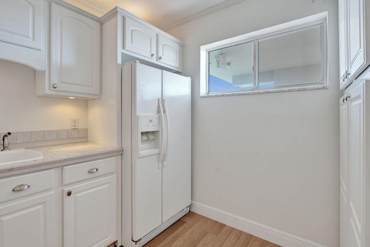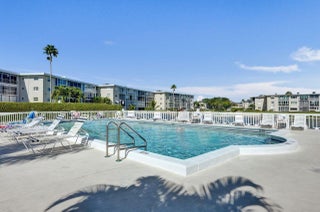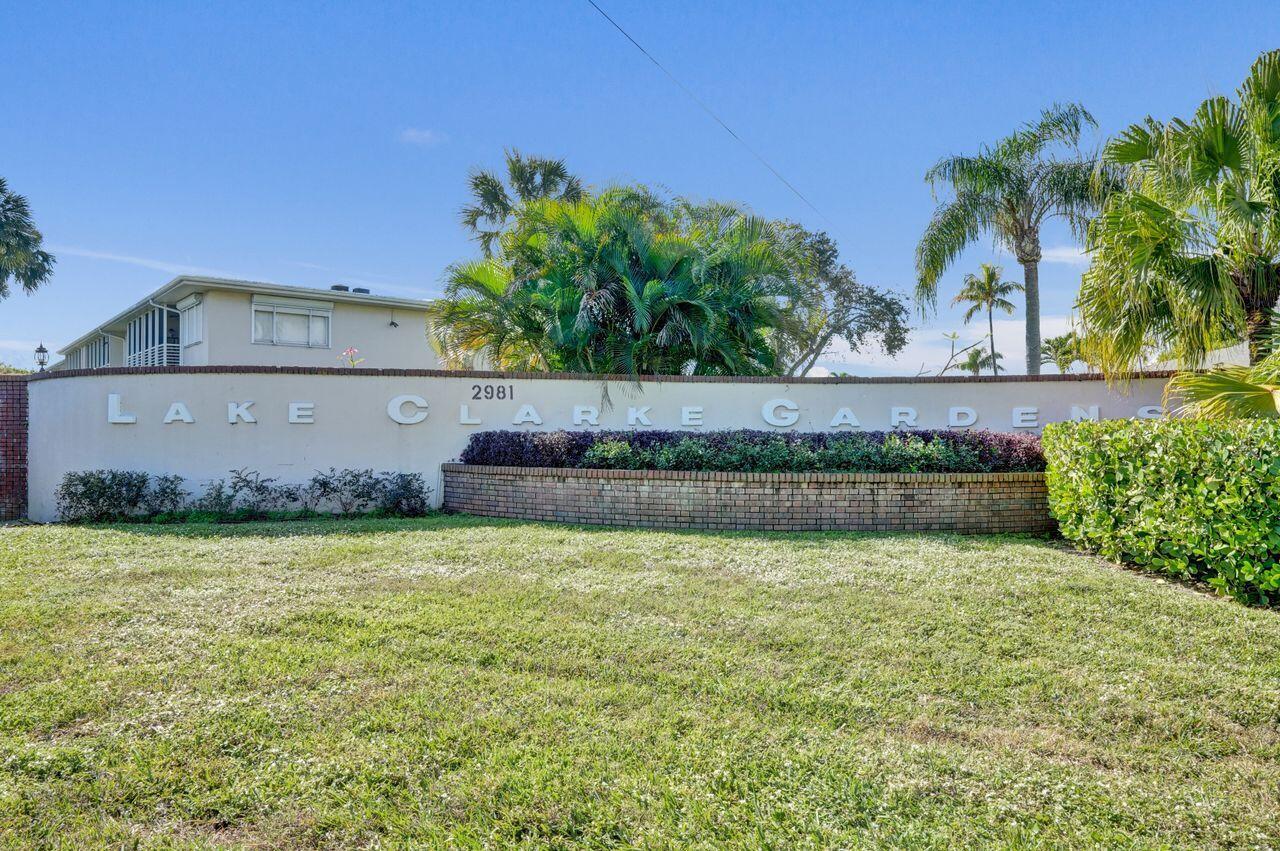 Top floor, corner 2-bedroom, 2-bath condo in the 55+ Lake Clarke Gardens community with lake and pool views. Enjoy a private screened-in balcony, ceramic tile flooring in main living areas, and wood laminate flooring in the primary bedroom with a walk-in closet. Updated bathrooms and elevator access add everyday convenience. Amenities include two pools, clubhouse, fitness center, library, and putting green. Ideally located near shopping, dining, and entertainment, offering an active and social Florida lifestyle.
