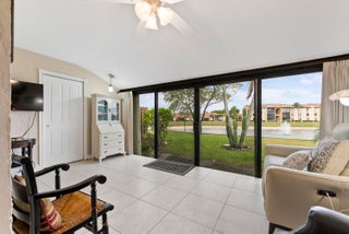 Welcome to your dream home in the heart of South Florida's vibrant 55+ community, Pine Ridge North in Greenacres! This well-maintained 2-bedroom, 2-bath villa offers over 1,300 sq. ft. of comfortable living space with breathtaking lake views. Begin your day with coffee on the porch The villa boasts a bright eat-in kitchen with white appliances and cabinetry, creating an inviting atmosphere. The open-concept living and dining areas are ideal for entertaining. Enjoy the convenience of an in-unit washer and dryer. Your dedicated parking spot is right in front of the home, leading to a beautifully tiled entryway. Experience the active lifestyle that Pine Ridge North has to offer!