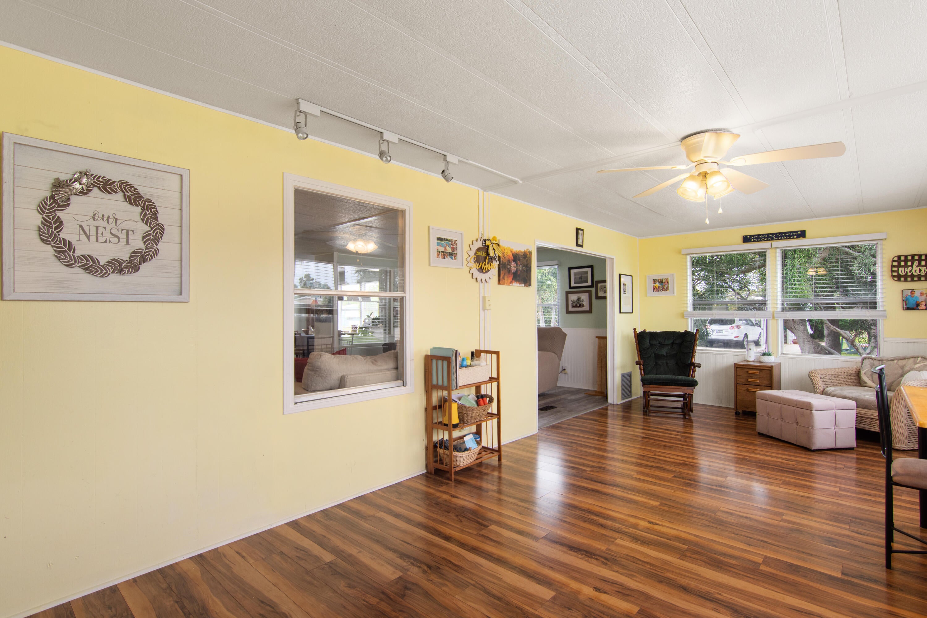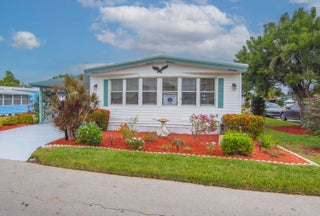 Welcome to 452 NE Pinelake Village Blvd, Jensen Beach, FL - a charming double-wide home nestled in the heart of a vibrant 55+ community just minutes from the ocean. This large, light and bright well-maintained home features a newer metal roof in 2020, AC Unit 2019, new hot water heater, vinyl flooring, newer cordless blinds, newer stainless steel kitchen sink, extra wide door openings for wheelchair accessibility, new skirting, large spacious screen room, and a nice shed/workshop with washer and dryer. Driveway and house trim has recently been painted. This home comes partially furnished and includes a chest freezer and four smart TVs. Lot rent is $765 per month and includes cable, trash removal, recycling and all amenities of the clubhouse. HOA is voluntary and is only $10. per year!