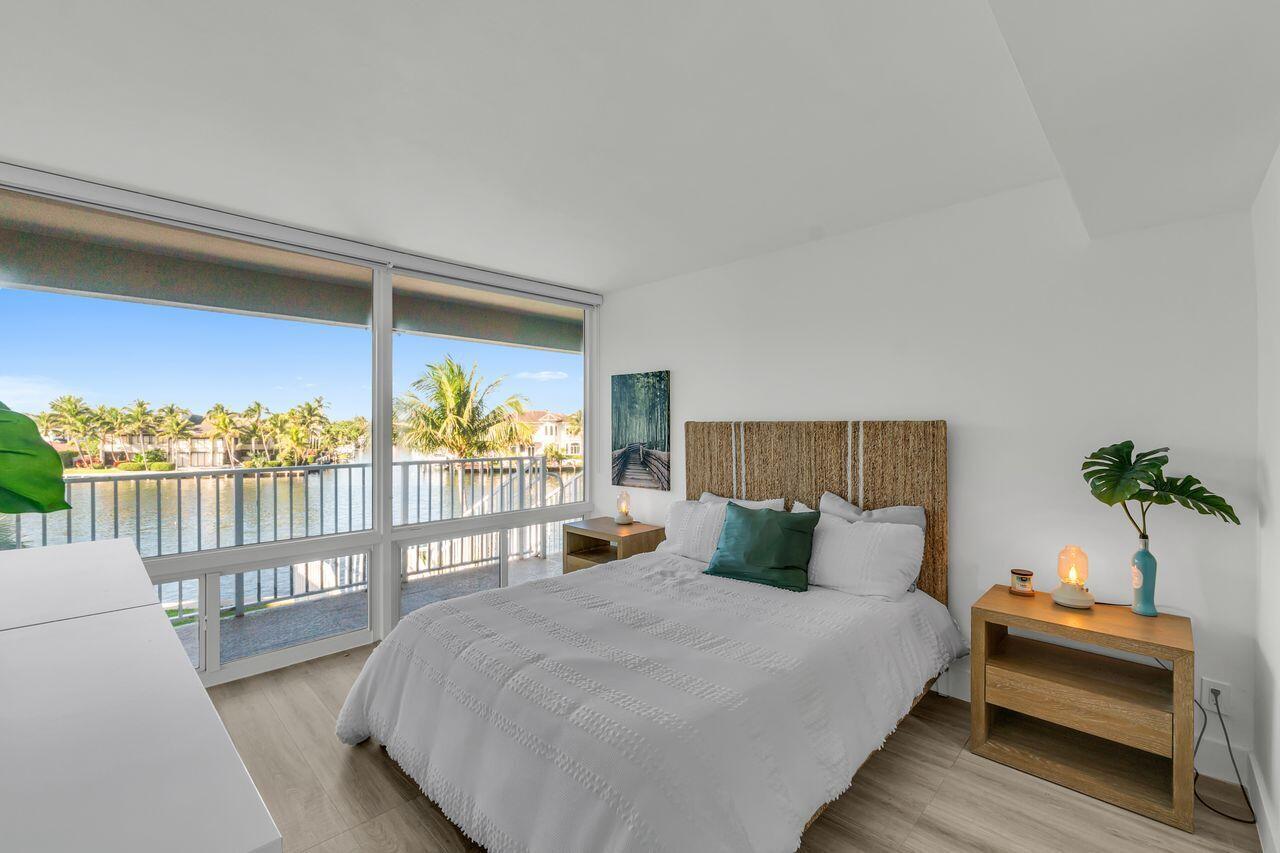 Experience waterfront living at its finest in this beautifully renovated third-floor corner residence with sweeping views of the Intracoastal, golf course, and ocean. Modern upgrades include handleless kitchen cabinets, luxury vinyl flooring and custom zebra shades throughout. The guest bedroom, currently open as a den, can easily be converted back into a private bedroom with en-suite bath. Located in the desirable Sea Club co-op with no land lease, where residents enjoy a private beach and cabana, heated saltwater pool, 9-hole pitch-and-putt golf course, marina (short waitlist), putting green, and bocce ball. This move-in-ready residence may be purchased fully furnished and turnkey for added convenience, offering a rare opportunity for relaxed coastal living