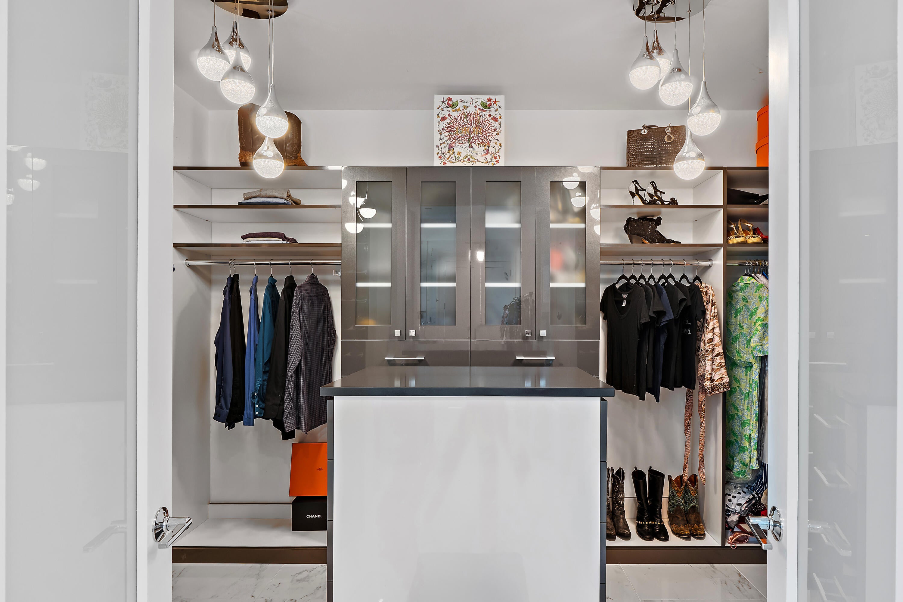 Bar, Built-in Shelves, Closet Cabinets, Elevator, Entry Lvl Lvng Area, Foyer, Cook Island, Pantry, Split Bedroom, Volume Ceiling, Walk-in Closet