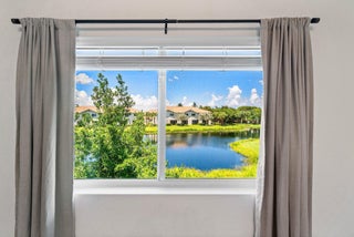 This move-in-ready waterfront townhome in gated community features a low HOA of $235/month. The upgraded kitchen includes sleek finishes and stainless steel appliances and opens to a bright living area with wood-look porcelain tile flooring and natural light throughout.The primary suite offers a renovated bathroom with a walk-in shower, designer tile, and premium fixtures. Secondary bedrooms are well sized with ample storage. In-unit washer and dryer included. Private patio overlooks tranquil water and fountain views. Conveniently located near beaches, shopping, dining, and major highways.