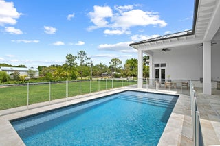 The Jupiter Farms market has never seen a custom home like this before. Thoughtfully designed with extensive upgrades throughout, this just-completed new construction offers truly turnkey living with nothing left to do. This is not a typical builder-grade new construction; the home was custom-built with elevated materials, systems, and finishes throughout.Set on 1.25 acres on one of Jupiter Farms' most desirable fully paved streets, this residence is ideally located toward the front of the community--offering an easy commute without being tucked deep into the Farms. The sellers thoughtfully elevated the home, resulting in a high-and-dry build designed for peace of mind.The property combines modern luxury with privacy and functionality, featuring soaring 16-foot ceilings, wide-plank oak wood floors, custom cabinetry, wood ceiling details, and a chef's kitchen equipped with a GE Monogram appliance package and custom hood. The primary suite includes a custom walk-in closet and spa-inspired bath with soaking tub, oversized shower, Kohler fixtures, and full marble finishes. All bathrooms throughout the home are finished in marble. Resort-style outdoor living includes a heated saltwater pool with marble paver deck, covered entertaining areas, fenced pool, full Clusia hedge for privacy, and an outdoor kitchen with gas grill and refrigerator. Additional features include a 1,200+ sq ft oversized 3+ car garage, energy efficient impact windows, two-zone A/C, whole-house reverse osmosis system, 500-gallon propane tank, backup generator, Ring security system, exterior lighting, electric shades in main living areas, plantation shutters throughout, & multiple Wi-Fi access points. Conveniently located just minutes to I-95 and steps from Riverbend Park with scenic trails and kayaking.