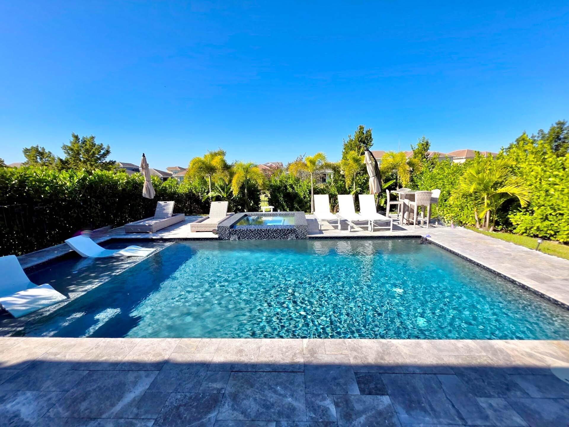 This breathtaking 2023 GL Home in Arden is one of a kind, a spacious 5 bedroom, 4.5 bath residence with a loft and den, offering both luxury and versatility. This home features a private pool and hot tub, and a rare first-floor bedroom with a full bath, closet, and private entrance, ideal for guests, multi-generational living, or a private office. The open-concept design showcases a gourmet kitchen complete with a built-in gas range, dual ovens, and a large island overlooking the backyard oasis. Upstairs, luxury vinyl plank flooring runs throughout, including the expansive primary suite with pool views and a spa-like bathroom with both a tub and separate shower. Enjoy indoor-outdoor living with the screened-in lanai and retractable electric screen, while the heated saltwater pool withsun shelf and spa sets the stage for unforgettable evenings. This home faces east and west for stunning sunrise and sunset views. Additional highlights include porcelain tile in main areas, a dedicated den/home office, and energy-efficient features. Located in the family-friendly community of Arden, offering new amenities like Saddle View Elementary, and a new amenity center with lap pool, pickleball, skate park, and dog park.