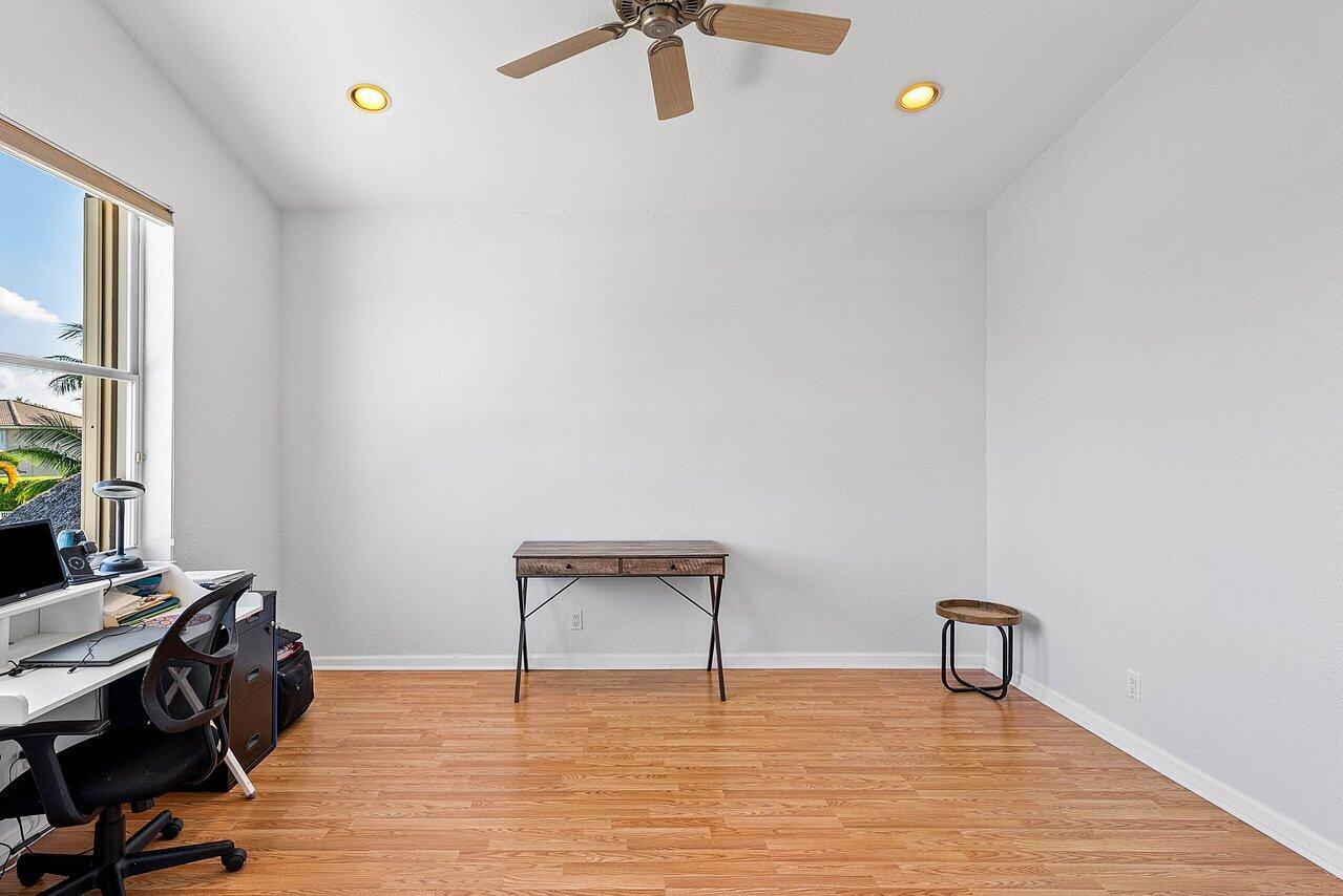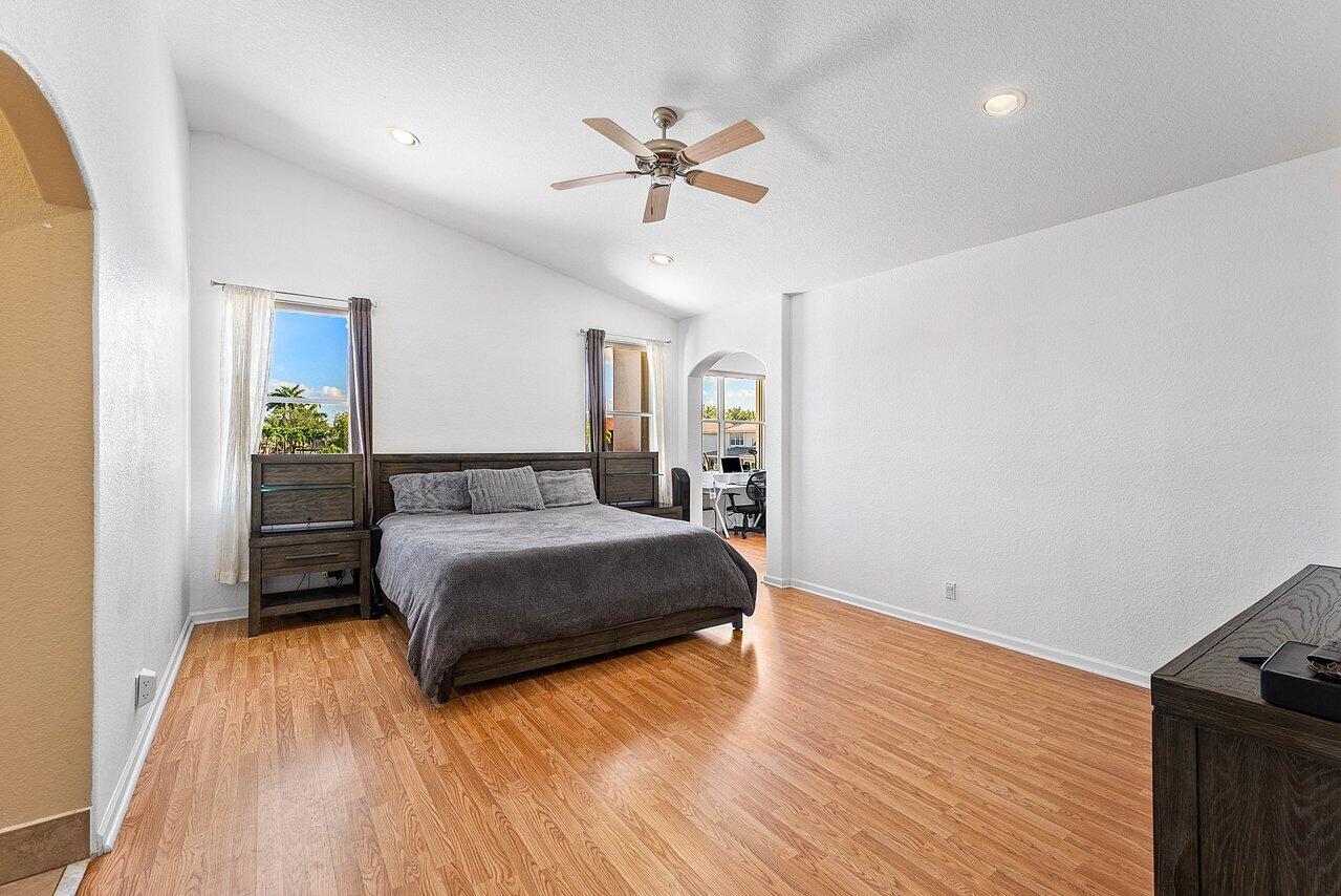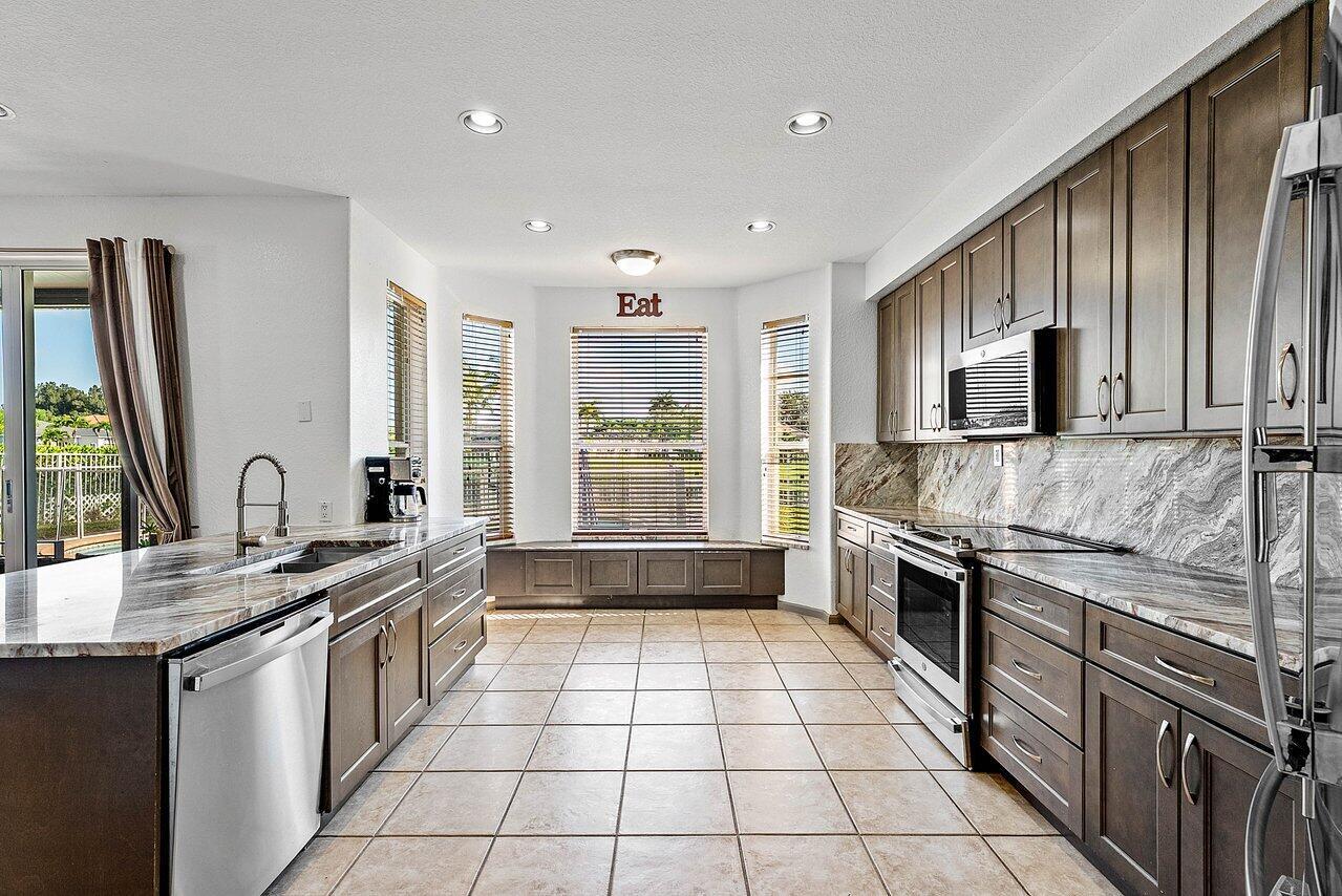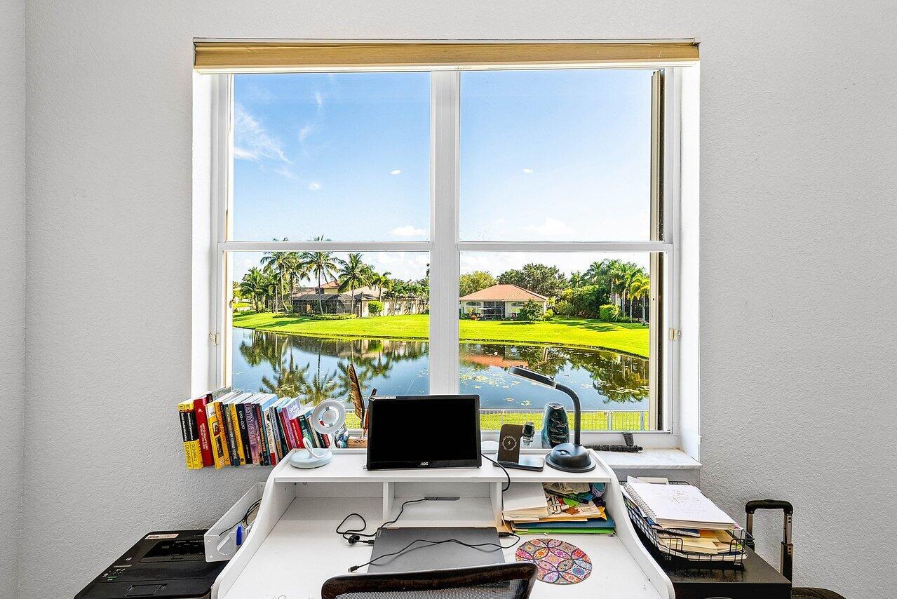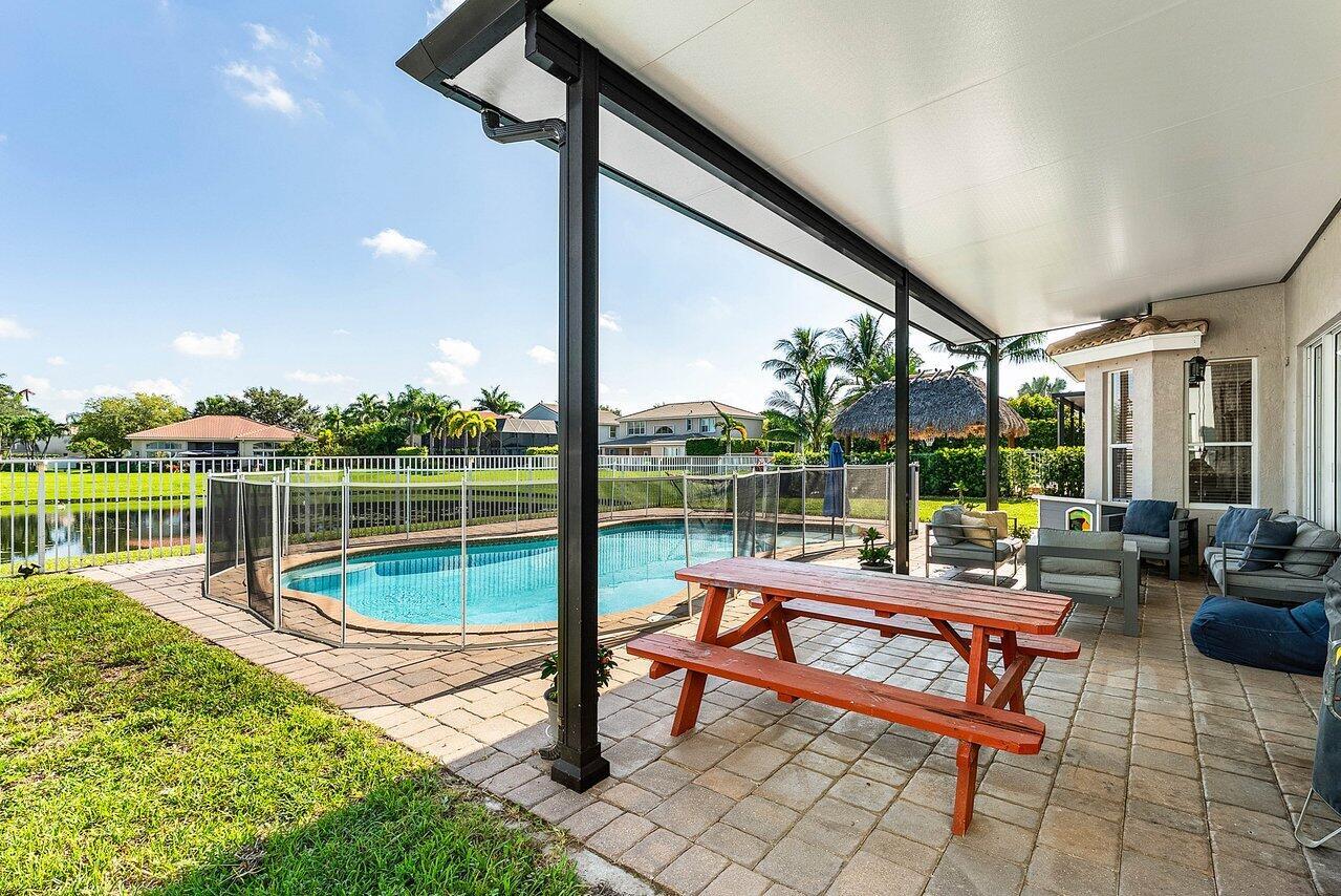 This impeccably Willow model offers 4 bedrooms plus a loft and 3 full baths, ideally positioned on a premium lakefront lot showcasing breathtaking long-lake views and unforgettable sunsets. Designed for both comfort and entertaining, the private outdoor retreat features a covered patio, pool, and fully fenced backyard, creating a true resort-style setting.Inside, soaring vaulted ceilings, expansive windows, and abundant natural light highlight the home's open and spacious layout. The enhanced design provides an expansive family room, oversized bedrooms, and exceptionally generous closet space throughout.The chef's kitchen is a complete with newer stainless-steel appliances, a double pantry, eat-in breakfast area, and ample cabinetry and counter space perfect for everyday living.The primary suite serves as a tranquil retreat, offering an optional office, nursery, or sitting area, double-door walk-in closet, and a spacious bath with peaceful lake views. Additional features include accordion hurricane shutters on second floor windows, a downstairs guest bedroom with full bath, and a two-car garage. Located in Shadow Creek at Winston Trails, one of western Lake Worth's premier gated communities, residents enjoy a vibrant lifestyle paired with exceptional resort-style amenities. The Winston Trails community comprises 1,891 single-family homes and offers something for everyone, from recreation to relaxation. Amenities include an Olympic-sized community pool, tennis and pickleball courts, two playgrounds, a driving range, and the Winston Trails public golf course. Residents also enjoy the convenience of a clubhouse with a restaurant and tiki bar, making it easy to gather, dine, and unwind close to home.