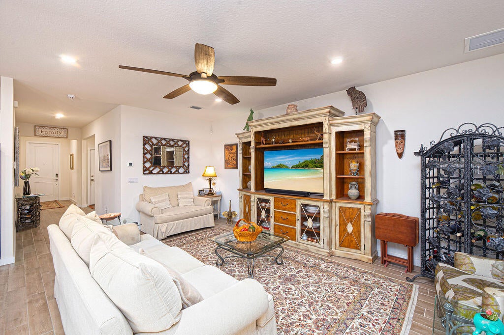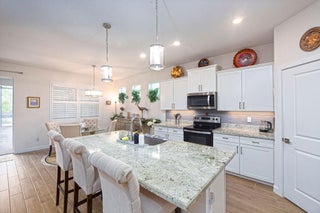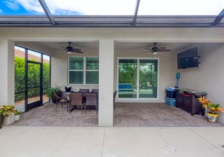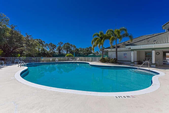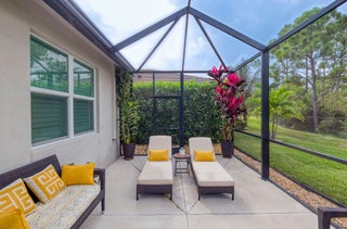 Come see this beautiful 5 year old Jensen Village home located on a cul de sac and view the 10 person spa with jet action that can be heated and cooled under a spacious lanai. The home features 4 bedroom 2 bathrooms with tile throughout as well as a 2 car garage. It is thoughtfully designed with over 2000 square feet of air conditioned living space. The home is nicely landscaped with clusia bushes on both sides and a private view of the preserve. It has numerous upgrades which includes impact windows, a screened front entrance, a water softening & filtering system, an alarm system with cameras and an enhanced air conditioning system. The community is gated and has 3 heated pools, numerous tennis courts, a community room as well as a public golf course on premises which includes full bar