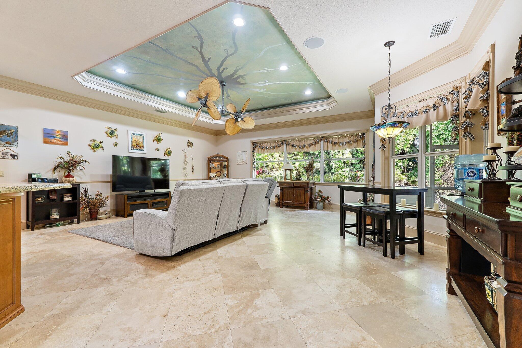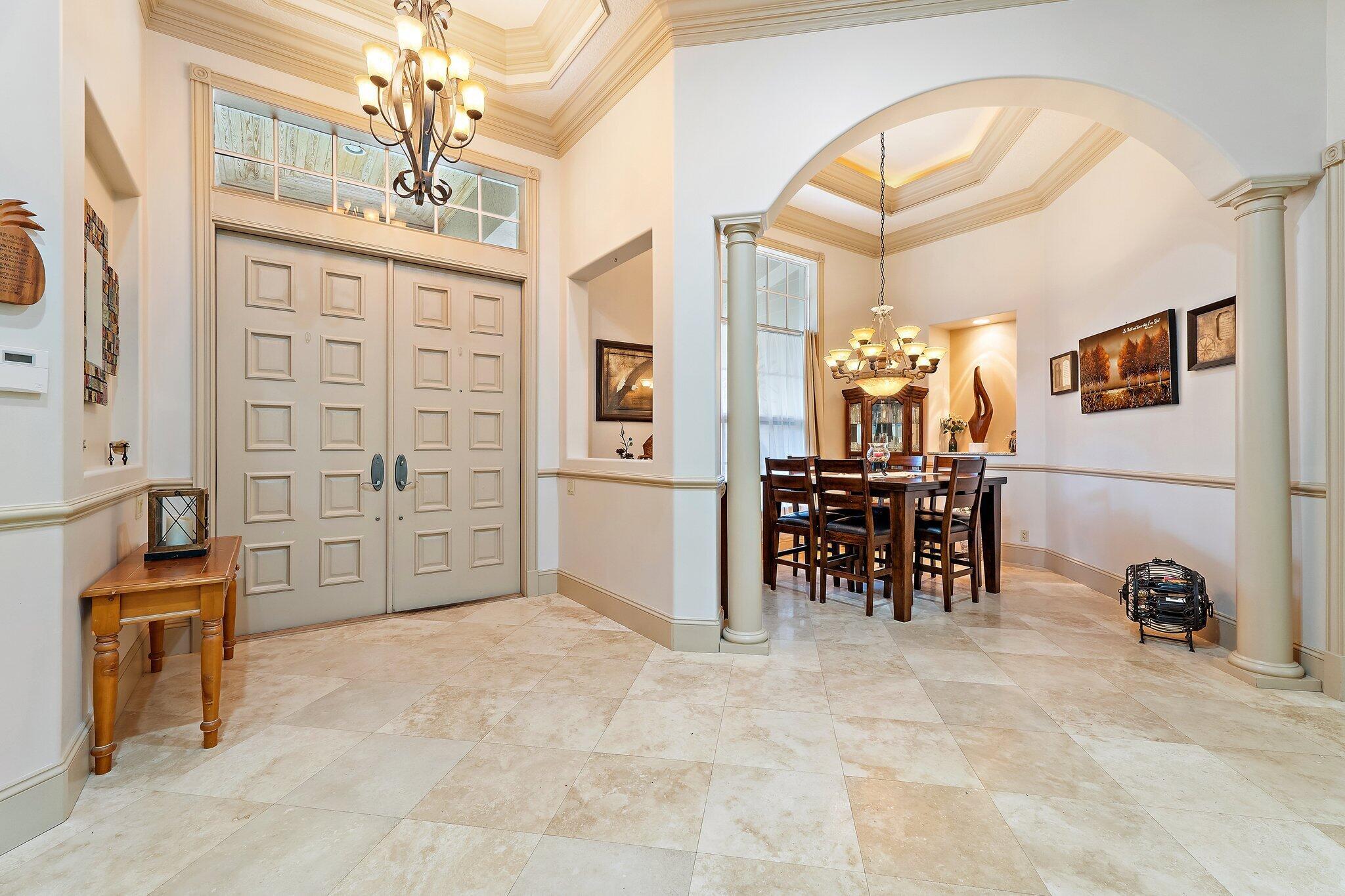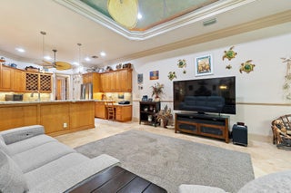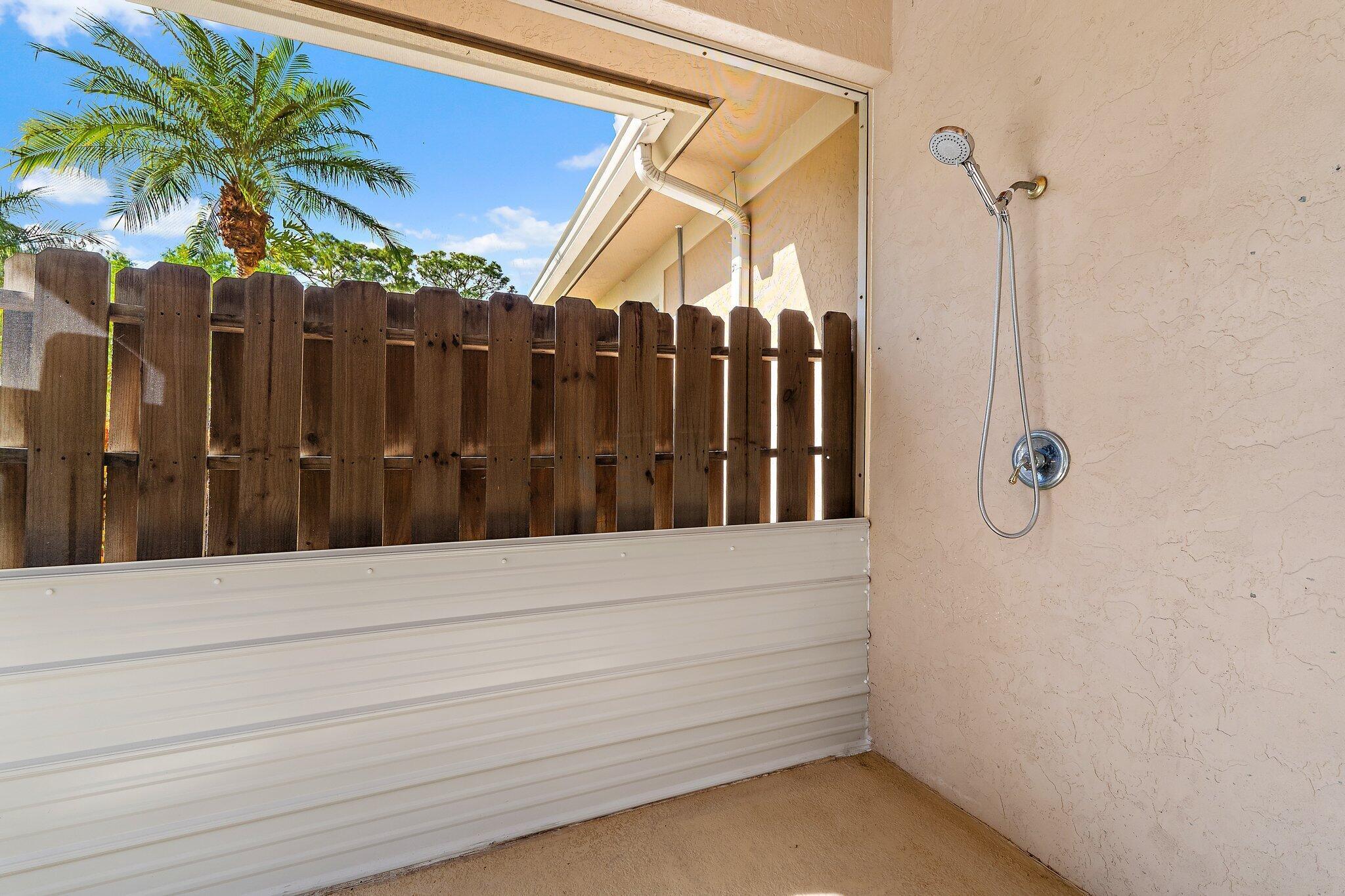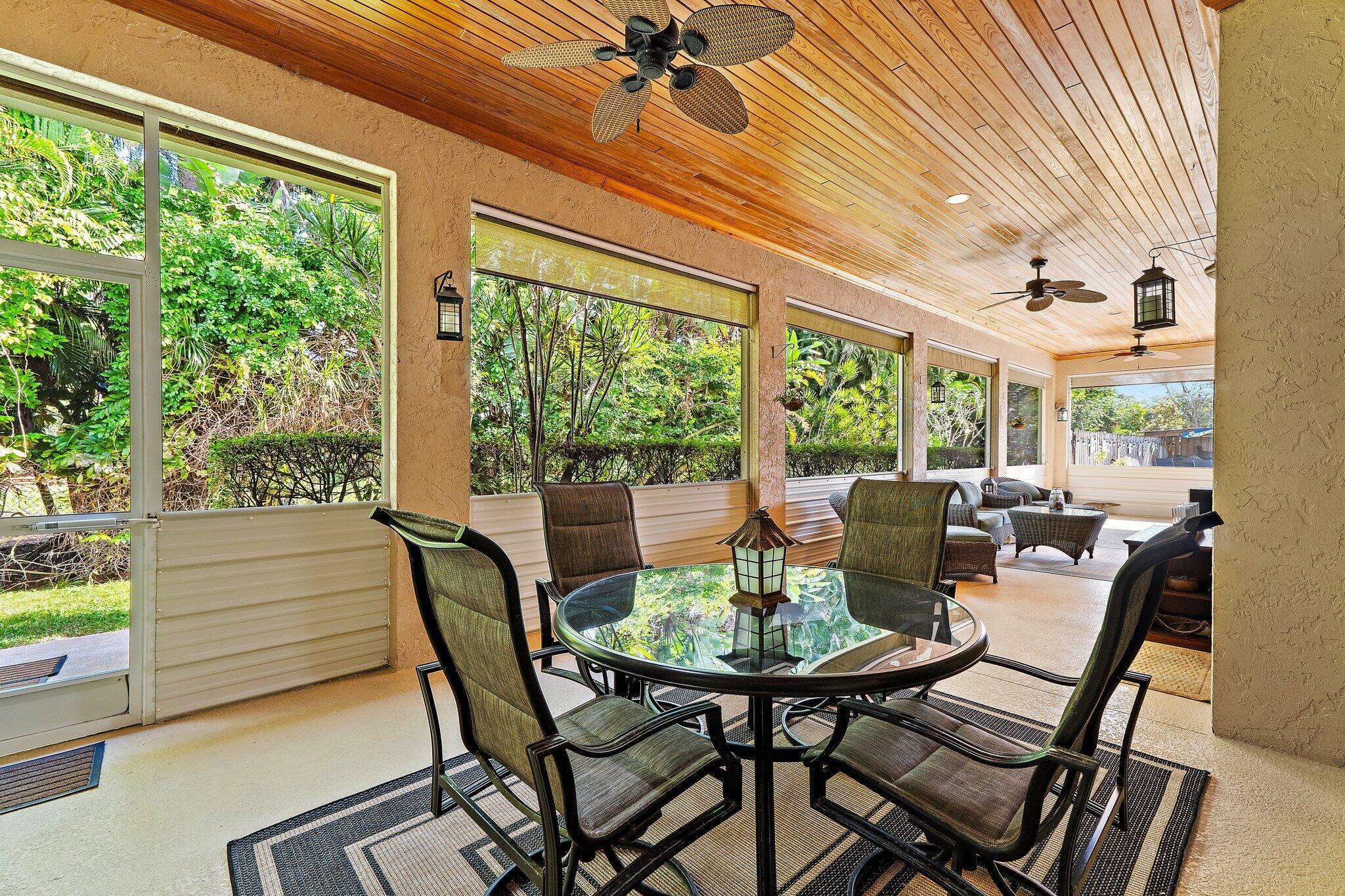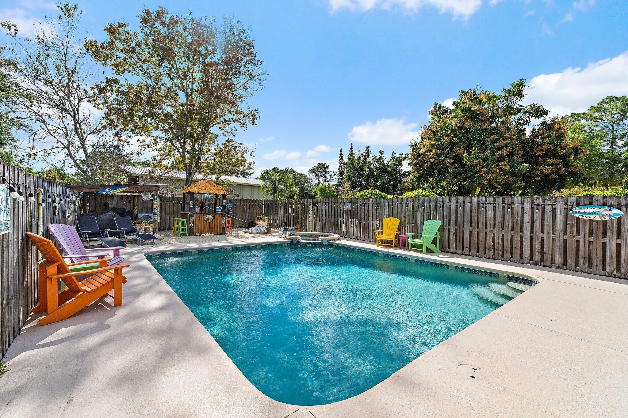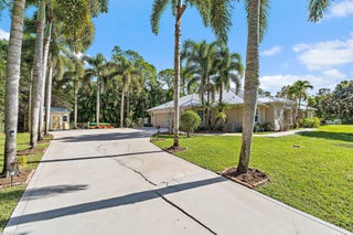 Built solid with concrete block construction, this Jupiter Farms pool home with a detached pole shed offers a rare blend of privacy, functionality, and comfort on just under an acre with no HOA. The well-designed floor plan features 12-foot ceilings, 4 bedrooms, 2.5 bathrooms, and a true split layout for added privacy. The large kitchen offers generous cabinet storage and prep space, flowing into the main living area and out to a screened-in patio ideal for year-round use.A heated saltwater pool highlights the backyard, complemented by new sod, fresh landscaping, and a full irrigation system with Wi-Fi control. The 48x25x16 pole shed, added in 2022, includes 50 amp RV service and 110/120V outlets, offering excellent flexibility for storage, equipment, or recreational use. A separate10x12 she-shed, built in late 2022, is insulated and outfitted with a window A/C unit, making it ideal for hobbies, creative space, or a quiet retreat. Additional highlights include full impact windows and doors, a new roof (2022), new HVAC system, and a 2022 water heater. A buried 500-gallon propane tank powers the 26kW Kohler whole house generator, providing backup security and peace of mind. The pool heater is electric. Situated on a paved corner lot and fully fenced, the property allows room for RVs, boats, or future expansion. With a strong foundation and valuable systems in place, this home offers long-term potential in one of Jupiter's most desirable acreage neighborhoods.