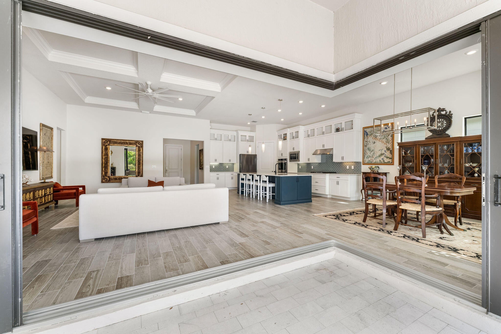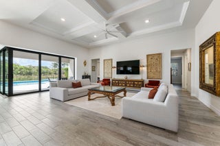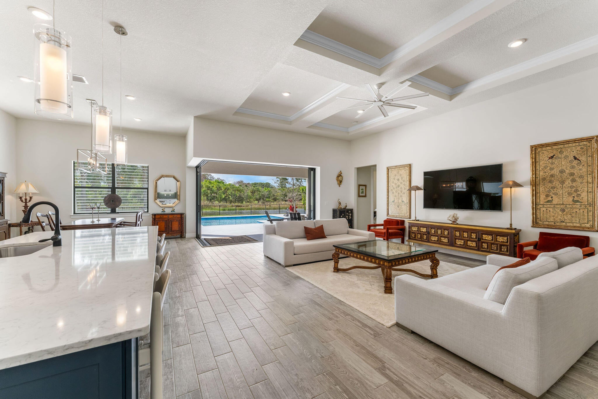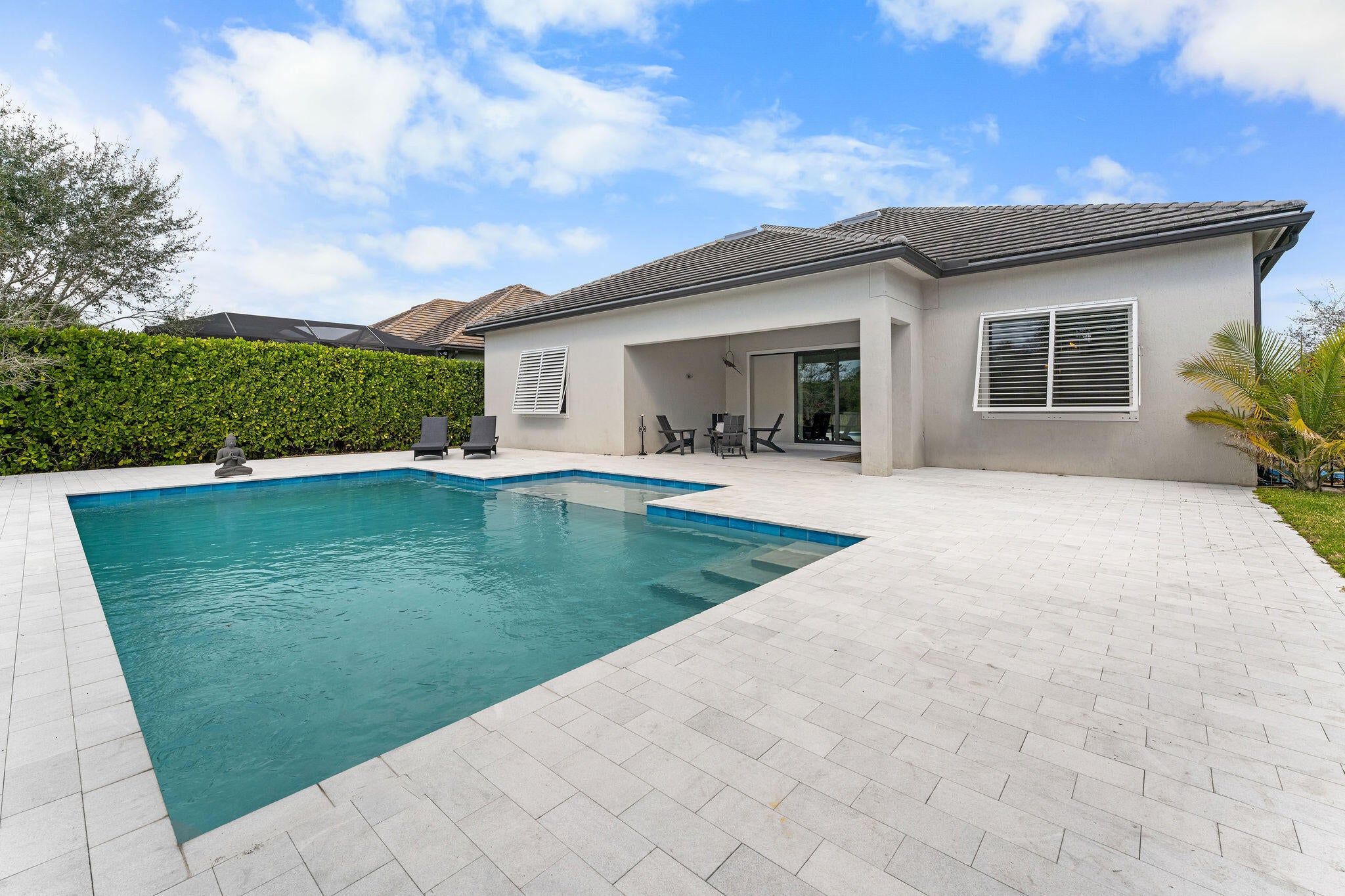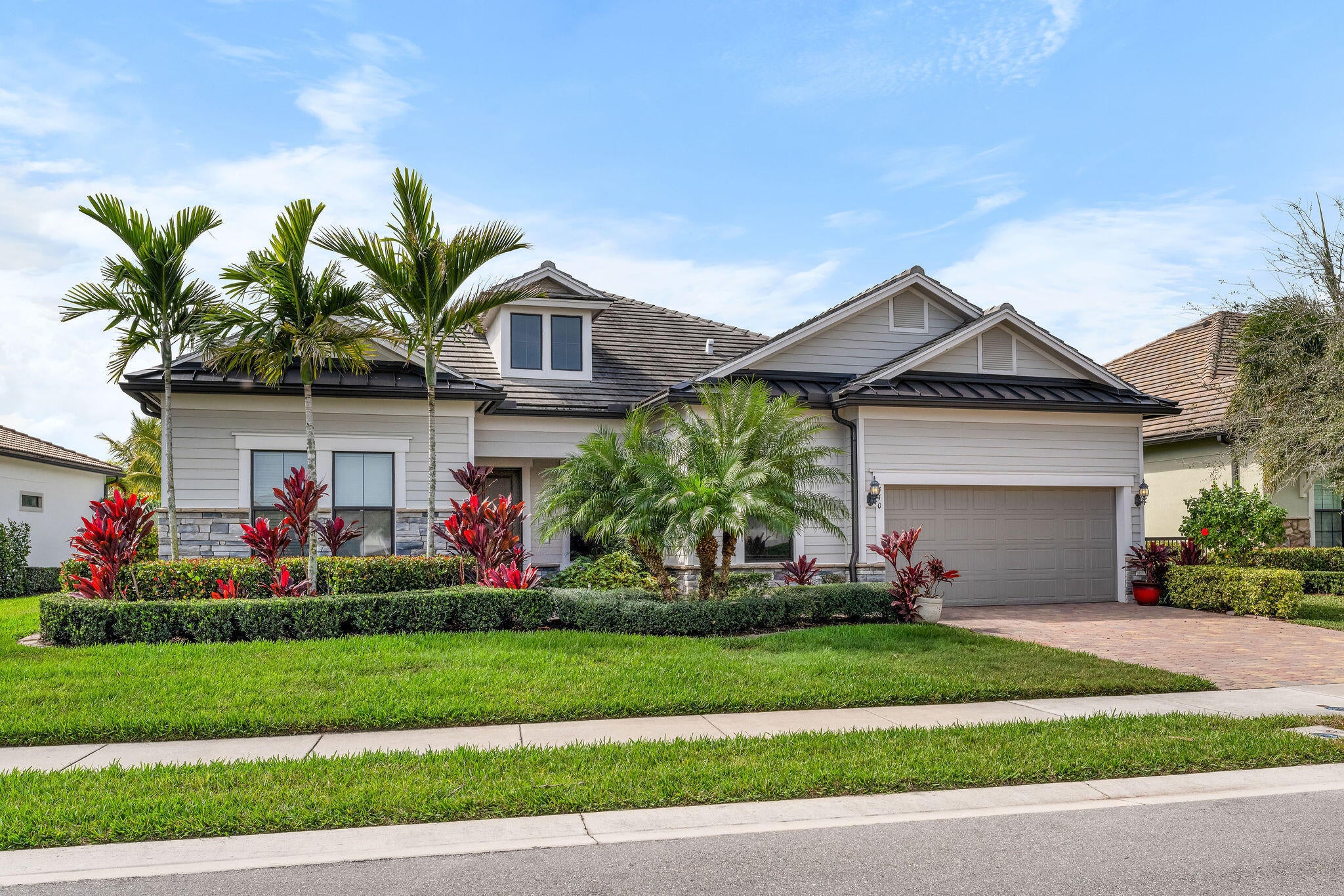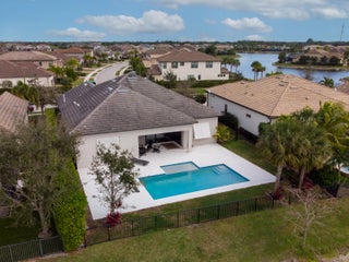 Nestled within the gated community of Sonoma Isles, this DiVosta-built, single-story residence is tucked away in a quiet corner of the neighborhood, offering exceptional privacy and breathtaking lake and sunset views. Ideally located just minutes from Jupiter's finest beaches, championship golf courses, upscale dining, shopping, and major airports. This impeccably maintained Pinnacle model offers a thoughtfully designed floor plan with a neutral color palette to fit any decor, featuring three bedrooms, three bathrooms, and a versatile flex space with glass French doors - perfect for a home office, den, or creative studio.Designed for effortless living and entertaining, the bright open-concept layout highlights a spacious gourmet kitchen with upgraded cabinetry, an expansive center island, adjacent dining area, and a large pantry. Additional features include porcelain tile flooring throughout, custom closets, hurricane-impact windows and doors, zero-corner sliding glass doors, and a climate controlled oversized garage with ample storage space. Step outside to your private outdoor oasis and embrace true Florida living. Enjoy serene lake views and spectacular sunsets from the newly installed saltwater pool, ideally positioned in one of the most peaceful locations within the community. Lush tropical landscaping enhances privacy, creating a relaxing retreat ideal for year-round living or as a second home. Sonoma Isles offers resort-style amenities including a clubhouse, fitness center, lap pool, spa, fire pit, tennis and pickleball courts, tot lot, and scenic walking paths. Residents also have the option to purchase a social or other memberships at Jupiter Country Club, located just steps away from the community entrance. Schedule your private tour today to experience this exceptional property firsthand. See Video Tour.