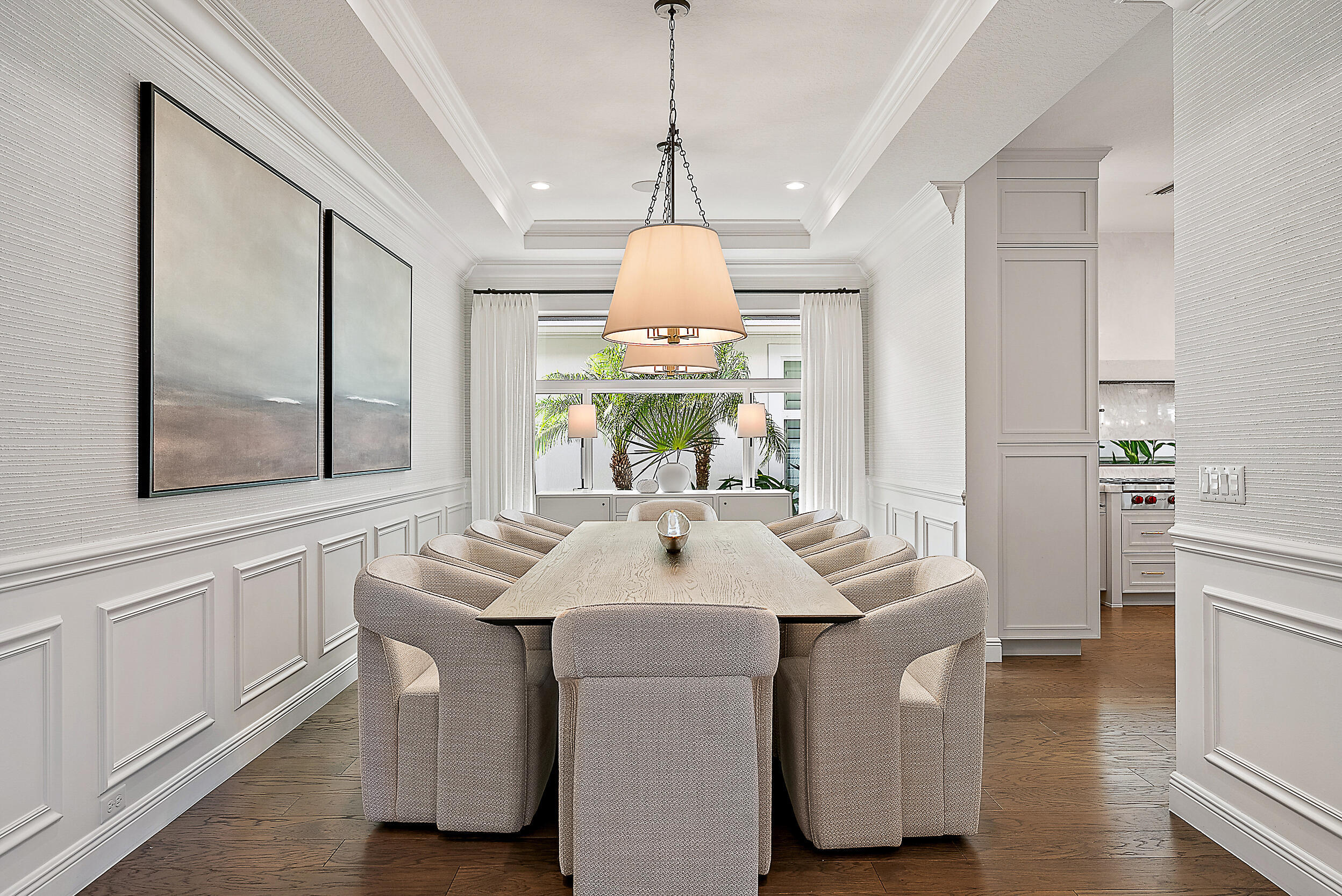 This redesigned luxury residence offers over 4,700 SF under air, blending timeless architecture with refined modern enhancements. Built in 2017, this 5+ bedroom home sits on a serene lot backing to the Juno Preserve, just one mile from the beach and premier dining. The home features custom millwork and shiplap accents throughout, seamlessly paired with high-end finishes. Highlights include a chef's kitchen with Cristallo countertops and Wolf appliances, 2 laundry rooms, whole-house generator, 3 car garage, and custom closets. The kitchen has a seamless connection to the main living spaces and oversized dining room. Outdoor living is exceptional with a redone saltwater pool and fire bowls, phantom screens, designer landscaping with turf, an outdoor kitchen, ice maker, and outdoor shower.