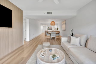 Marina Bluffs is Florida living at its best. Walk to beaches, parks and shopping. With 4 pools, tennis, pickleball & bocce courts enjoy a sun filled day of activity without leaving home. This unit was completely renovated top to bottom in 2025. The kitchen features stainless appliances including a built-in wine fridge, custom wood cabinetry, high end quartz counters with matching backsplash. and a ventless exhaust hood. Kitchen has also been extended from original layout. and includes breakfast bar with seating for 4. Entire unit has been refinished with luxury White Oak vinyl flooring. Bathrooms have been luxuriously modernized with Italian porcelain tile, frameless shower doors, floating vanities, high efficiency fixtures and LED mirrors. Impact sliders to the balcony & panoramic viewsBoth bathrooms are also equipped with bluetooth enabled speakers built into the exhaust fans. New 2025 A/C, Nest Thermostat and All New Electric Panel finish off this highly detailed oriented renovation. Laundry room/storage closet is large enough to be used as a guest room or home office. Brand new ventless washer and dryer, quartz counters and cabinetry matching the kitchen. This is a true turnkey unit waiting for its new owners to come and enjoy this lifestyle. Roofs were completely redone in 2022 and elevators were upgraded in 2024. All assessments have been paid in full and new owners shouldn't be in for any surprises anytime in the near future. Just half a mile to the beach and Juno Beach fishing pier, as well as the convenience of a Publix shopping center right on the corner with Walgreens, TOO Jays, and other restaurants and cafes. Just a short drive from Love St, a collection of waterfront restaurants and nightlife directly across from the Jupiter Lighthouse. Conveniently located 10 minutes from I95 and less than 25 minutes to Palm Beach International Airport in West Palm Beach. Jupiter has become the center of the golfing world in recent years as many PGA tour pros call it home and its surrounded by World Class golf courses and country clubs. For the fishing enthusiast Jupiter boasts some of the best fishing in the country due to the deep waters only miles offshore. Many charters and fishing tours are located at any of the many Marinas that can be found throughout Jupiter.