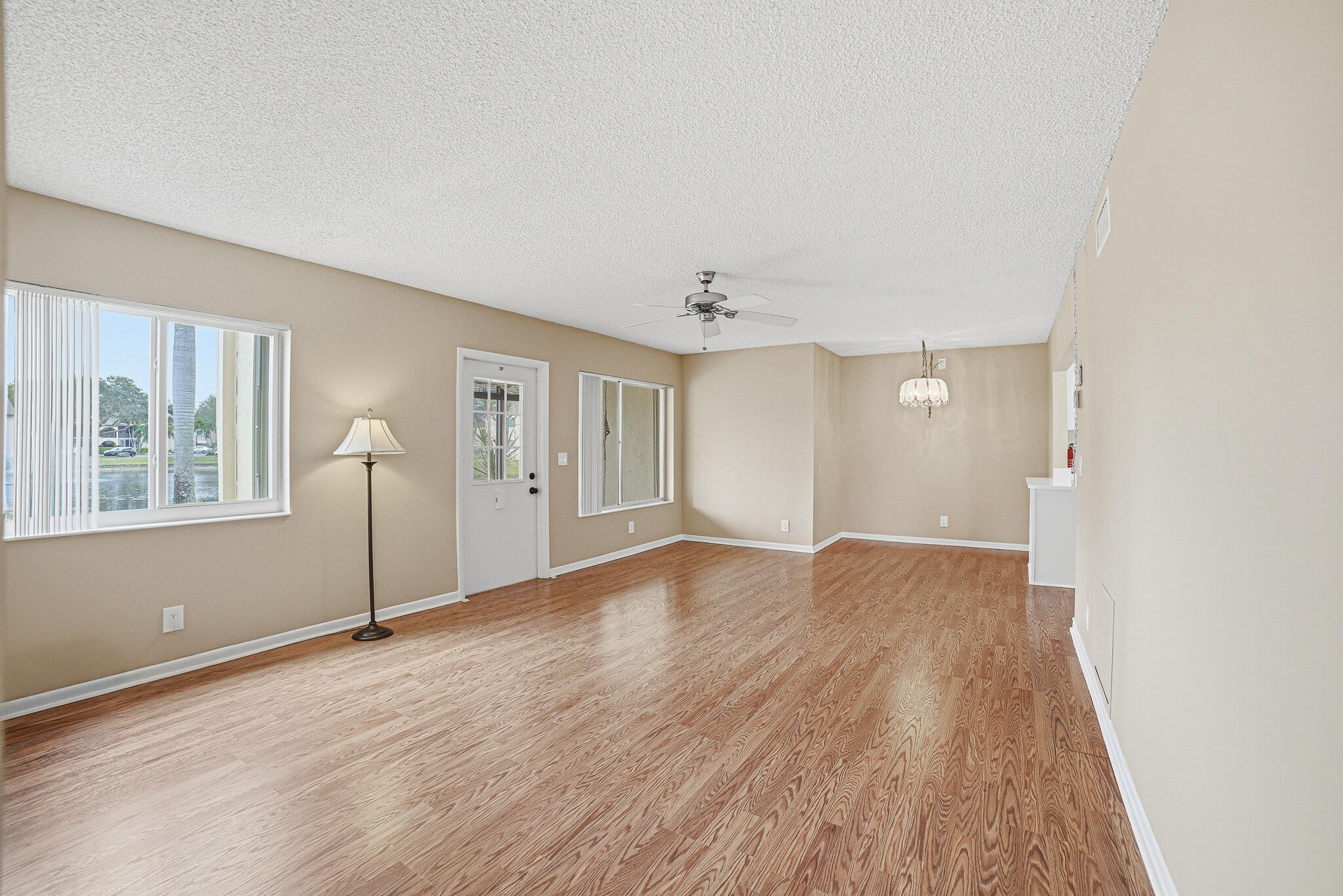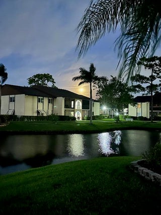 Rarely available premier unit in the highly desirable Pine Ridge South! A renovated,1st Floor, 2BR/2Bath Condo now on the market for the first time in 40 years! Thislakefront unit features unobstructed lake, fountain, and clubhouse views and as a1st floor unit provides easy access without having to climb stairs. Have peace of mind with impact glass windows and accordion-style hurricane shutters. Move right in, this home is completely turnkey! Be the first to enjoy this beautiful new kitchen, featuring shaker cabinets, stunning quartz countertops, matching quartz full height backsplash, Blanco deep sink, and a stainless-steel range hood that brilliantly illuminates the cooking surface. Both bathrooms have been upgraded.Bathroom upgrades include modern vanities, sinks, mirrors, lighting and more. All rooms including the lanai have been freshly painted. Wood laminate flooring throughout the living room, dining room, and hallway, contrast well with the tile floors in the kitchen, laundry, and baths as well as the carpet in both bedrooms. Additional improvements include electric panel, Decora outlets, GFCI's, switches and wall plates, new under sink plumbing and all valves, all new door hardware and new lanai screens. Enjoy private in-unit laundry room with extra storage, pantry closet and microwave. Along with the lanai storage closet, each bedroom has walk-in closets complete with Closet Maid Systems with overhead storage, as well as new adjustable shelving in the linen closet. Every detail has been thoughtfully addressed. Relax in your enclosed lanai with fabulous, captivating water and fountain views, perfect for sunrise coffee, midday chats, or sunset drinks, overlooking your own beautiful private paver edged garden. Community enhancements include new roofs and exterior paint completed in 2025, as well as refreshed landscaping. Residents of Pine Ridge South 1 enjoy amenities like a heated pool, clubhouse, bocce courts, shuffleboard, walking paths with benches and an active social calendar. Schedule a showing today!